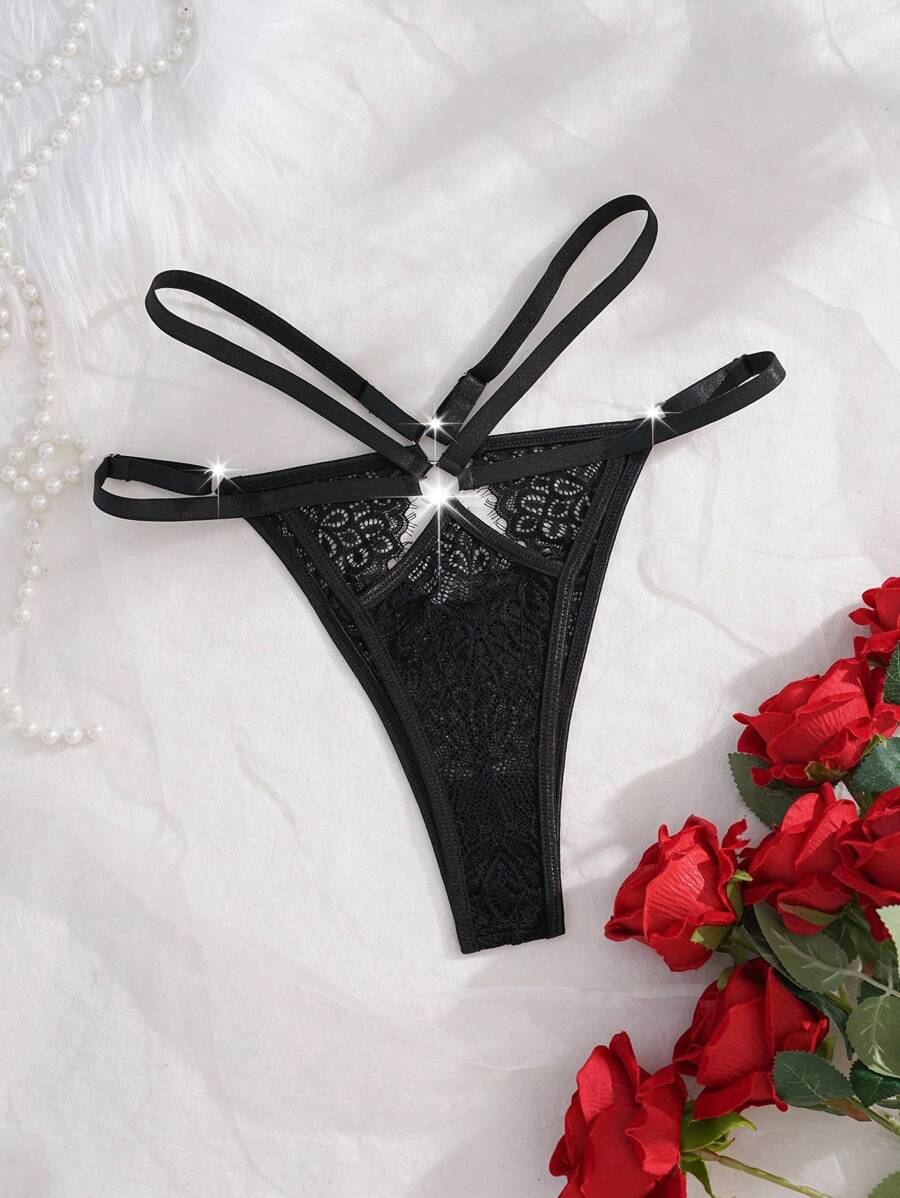 Bragas con cordones y abertura en la entrepierna con conector de anillo para mujer