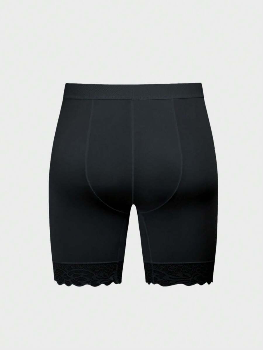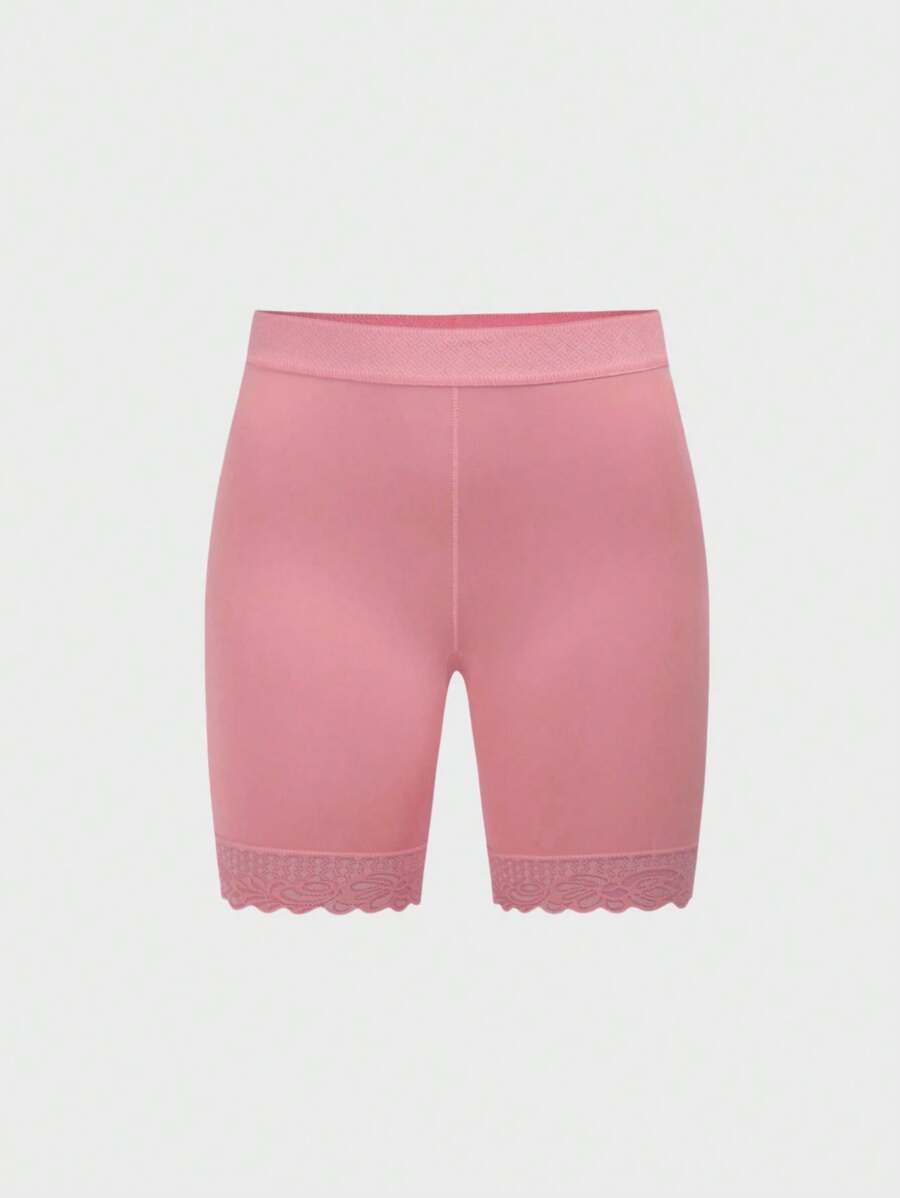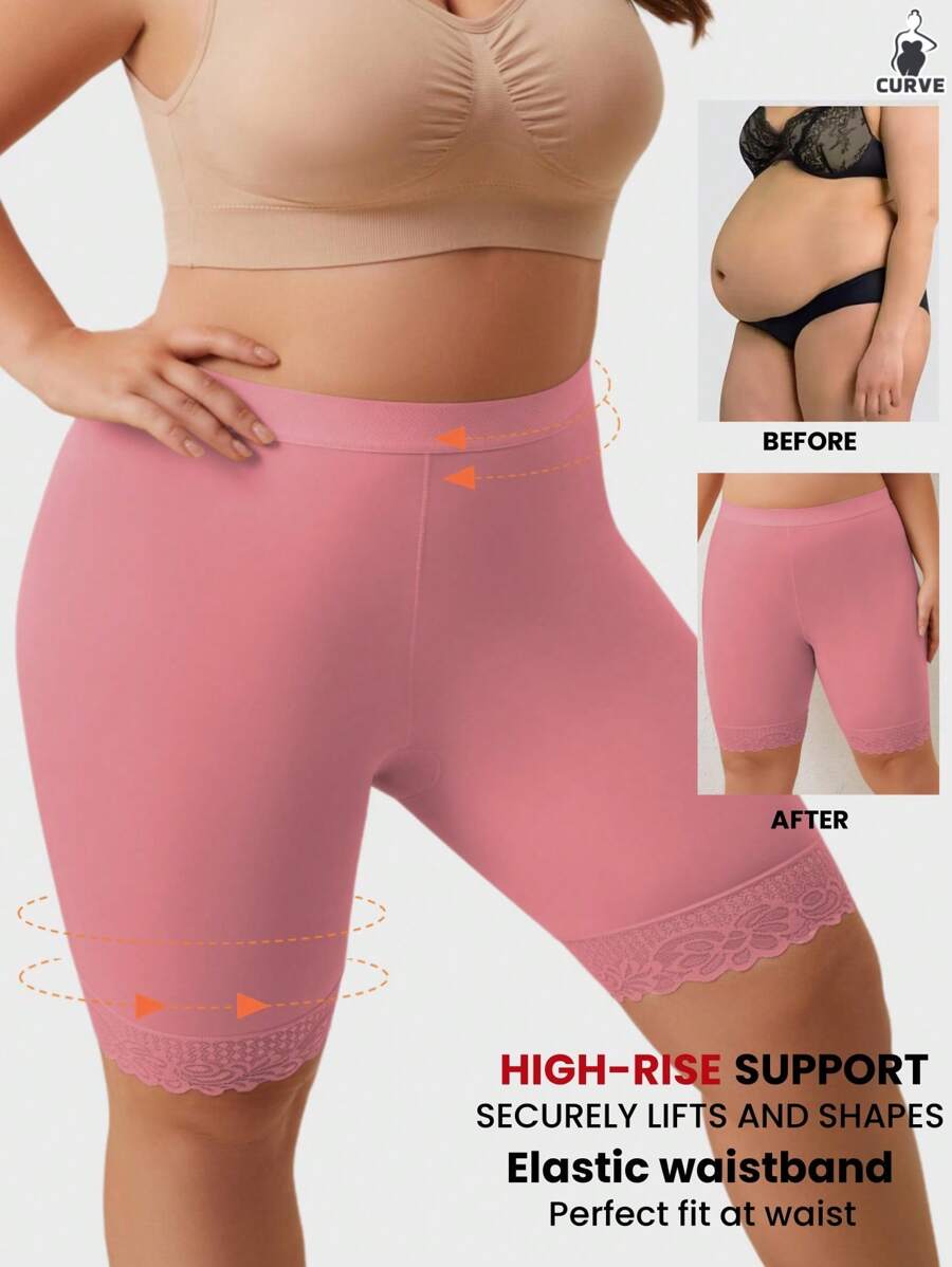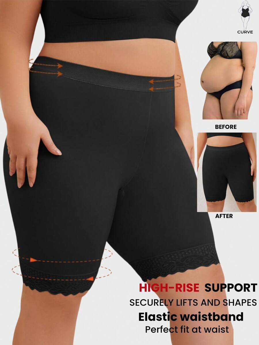 1 pieza pantalones cortos suaves y transpirables con aplicaciones de encaje para mujer de talla grande, shorts moldeadores con control de abdomen, pantalones cortos interiores antiroce