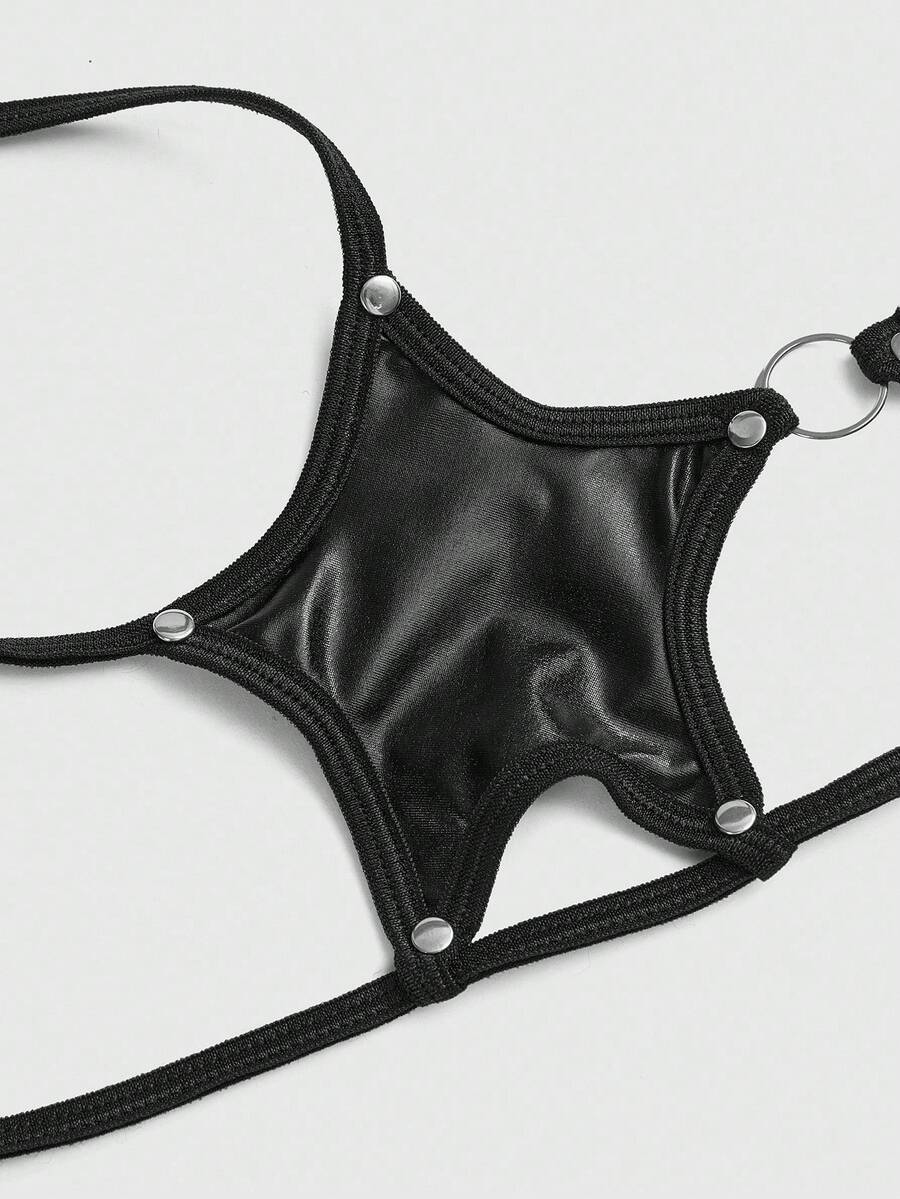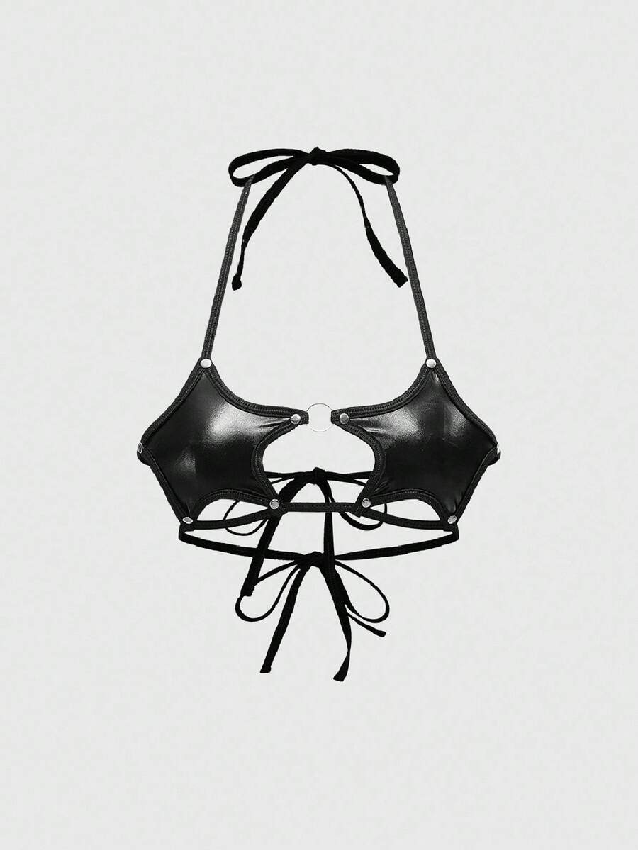 Top corta con cordones estilo punk con remaches y pentagono