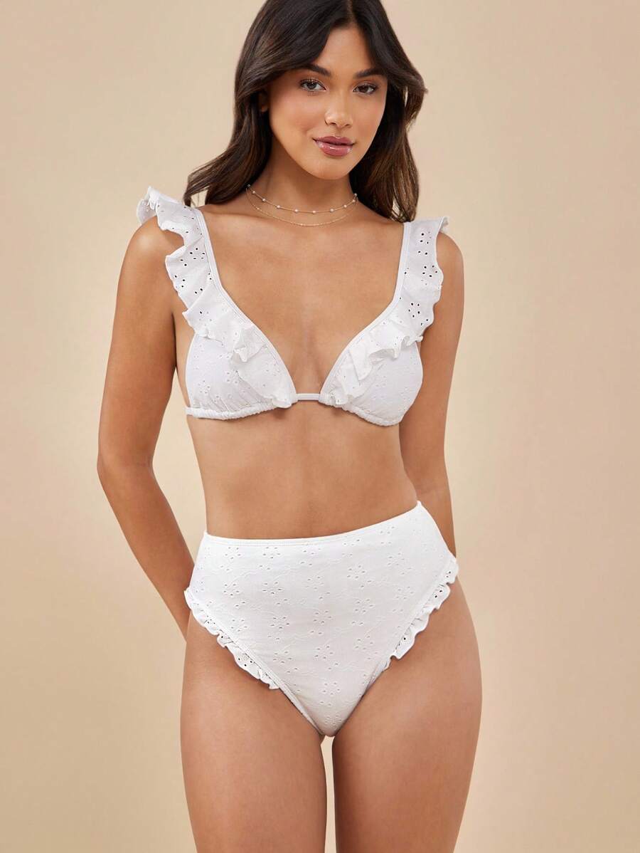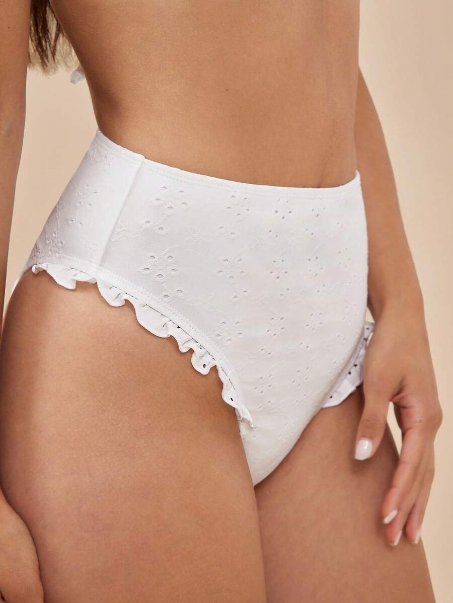 Westfade tangas de bikini con bordado de ojales florales, cintura alta, volantes y corte de pierna alto, con cobertura moderada y atrevida para el verano y las vacaciones en la playa