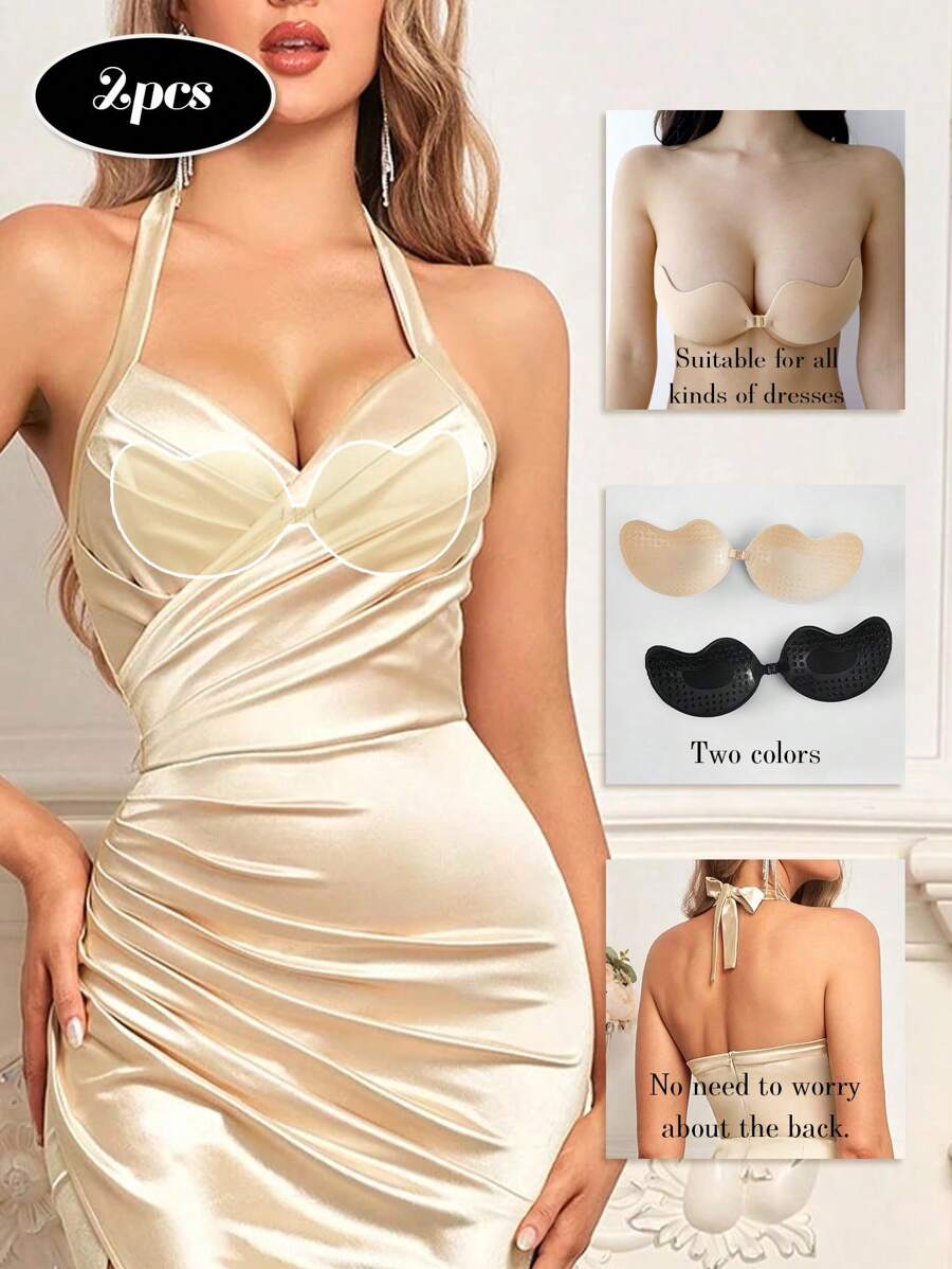 2 unidades de brasieres adhesivos: brasieres adhesivos de silicona, brasieres invisibles para mujeres, brasieres sin tirantes para vestidos sin espalda y sin tirantes, brasieres push up sin cubrepezones
