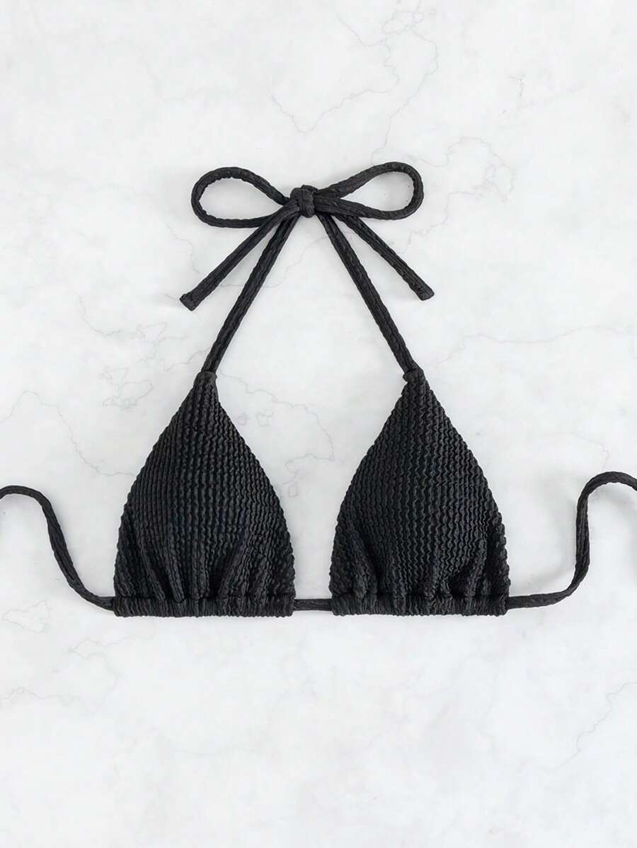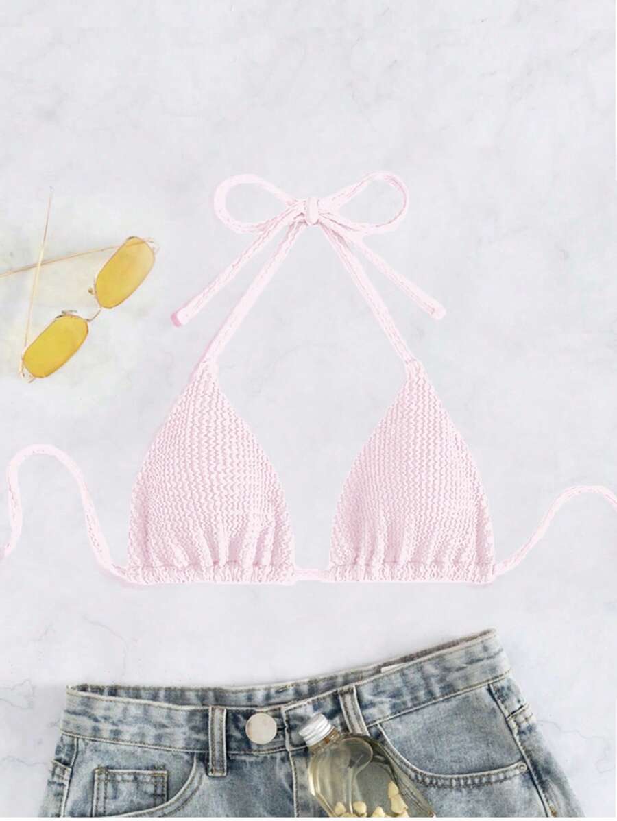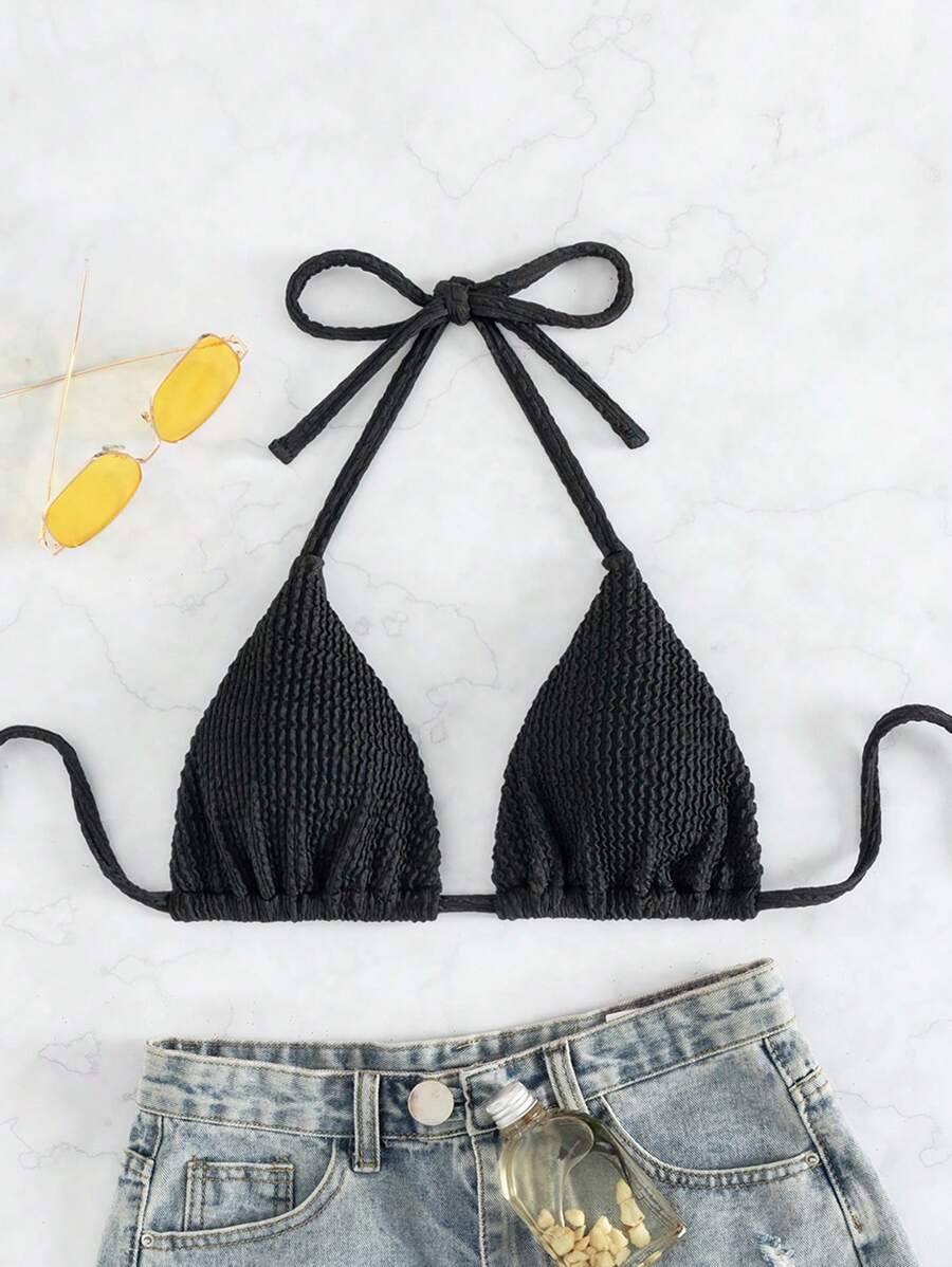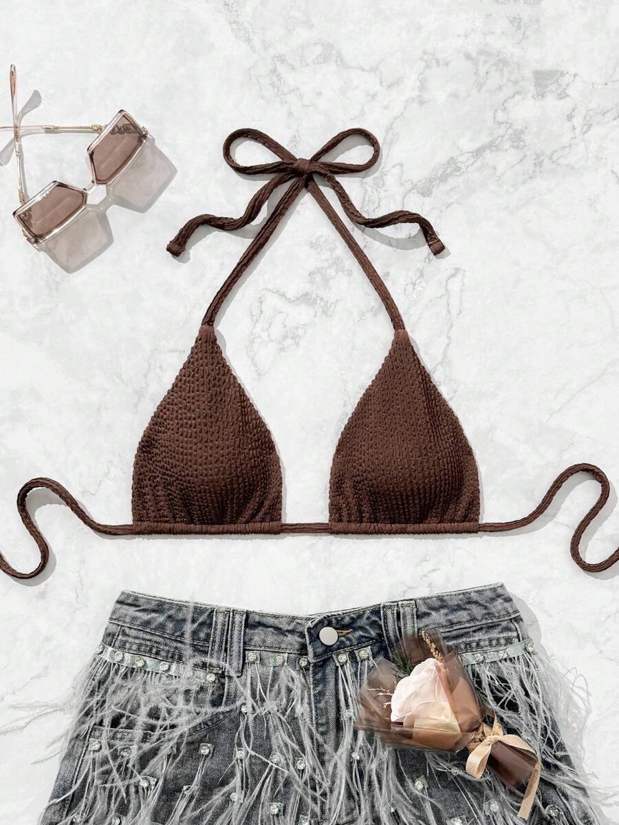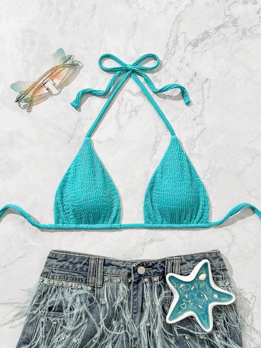 Top de bikini con escote halter y amarres, de unicolor y sexy, para el verano