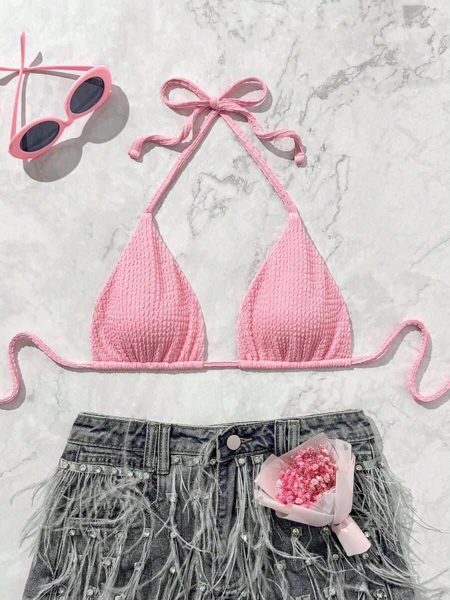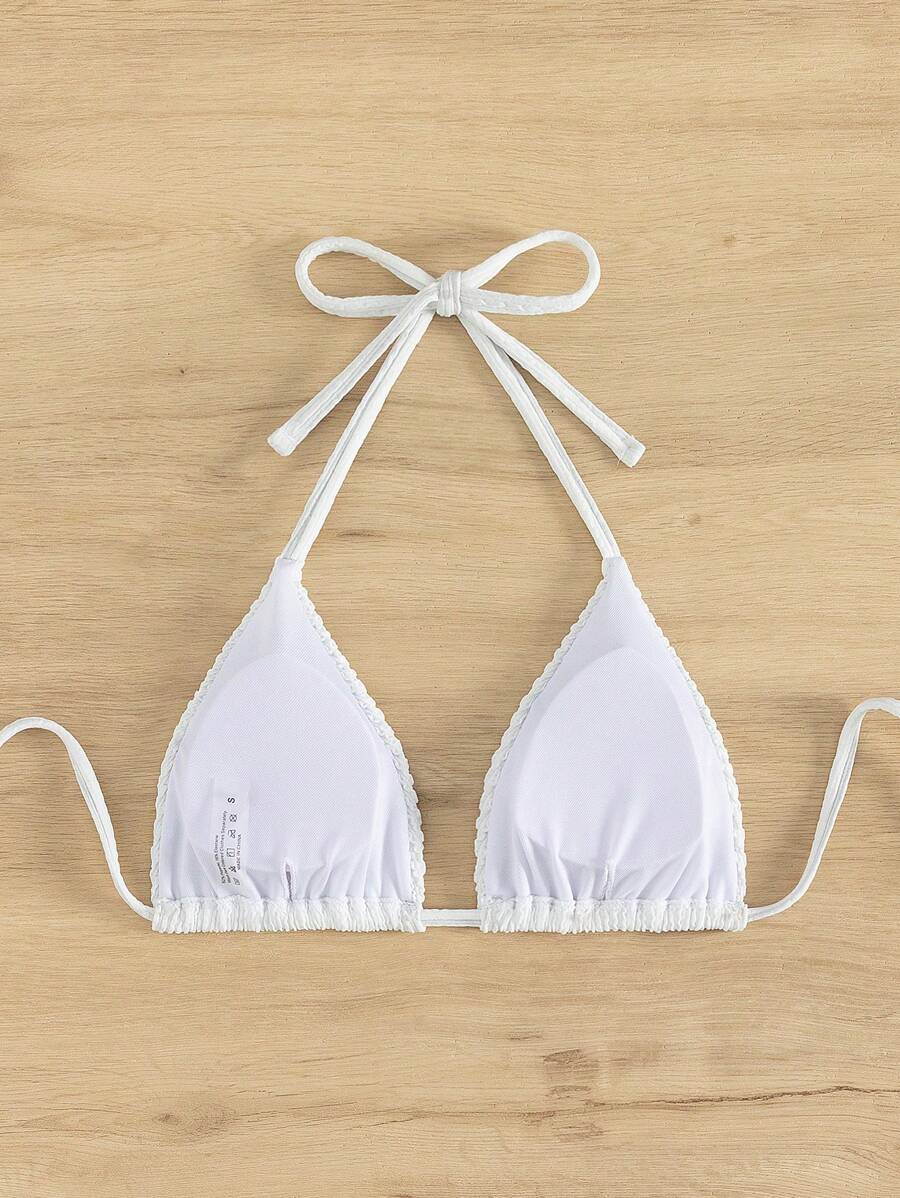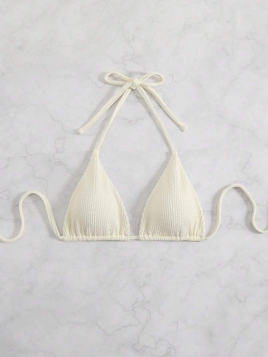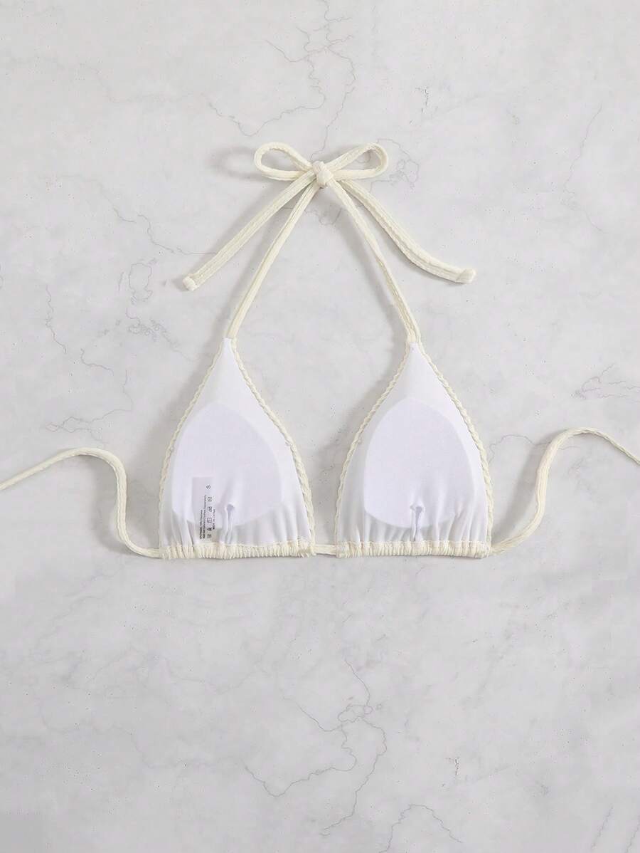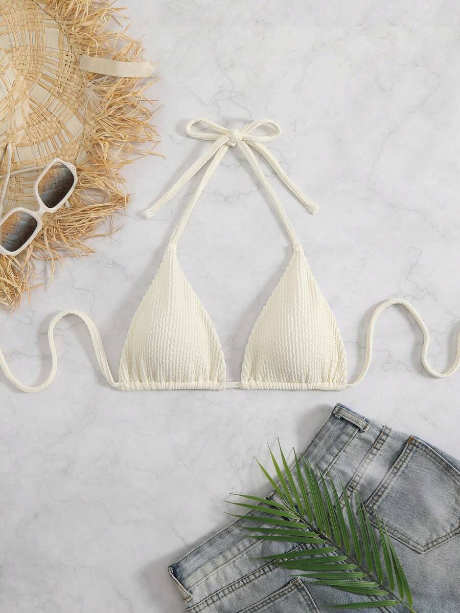 Top de bikini con escote halter y amarres, de unicolor y sexy, para el verano