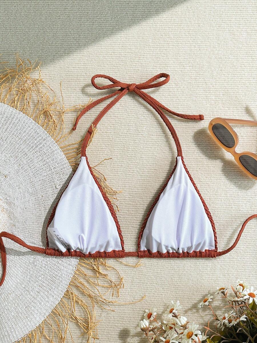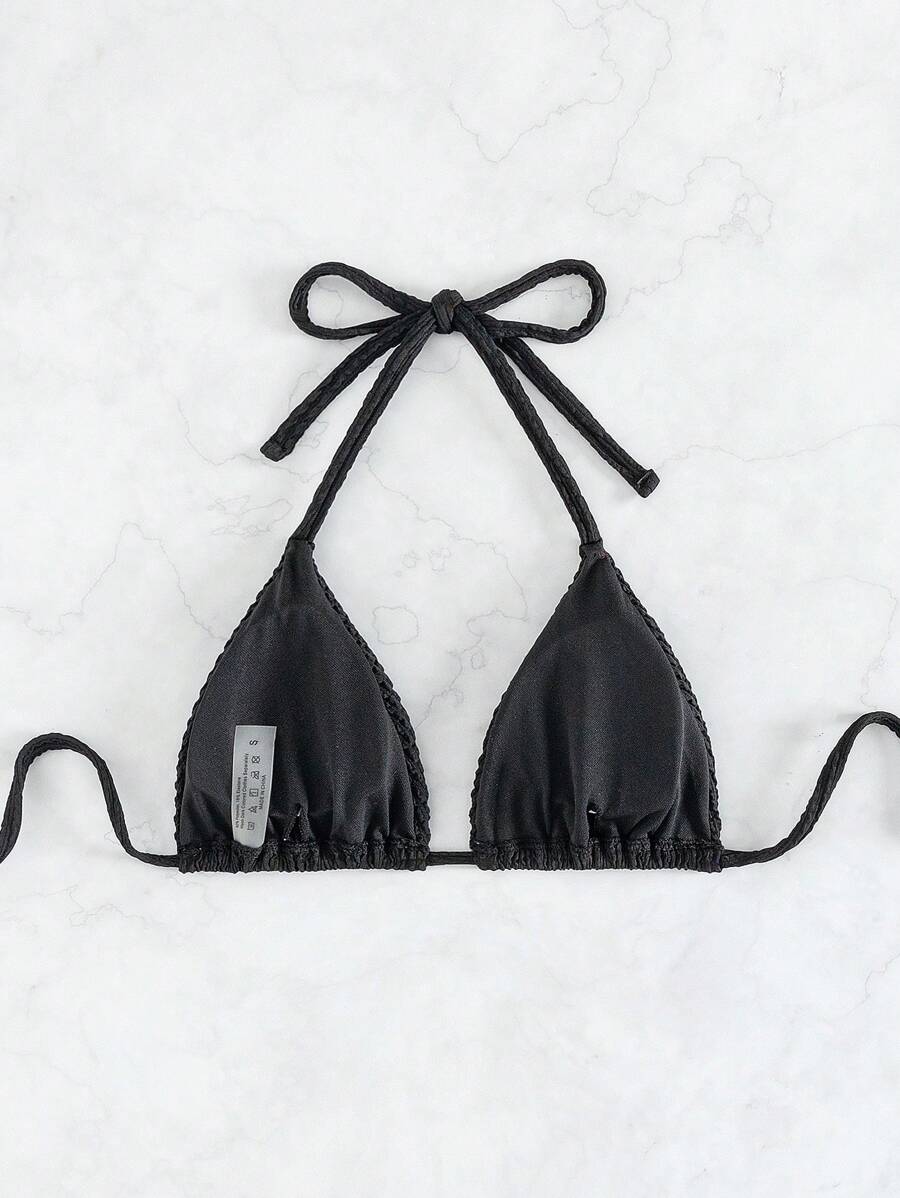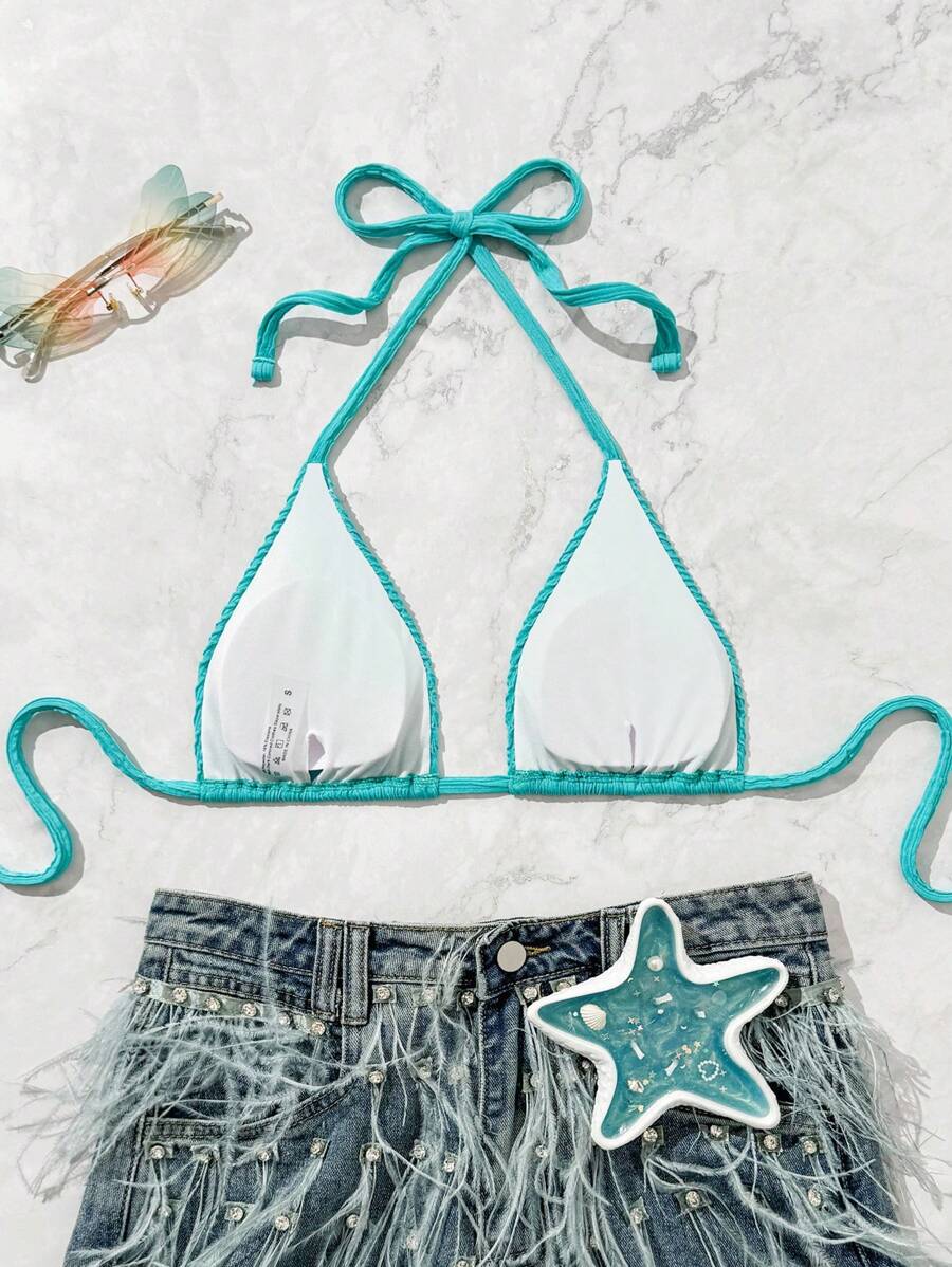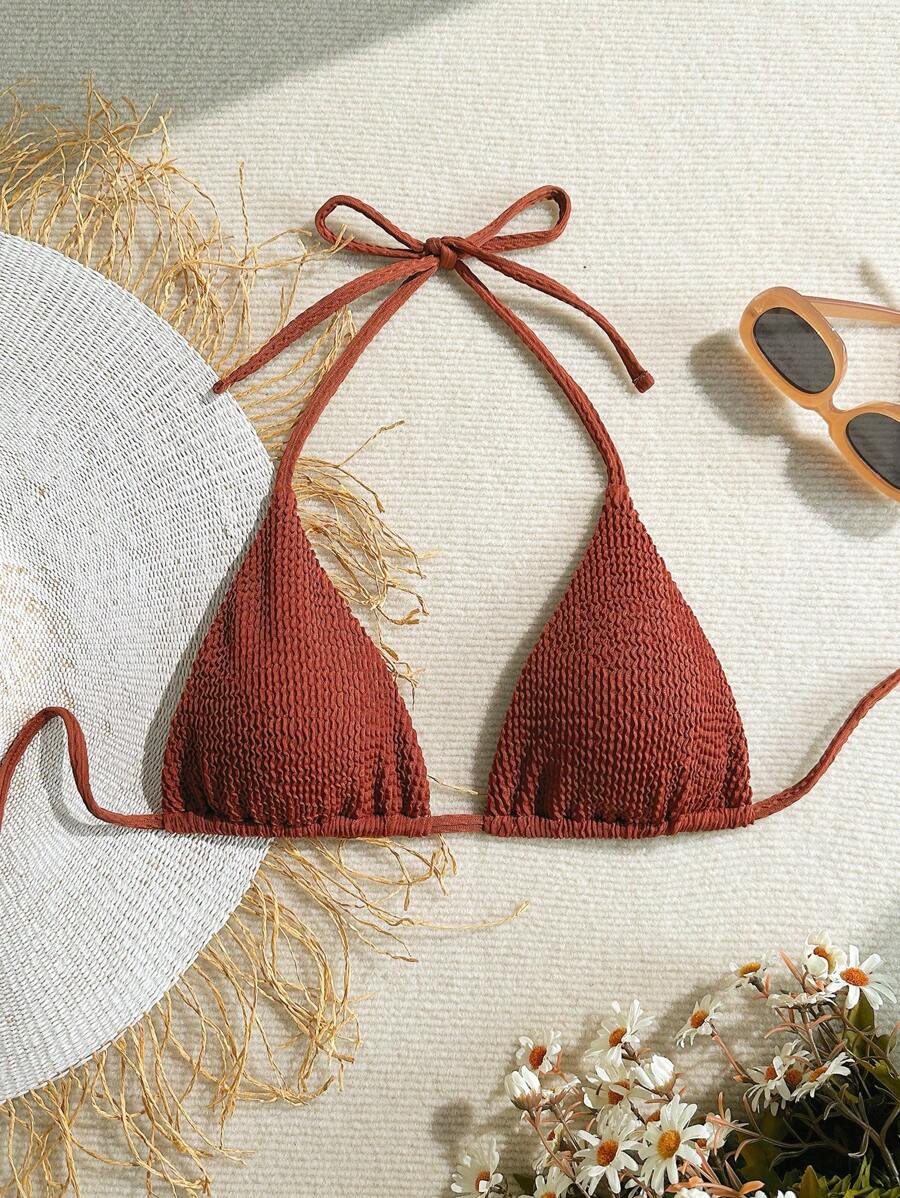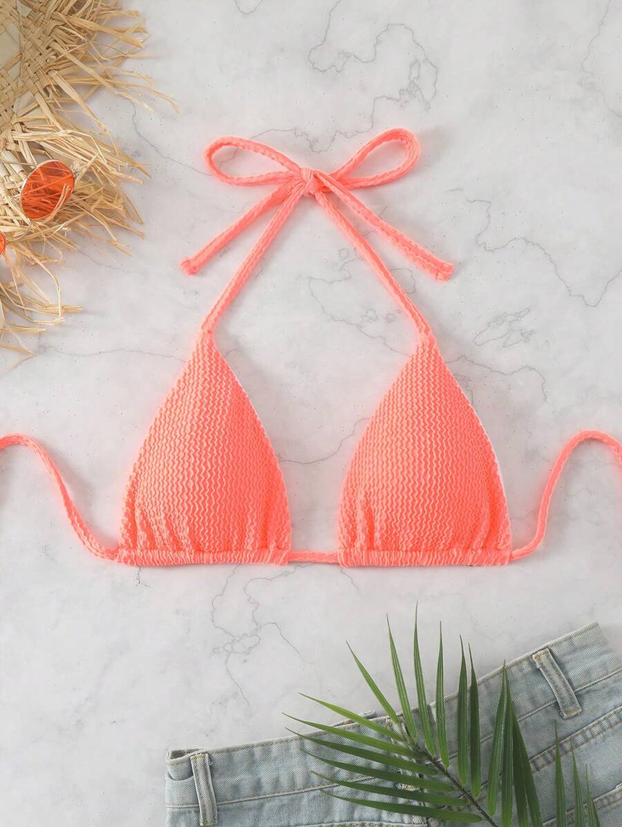 Top de bikini con escote halter y amarres, de unicolor y sexy, para el verano