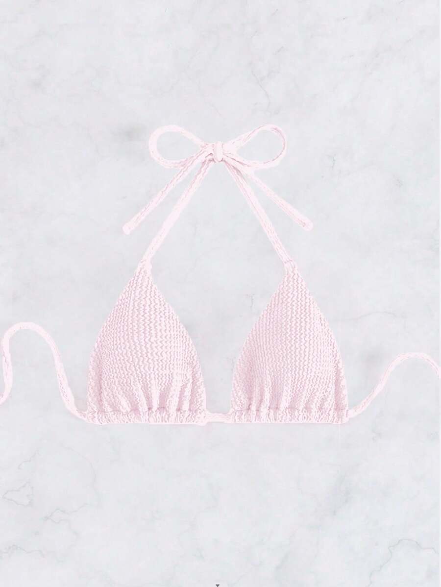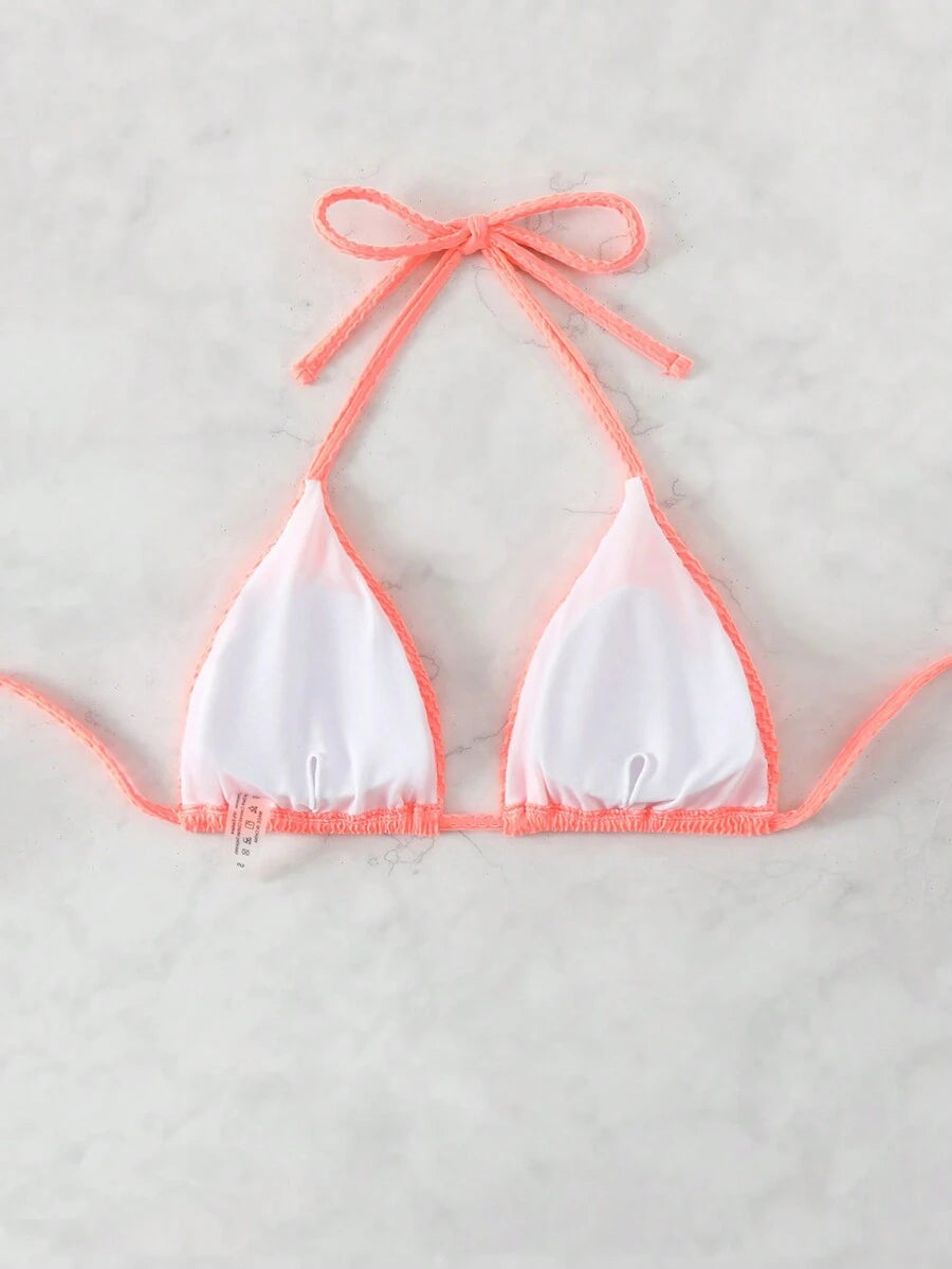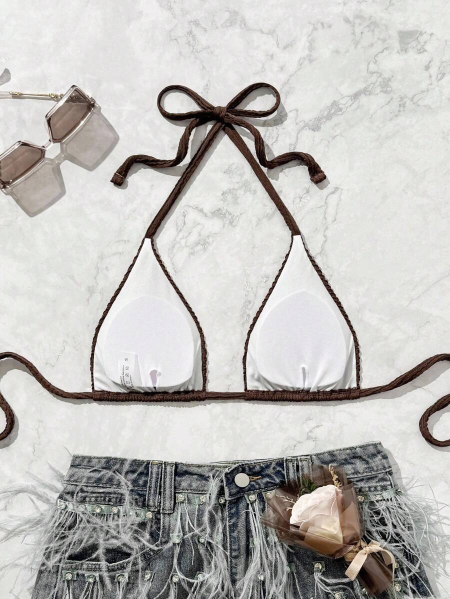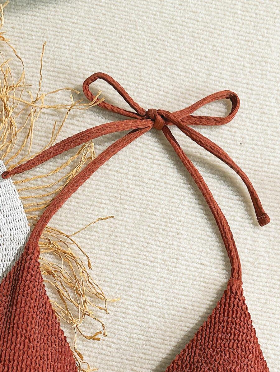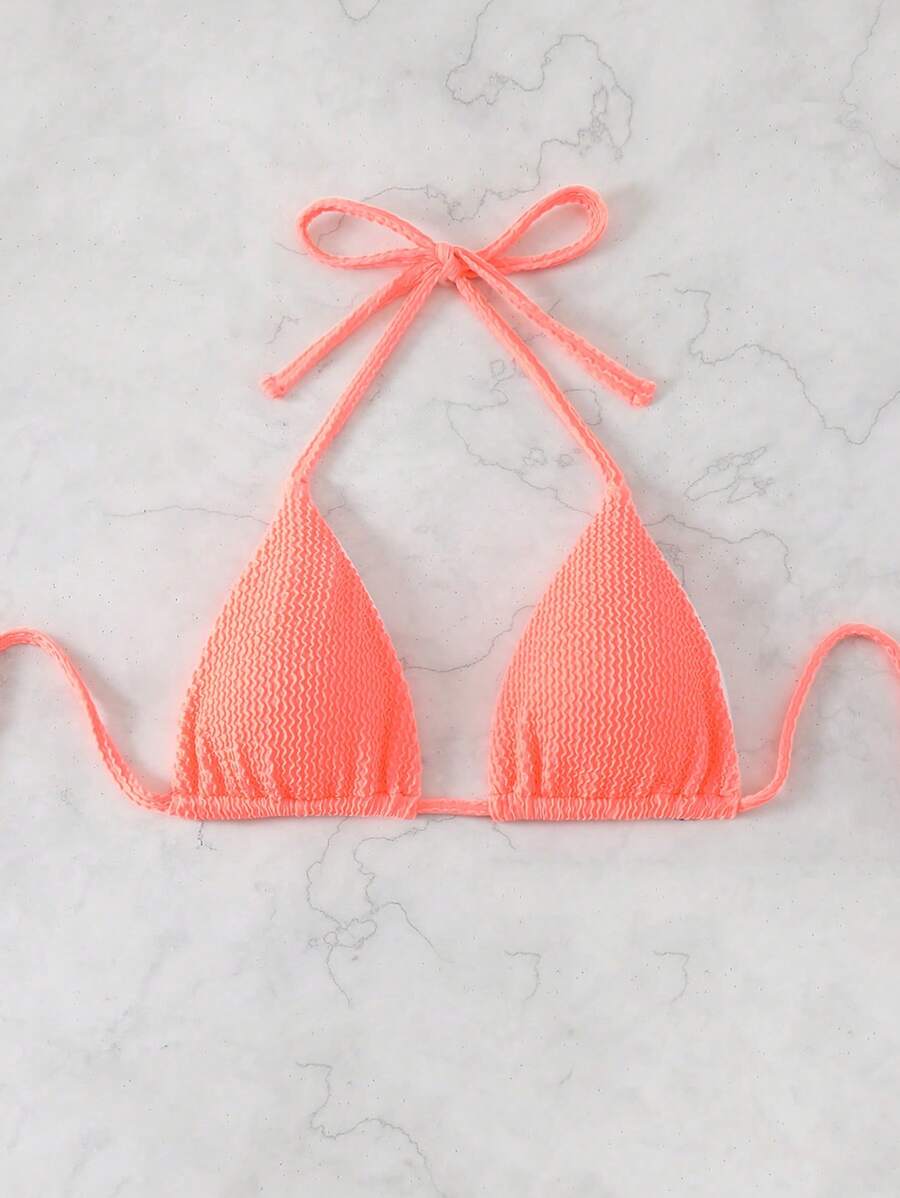 Top de bikini con escote halter y amarres, de unicolor y sexy, para el verano