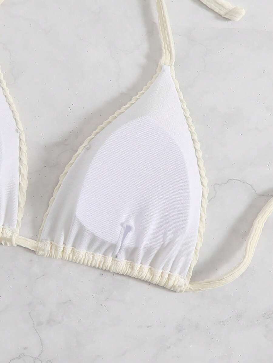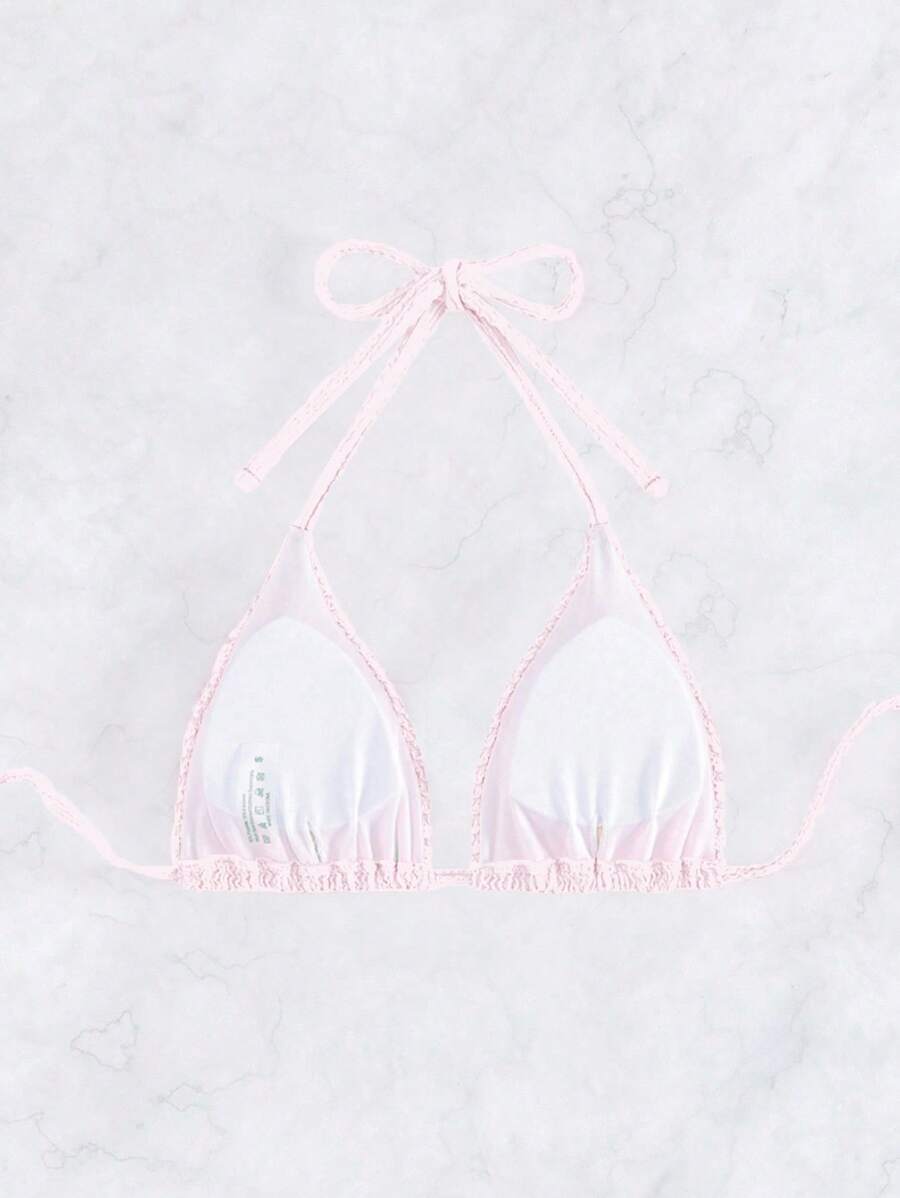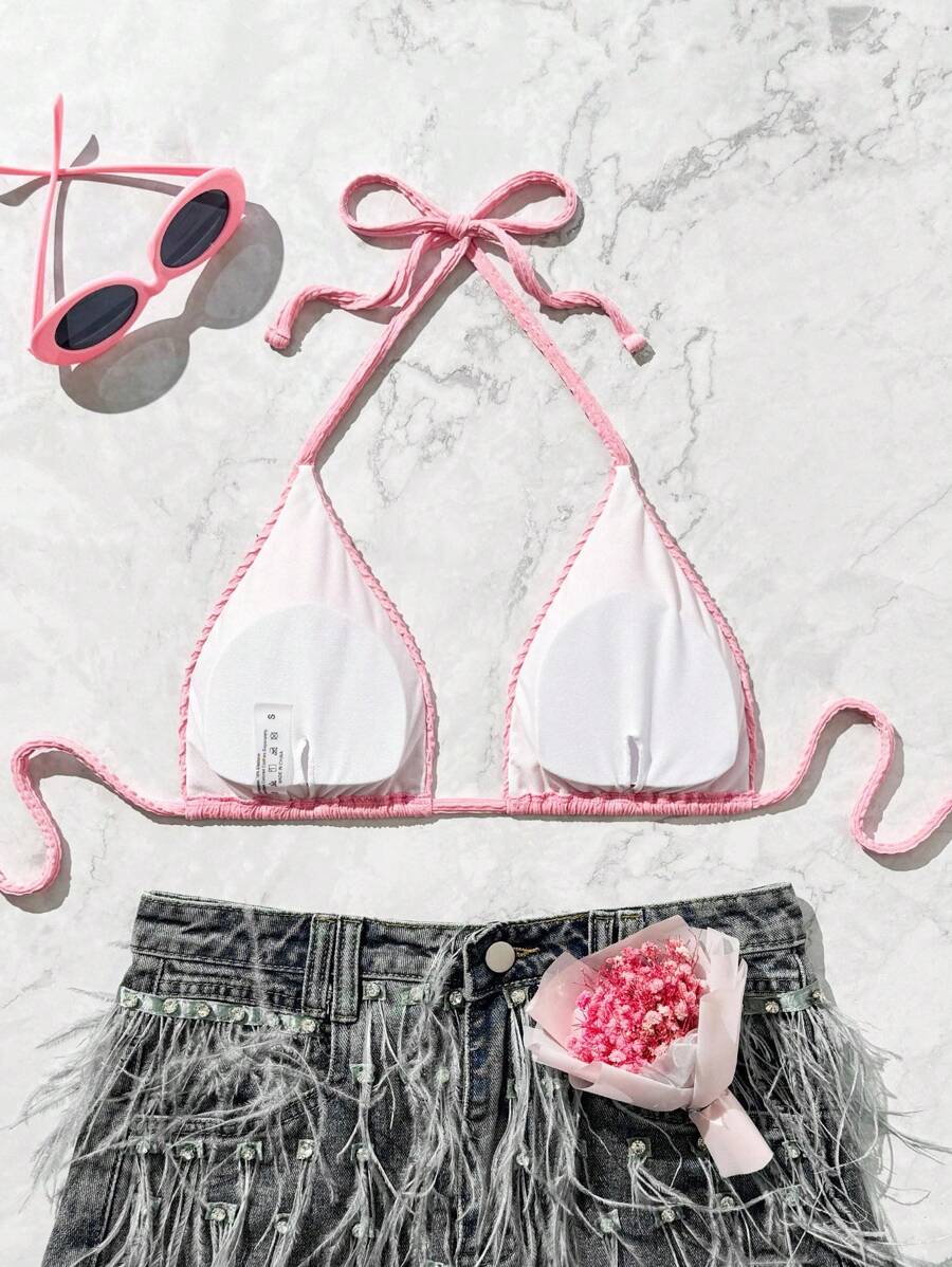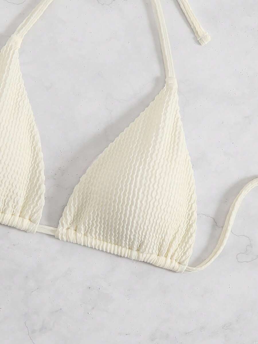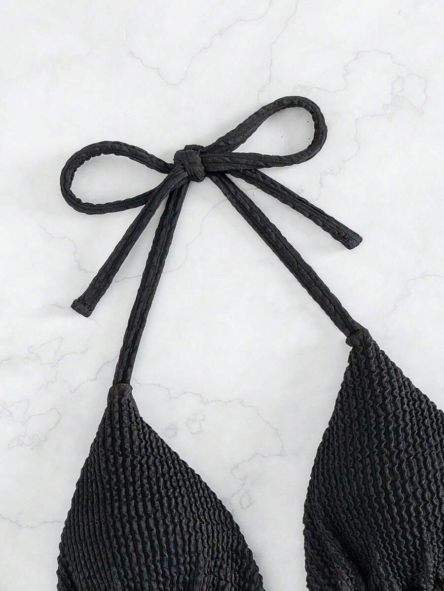 Top de bikini con escote halter y amarres, de unicolor y sexy, para el verano