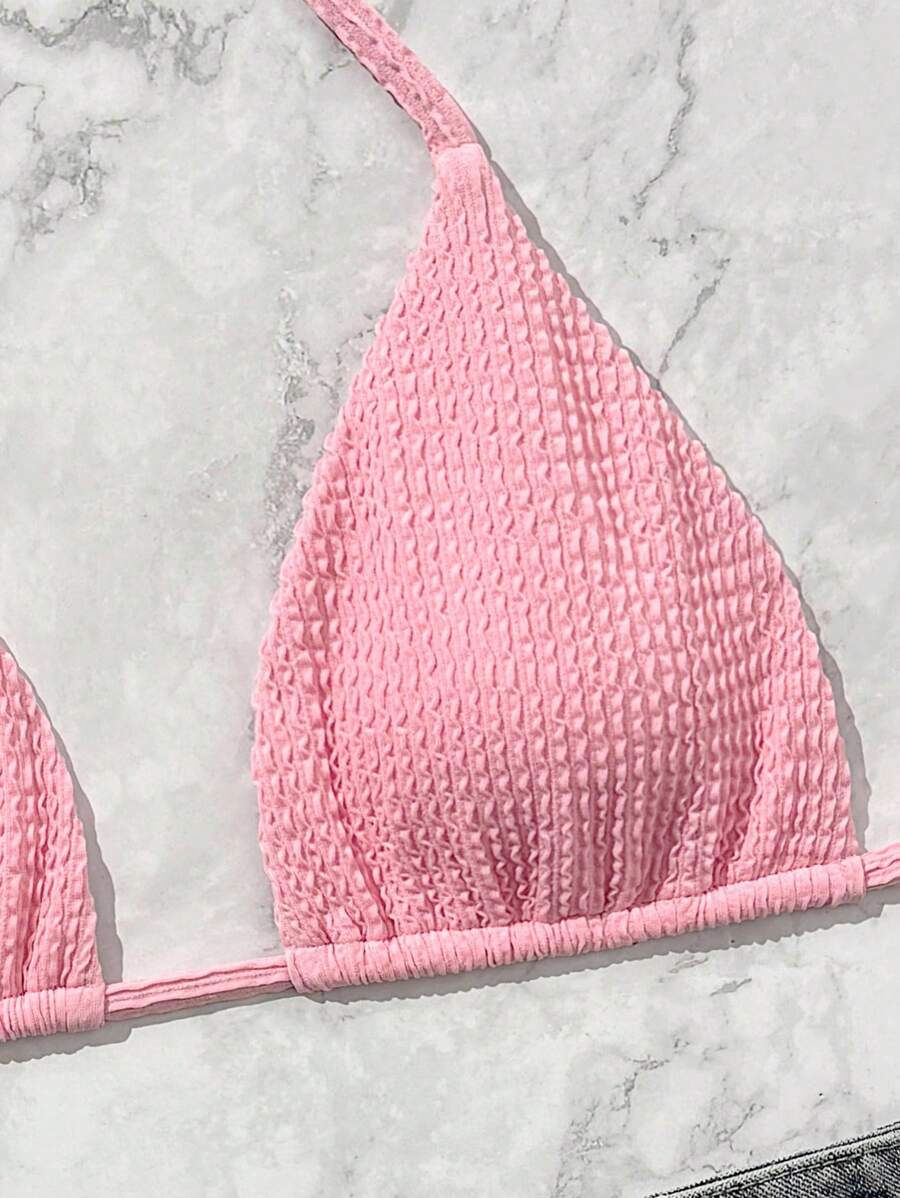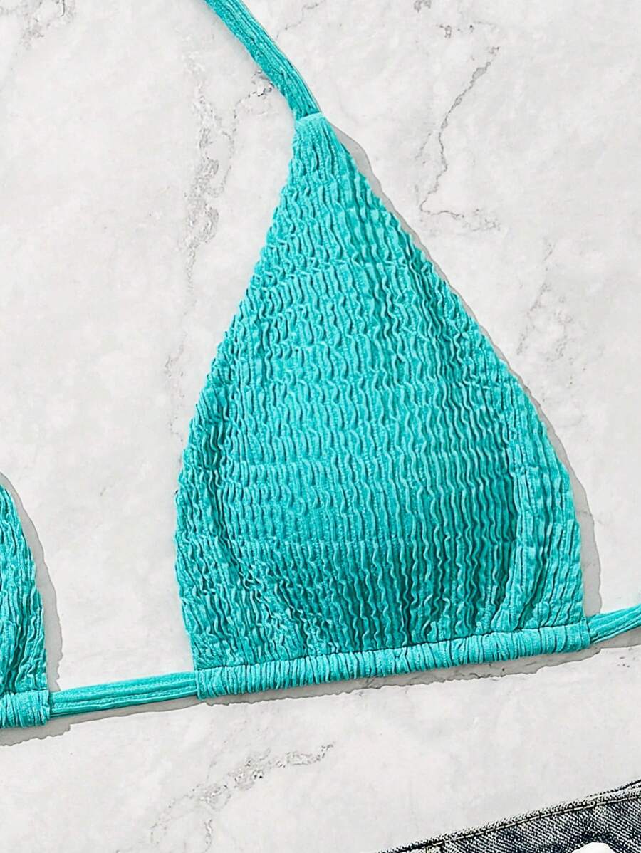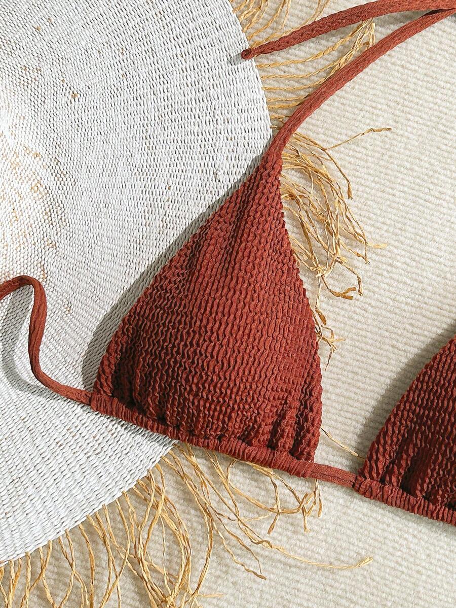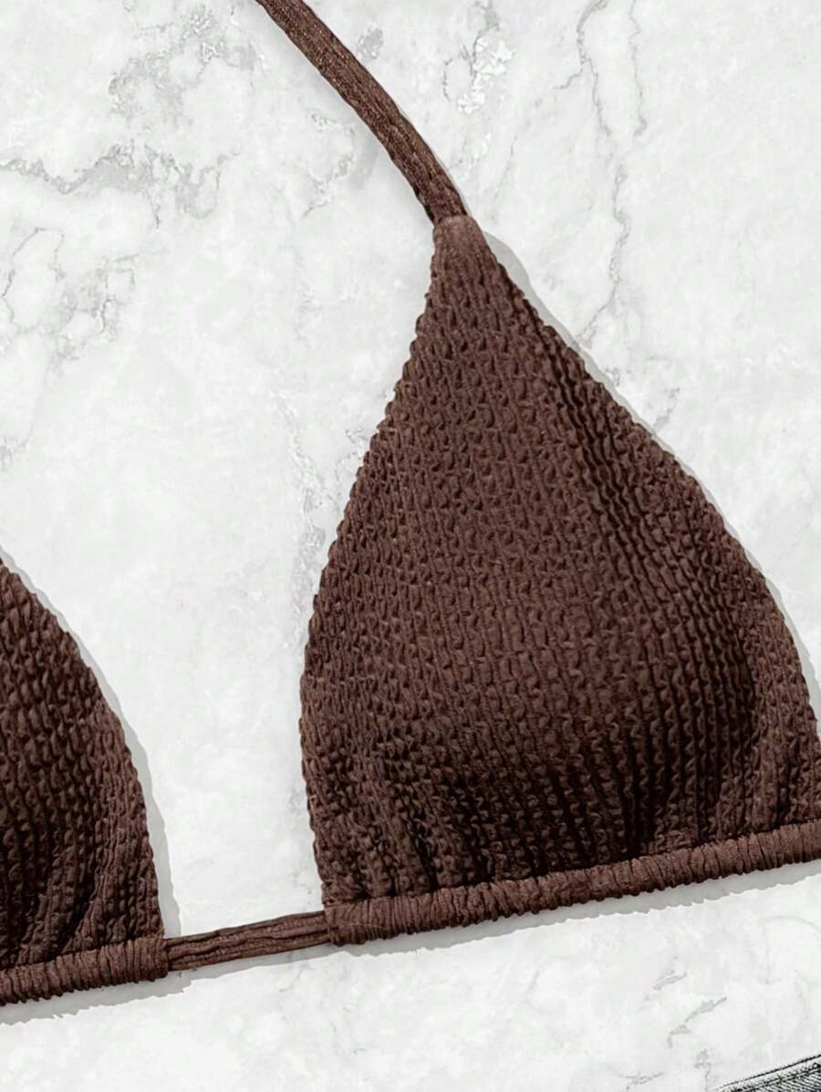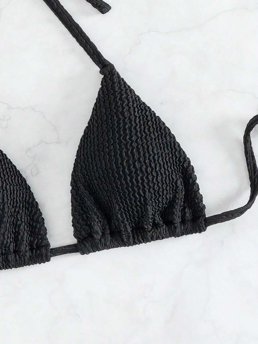 Top de bikini con escote halter y amarres, de unicolor y sexy, para el verano