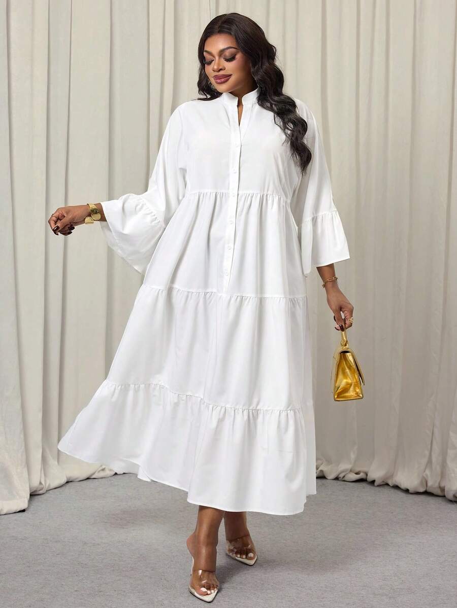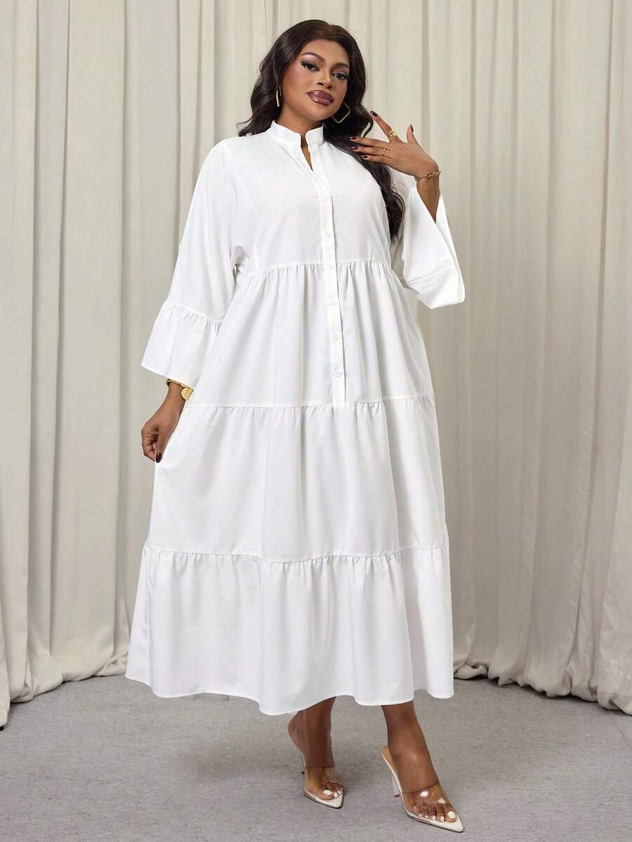 Curve vestido casual de mujer talla grande corte evase de manga larga