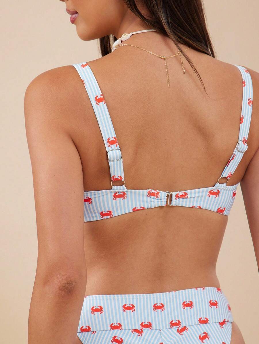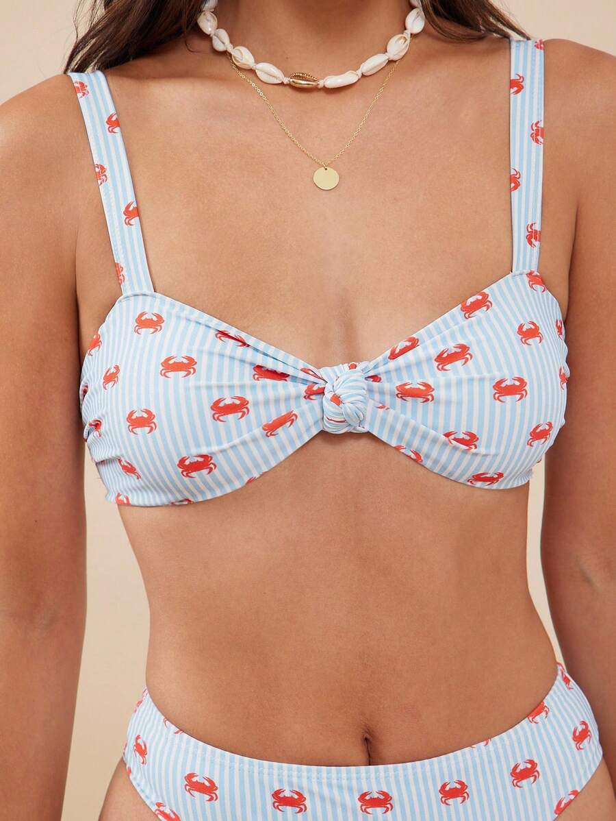 Westfade top de bikini con estampado de cangrejo rayado, cuello de corazon, fruncido, nudo delantero, tirantes ajustables, push up, estilo western, vaquera, verano, dia de piscina en nashville, casual, lindo, elegante, bohemio, vacaciones en la playa