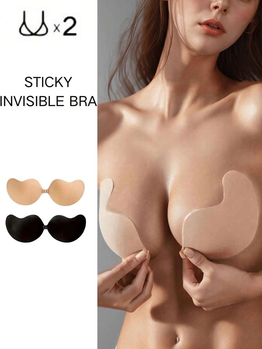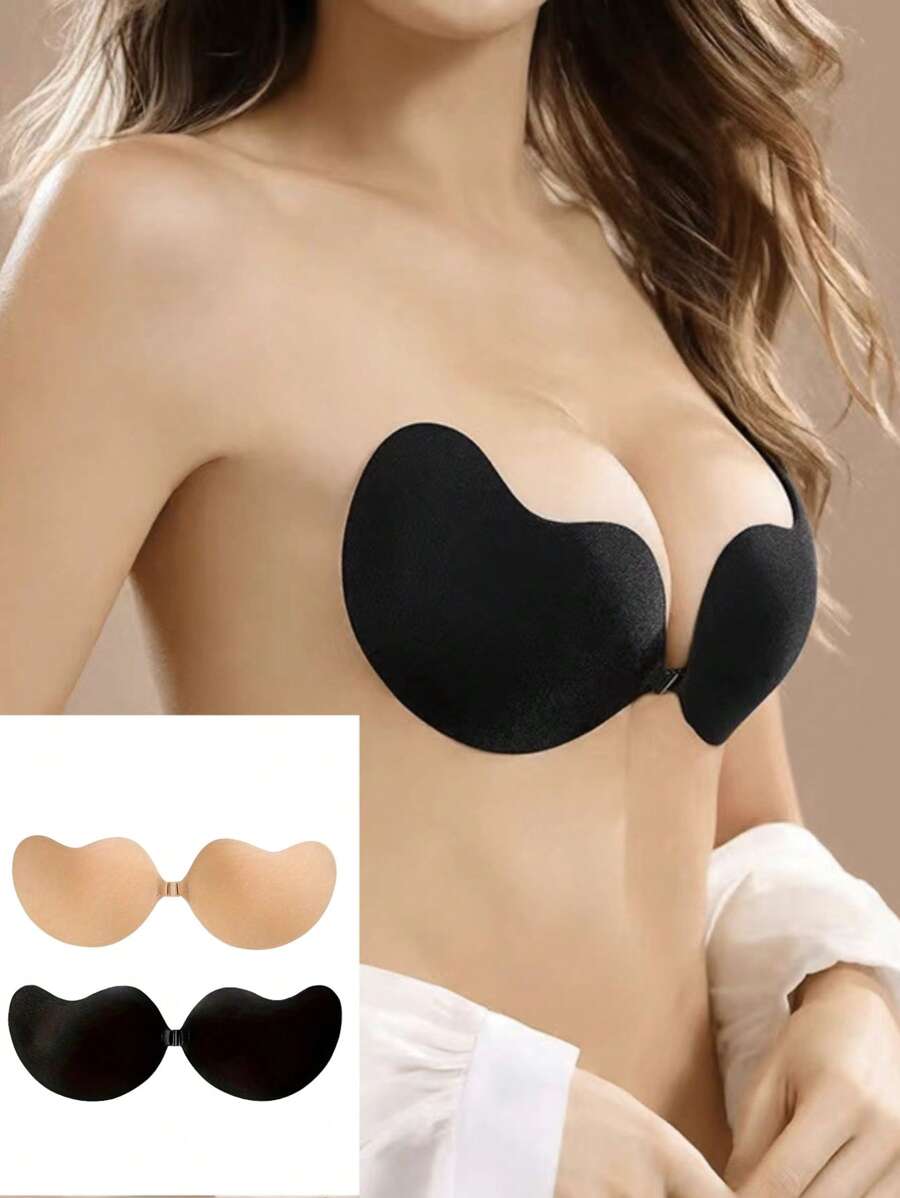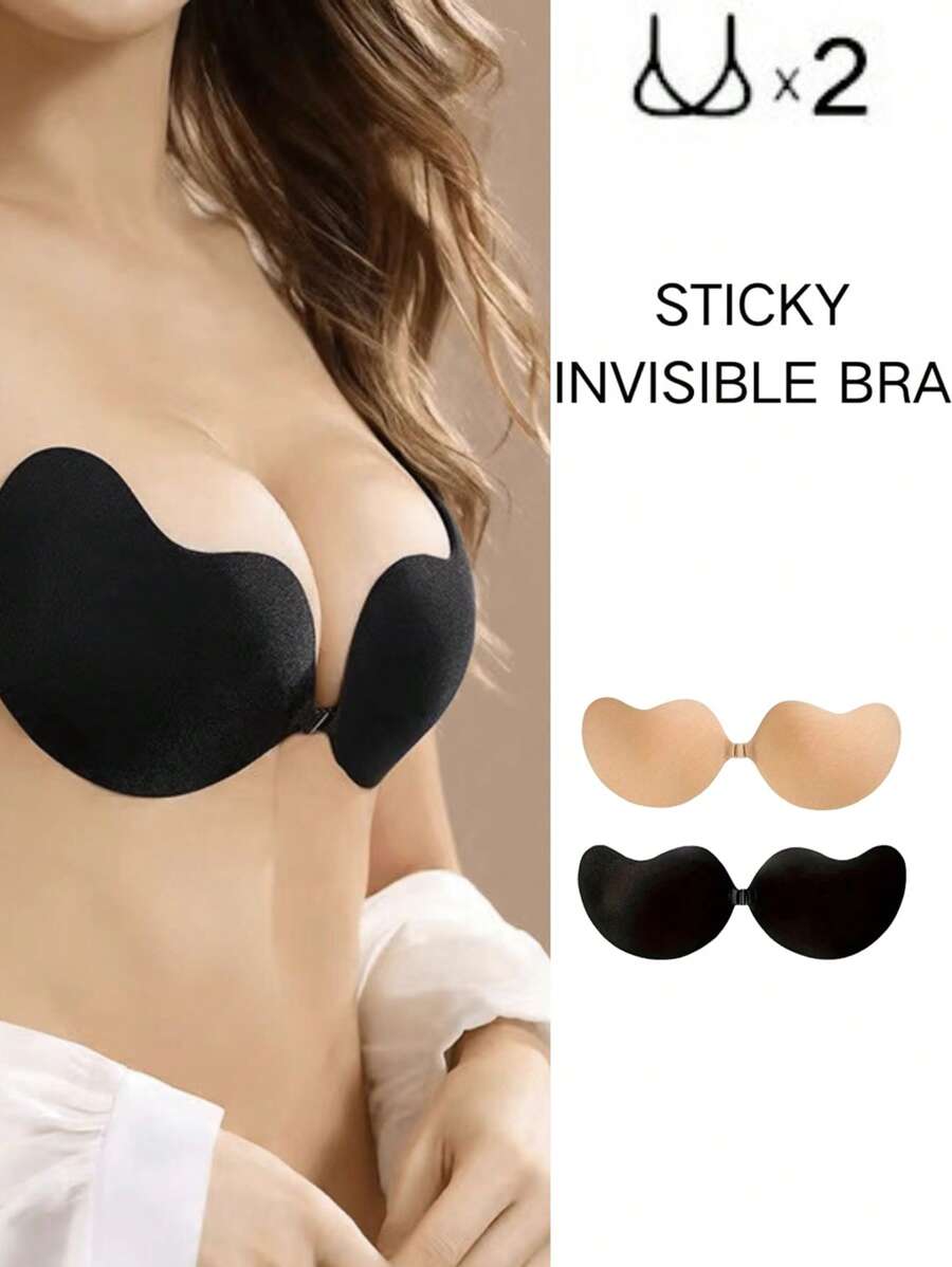 2 pares de brasier sin tirantes adhesivo para mujeres, brasier invisible adhesivo con push up, silicona amigable con la piel, reutilizable, con cierre frontal, adecuado para vestidos sin espalda