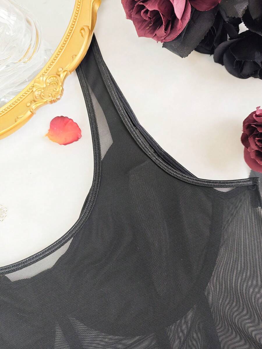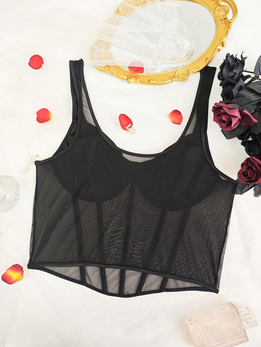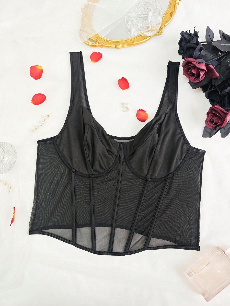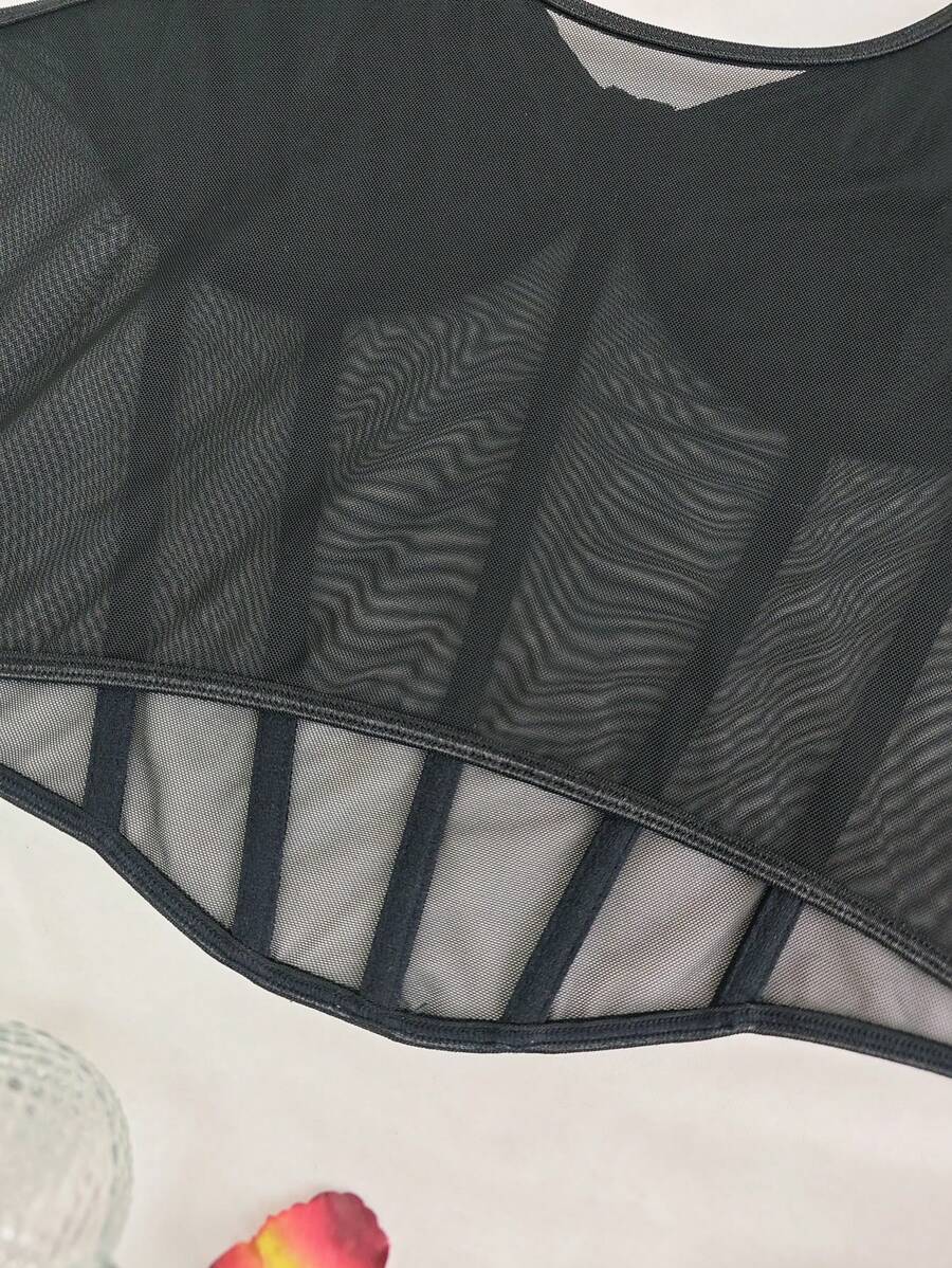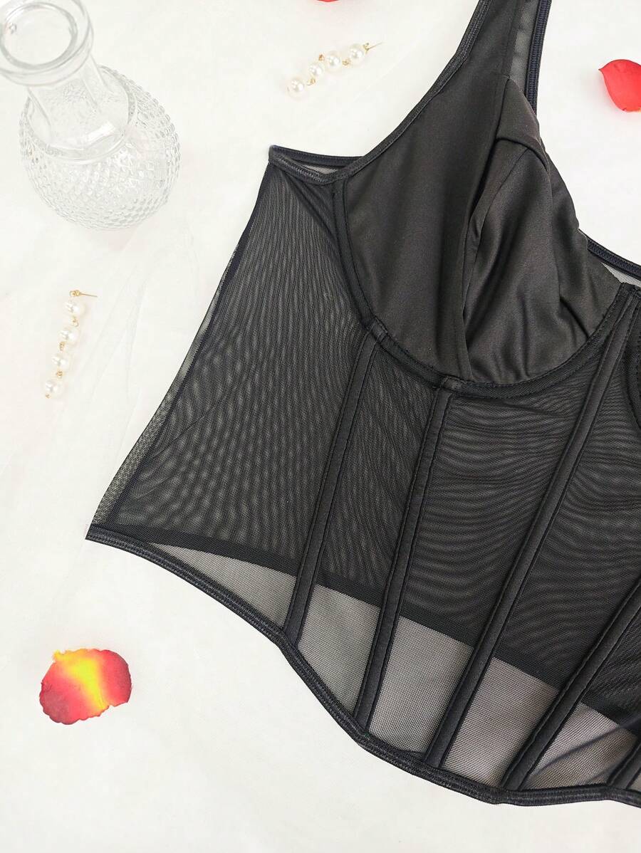 1 pieza corse superior ajustado y sexy de malla con anillos de acero