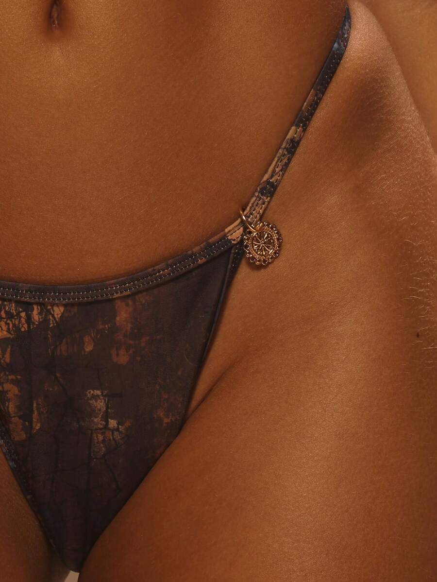Bottom de bikini con detalles de acabados y estampados para vacaciones de verano, ibiza, elegante, lindo, playa, festival, rave, boho, vacaciones, verano