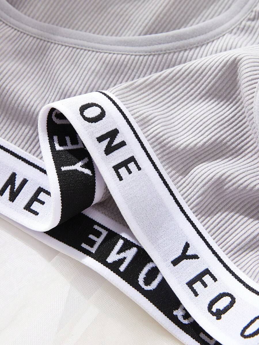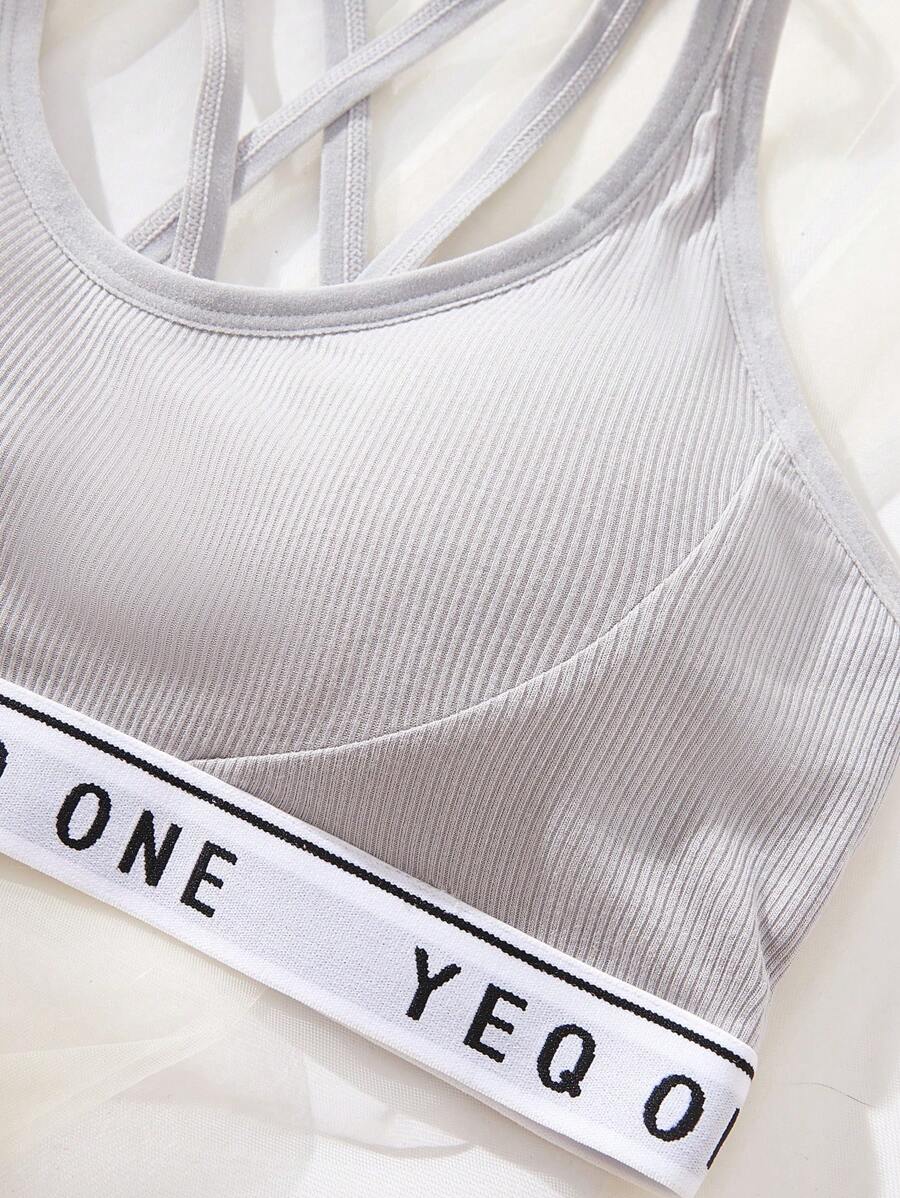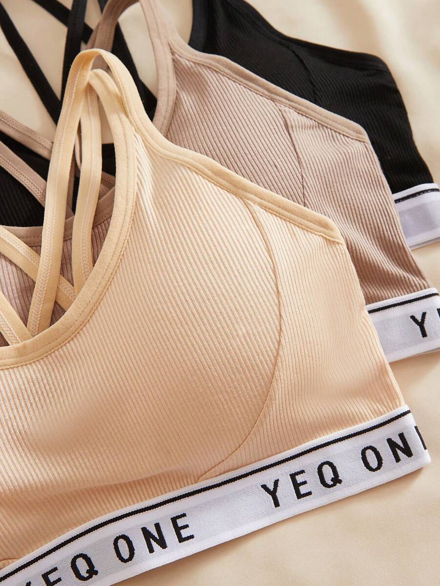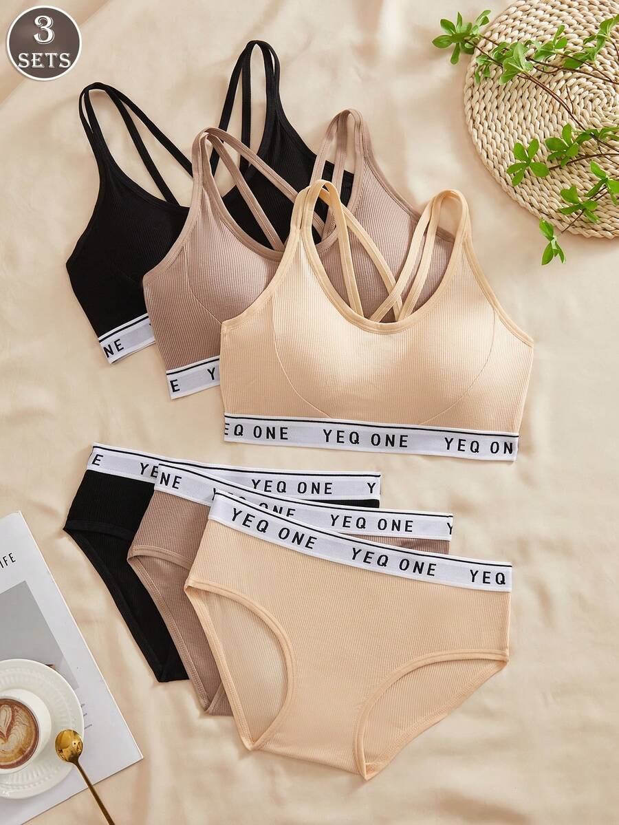 3 conjuntos de ropa interior de mujer con estampado de letra, diseno hueco de cruz y tirantes, sin aro de acero, diseno de espalda comodo y transpirable, conjunto de ropa interior tipo top deportivo.