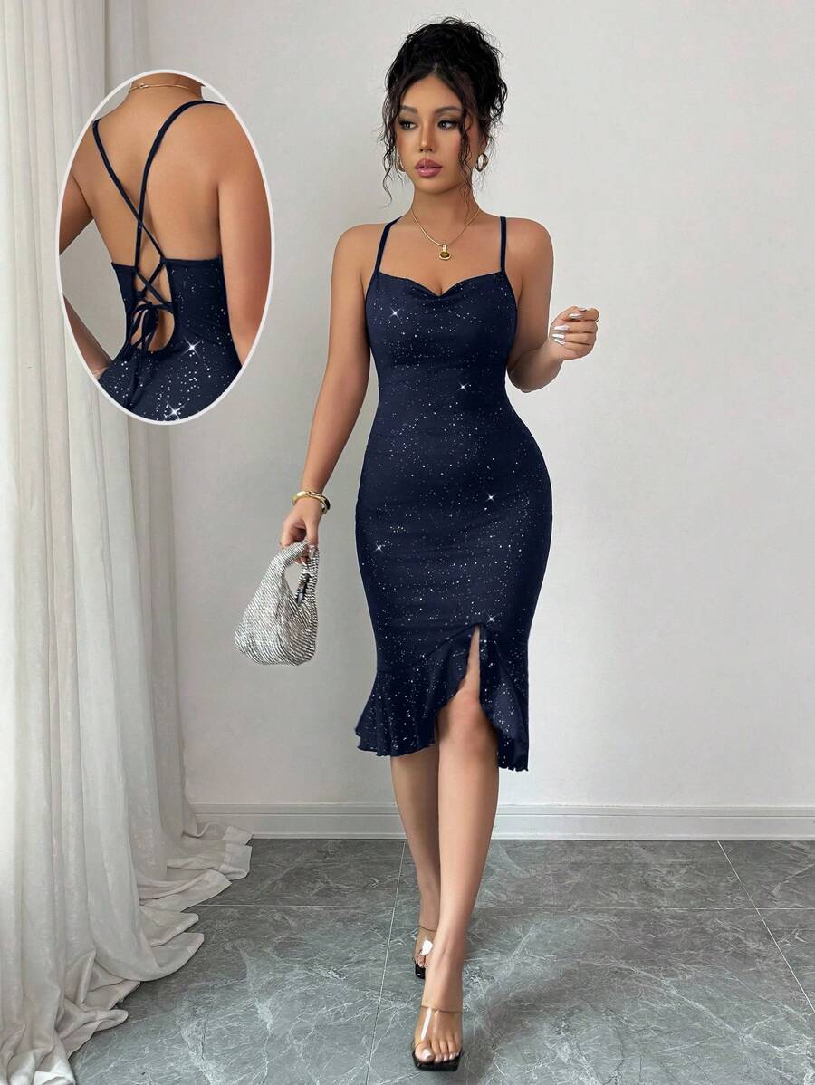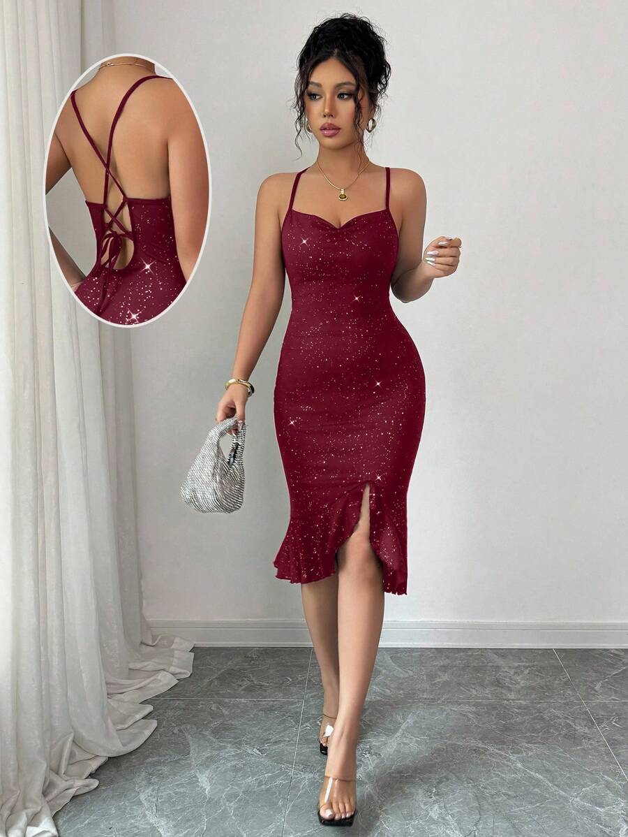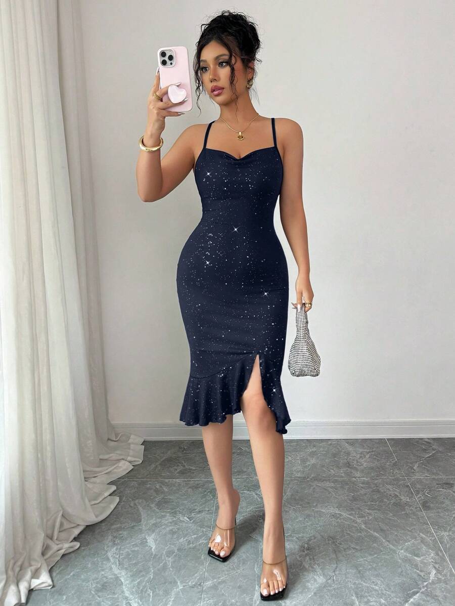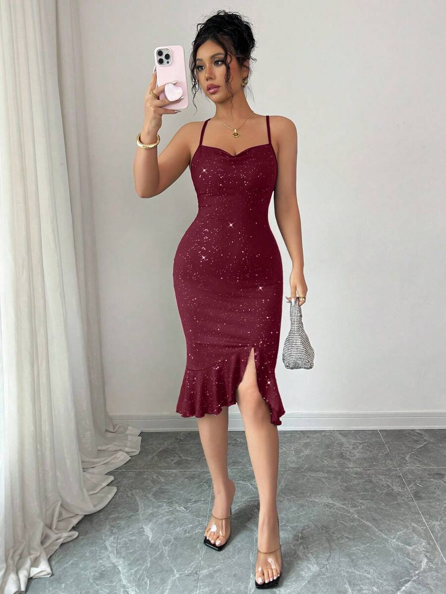 Vestido de sirena elegante con lentejuelas para mujer, adecuado para fiestas de vacaciones