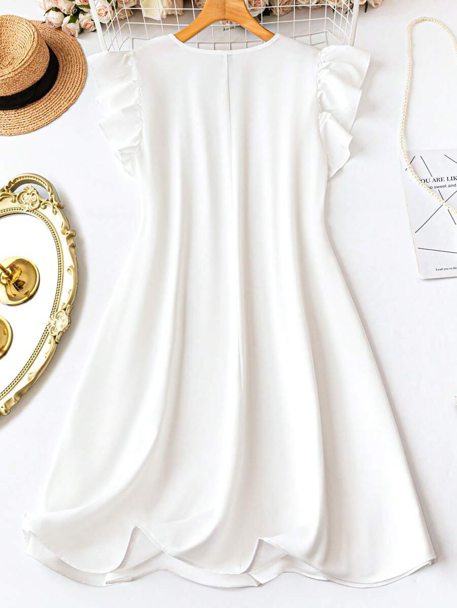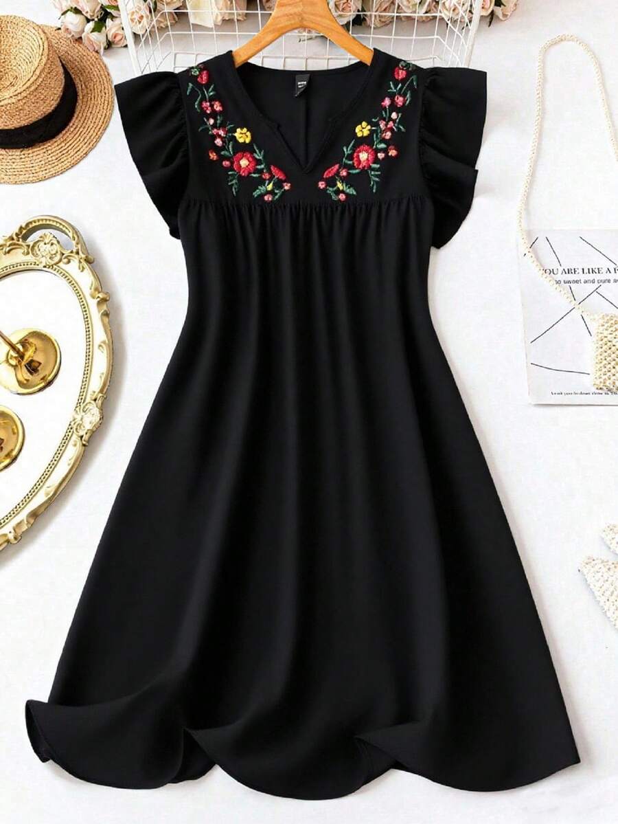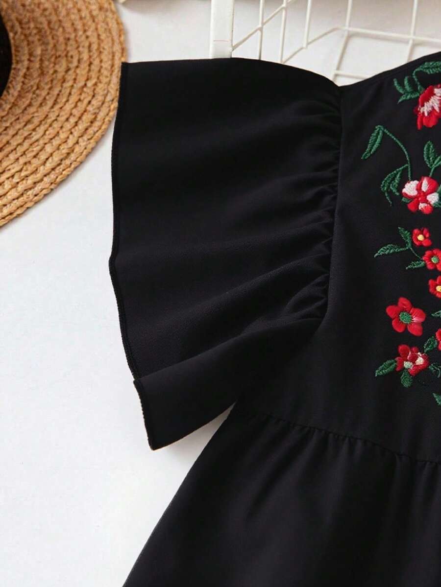 Vestido casual con estampado floral, cuello en v y mangas con volantes hasta la pantorrilla para mujer de talla grande. elegante para el trabajo/uso diario, primavera/verano/otono