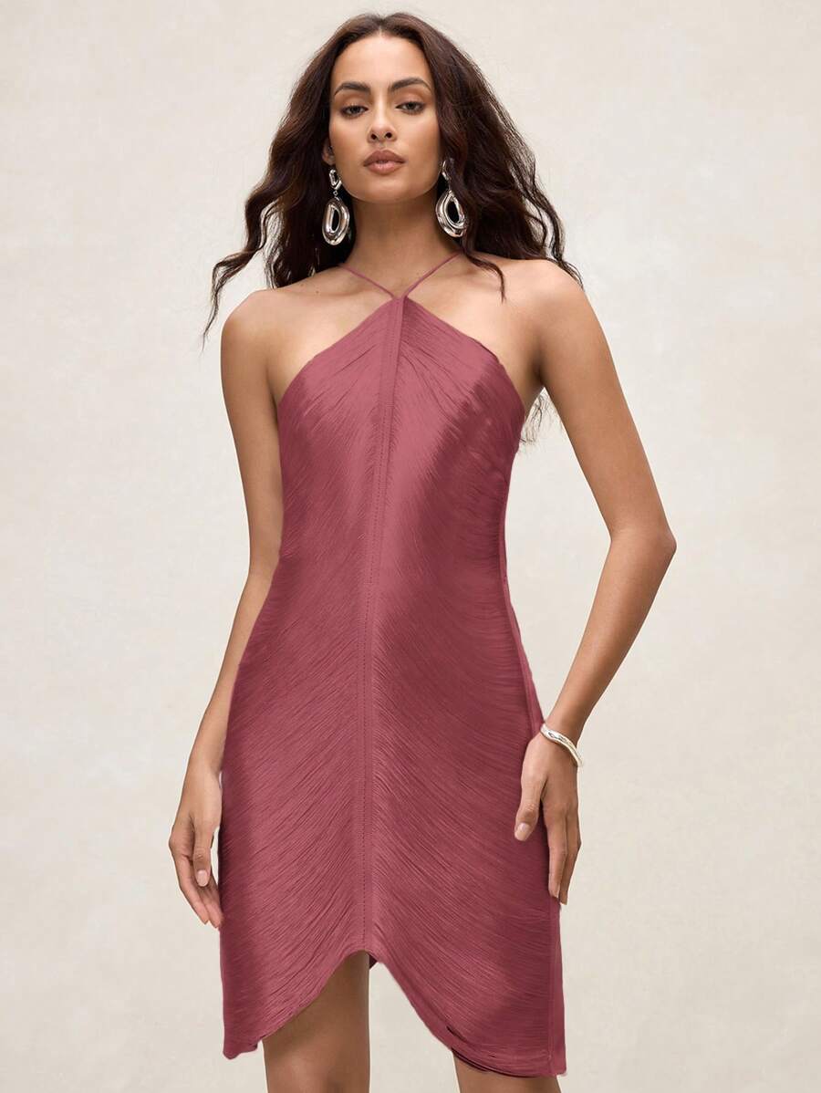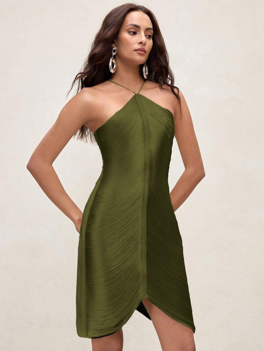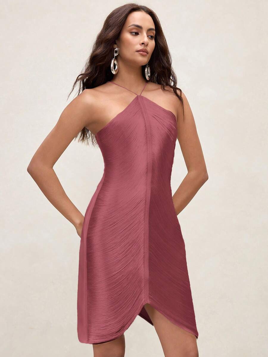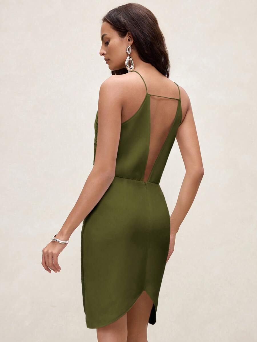Vestido mini de verano para mujer con tirantes, espalda descubierta, flecos y diseno drapeado de unicolor tejido, ideal para fiestas, vacaciones y citas nocturnas