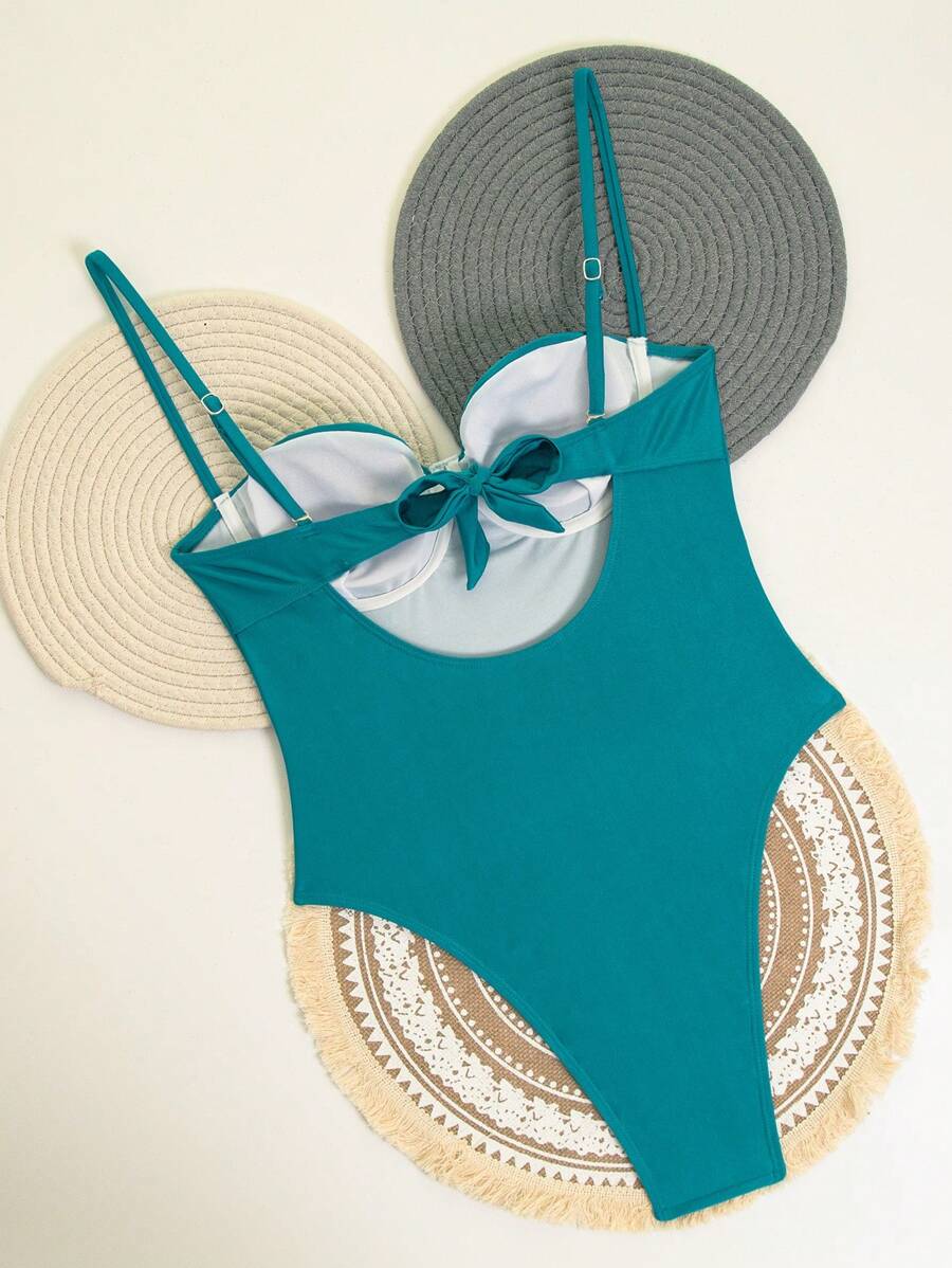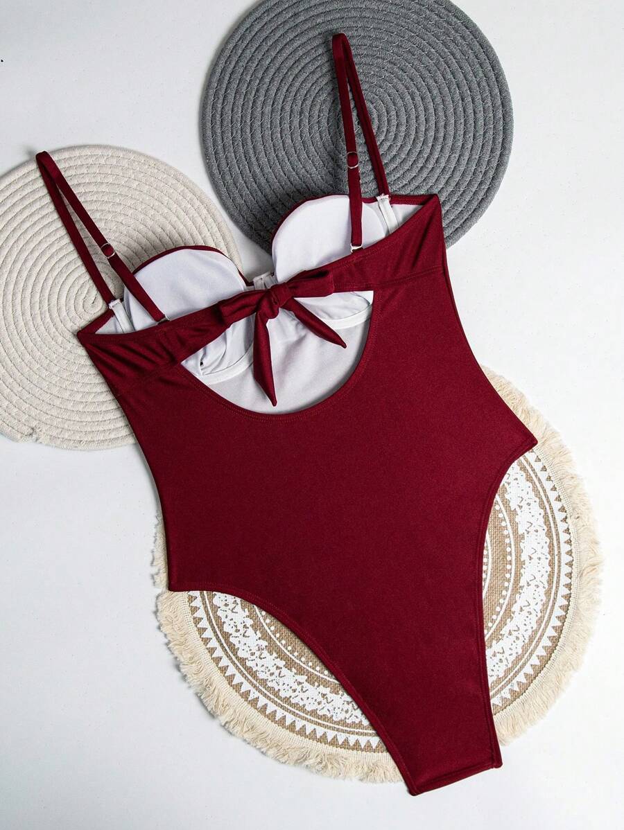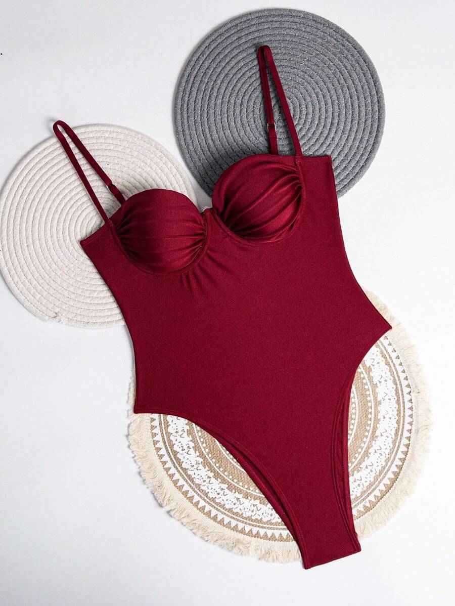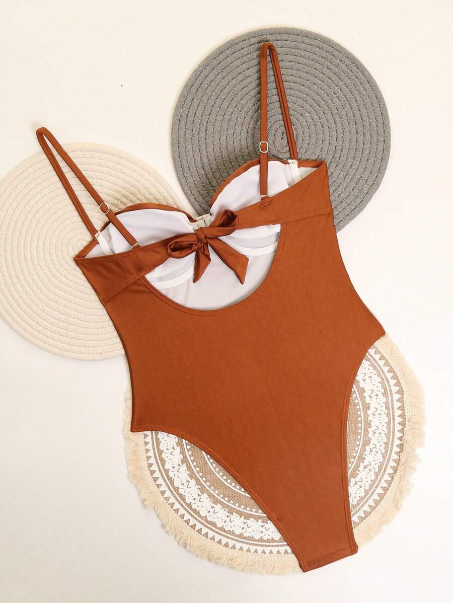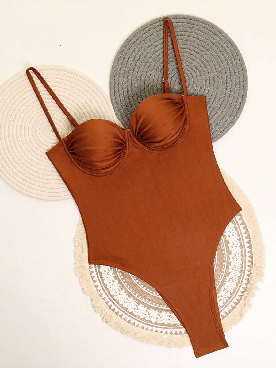 1 pieza traje de bano de una sola pieza para mujer de unicolor tejido, elegante y vintage con soporte de acero, traje de bano de moda de verano