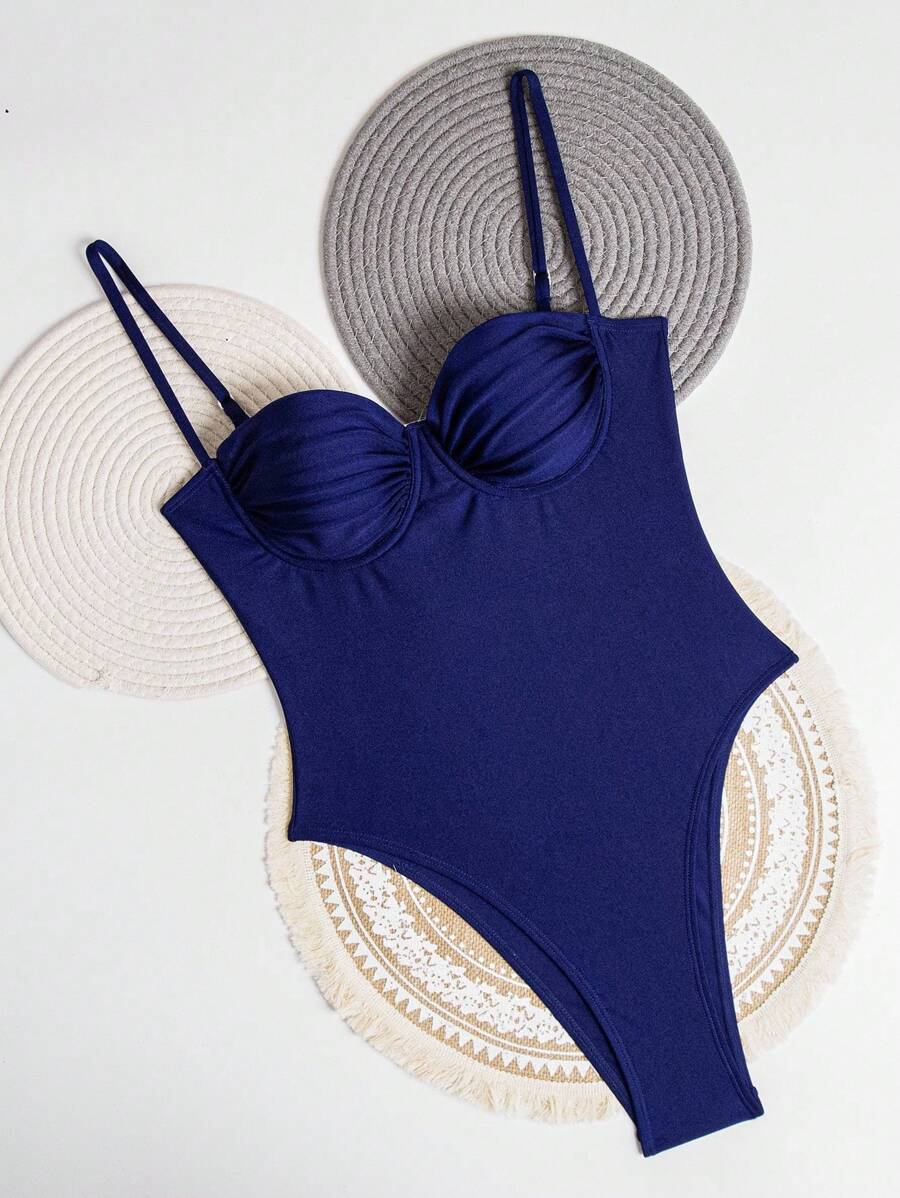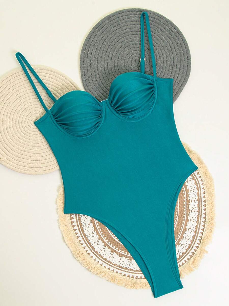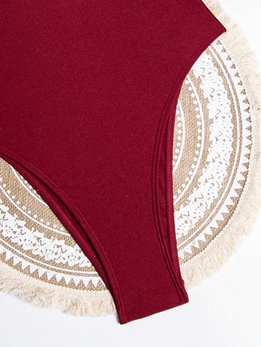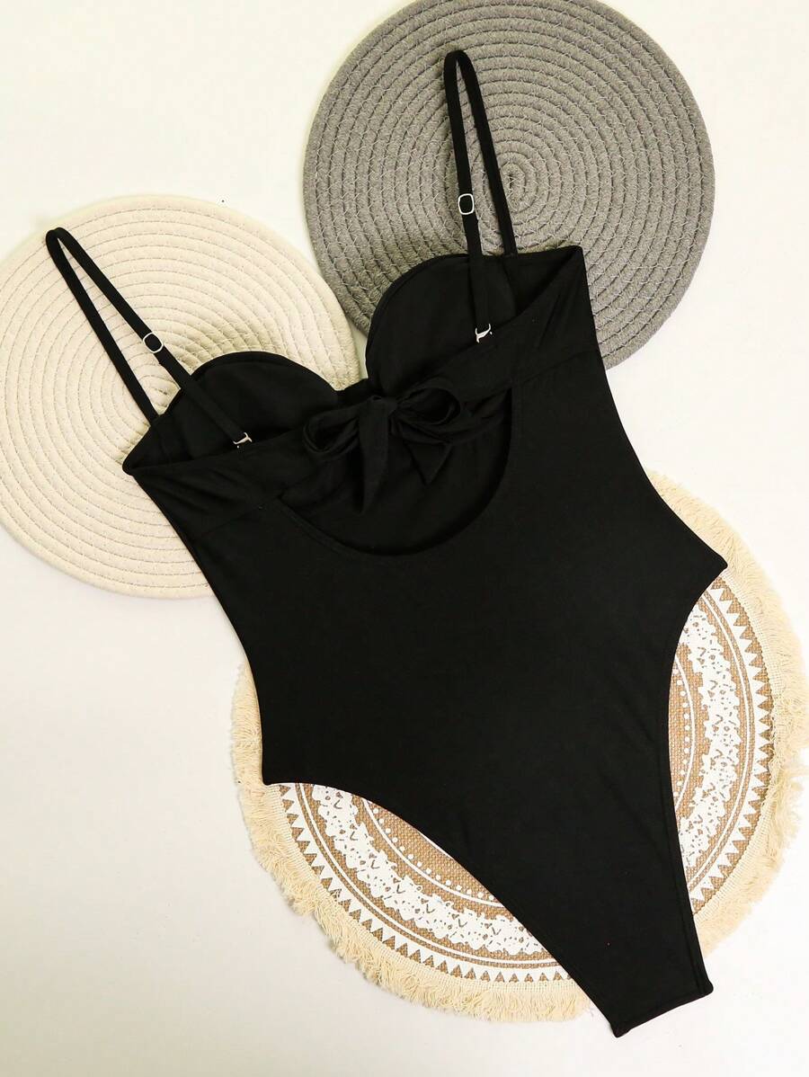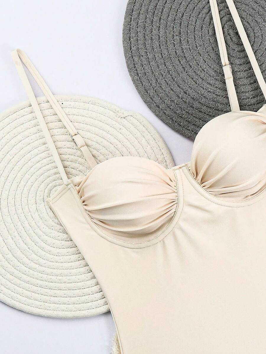 1 pieza traje de bano de una sola pieza para mujer de unicolor tejido, elegante y vintage con soporte de acero, traje de bano de moda de verano