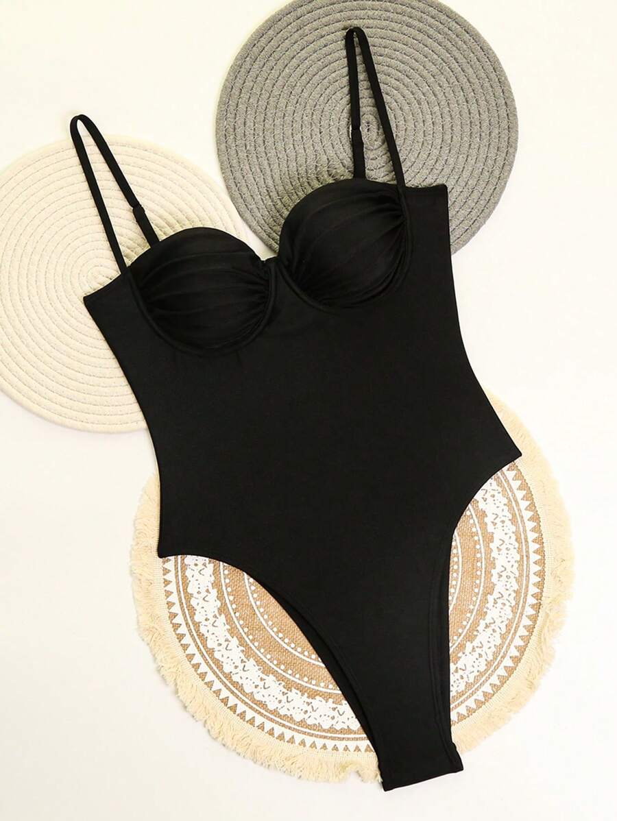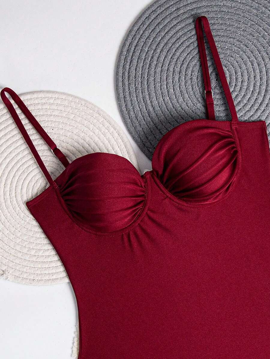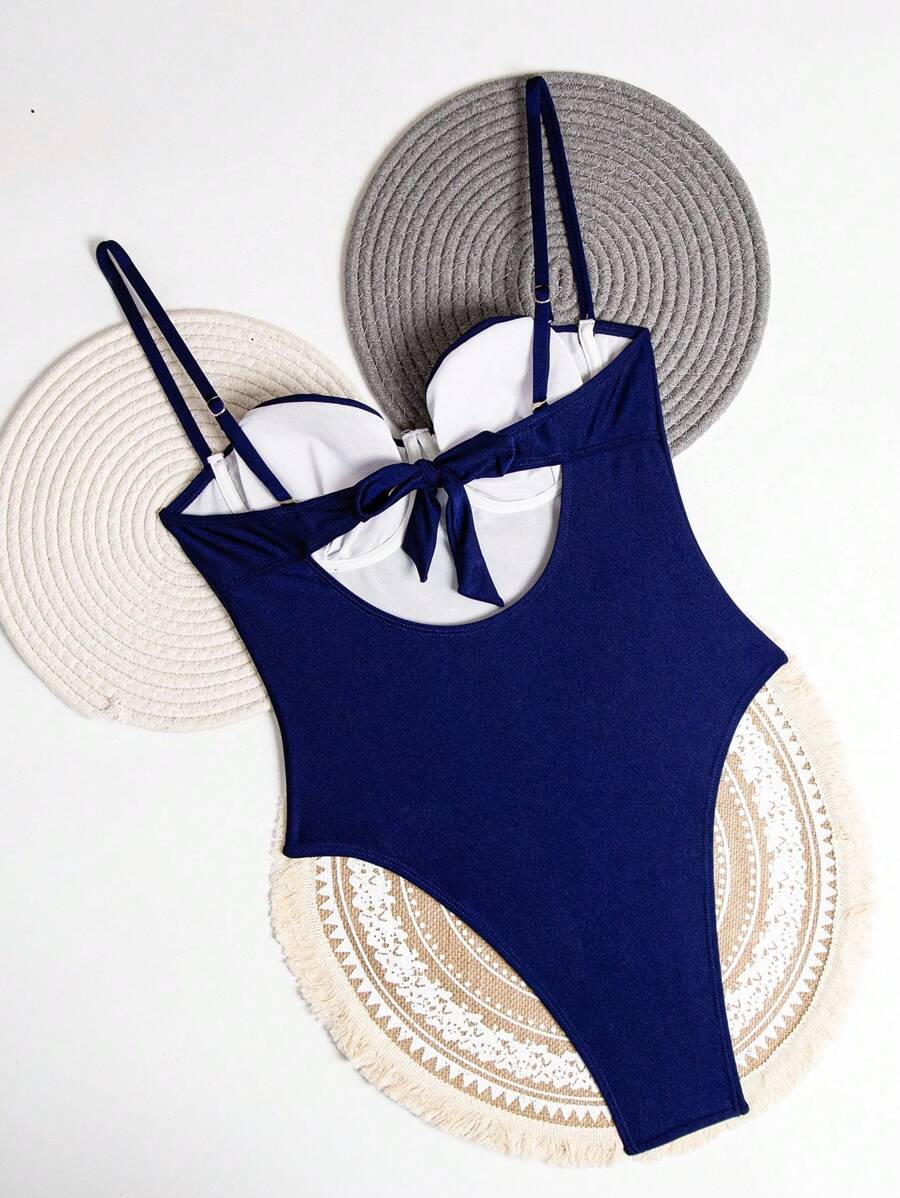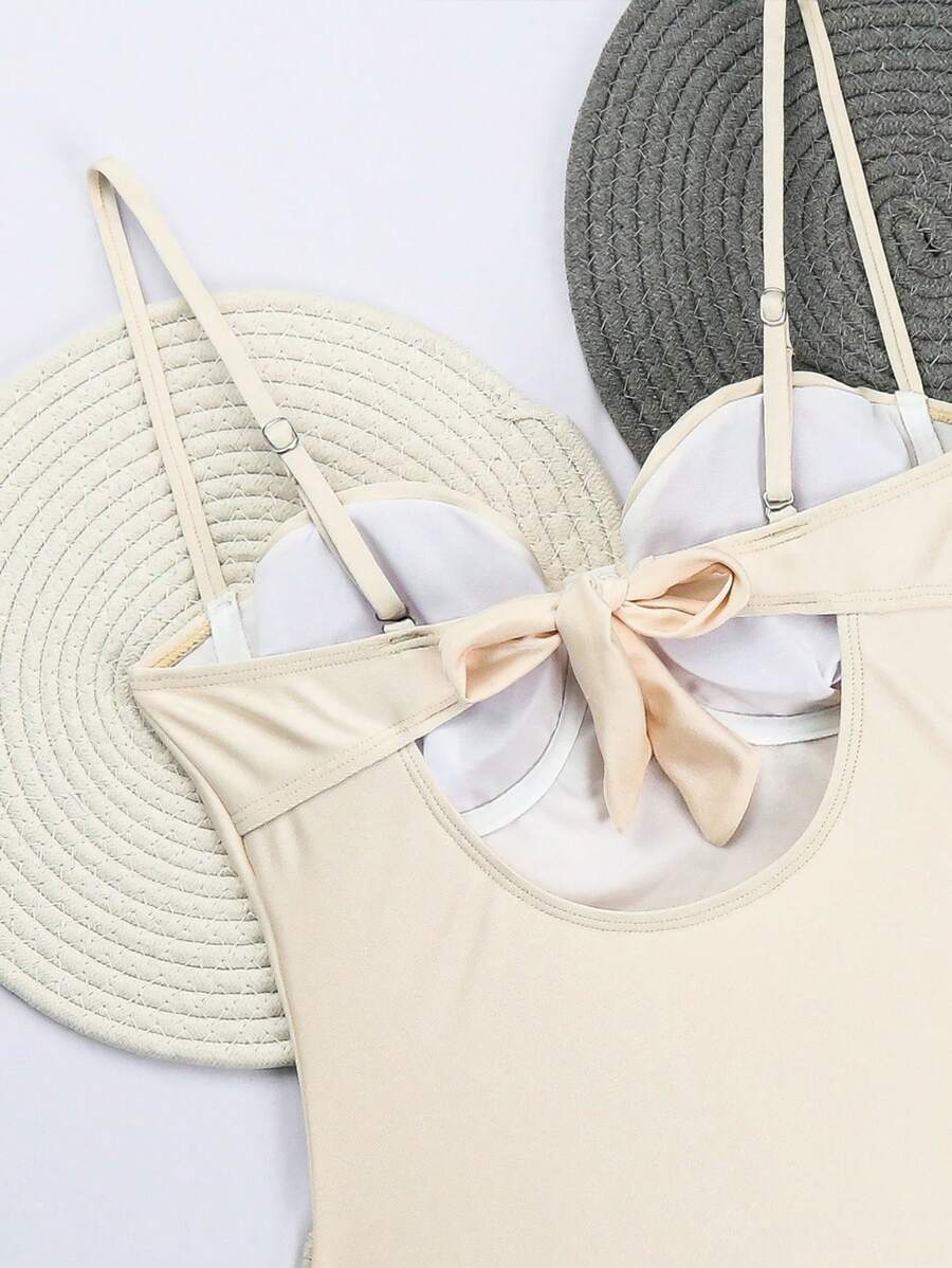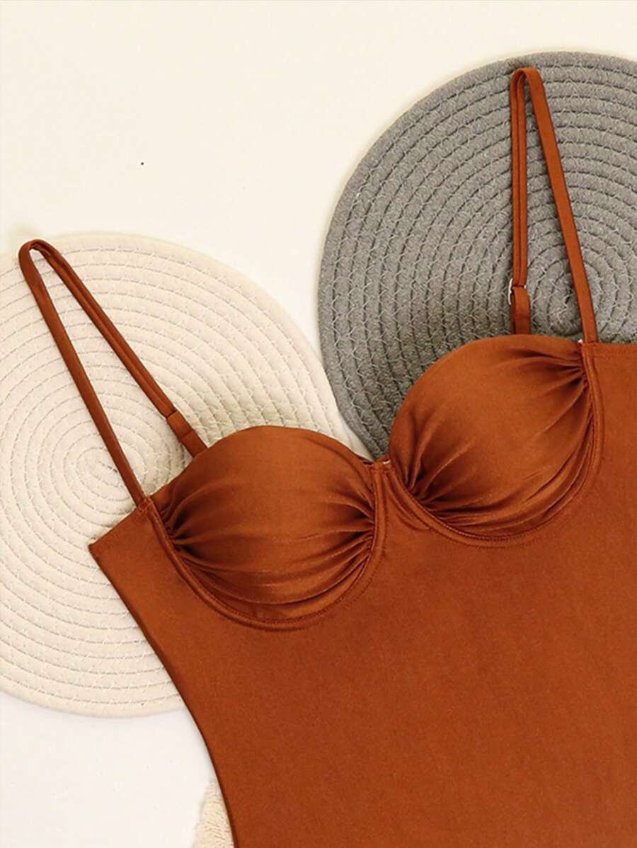 1 pieza traje de bano de una sola pieza para mujer de unicolor tejido, elegante y vintage con soporte de acero, traje de bano de moda de verano