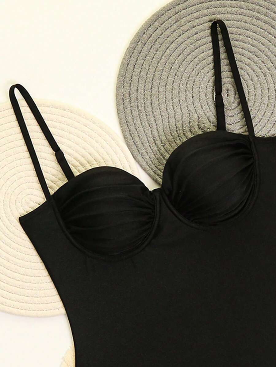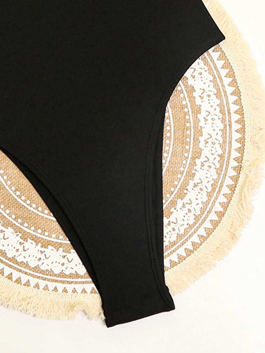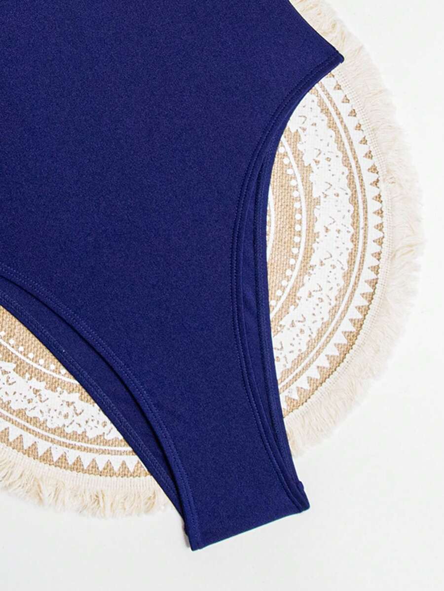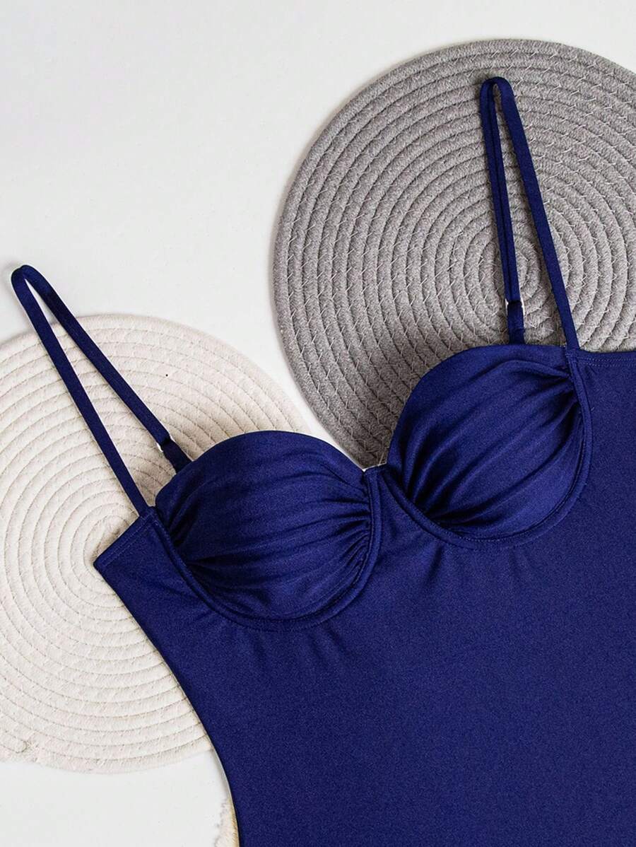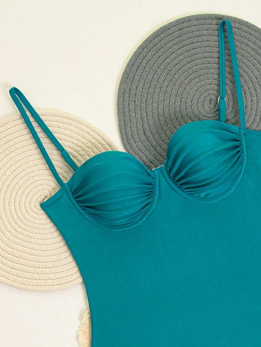 1 pieza traje de bano de una sola pieza para mujer de unicolor tejido, elegante y vintage con soporte de acero, traje de bano de moda de verano