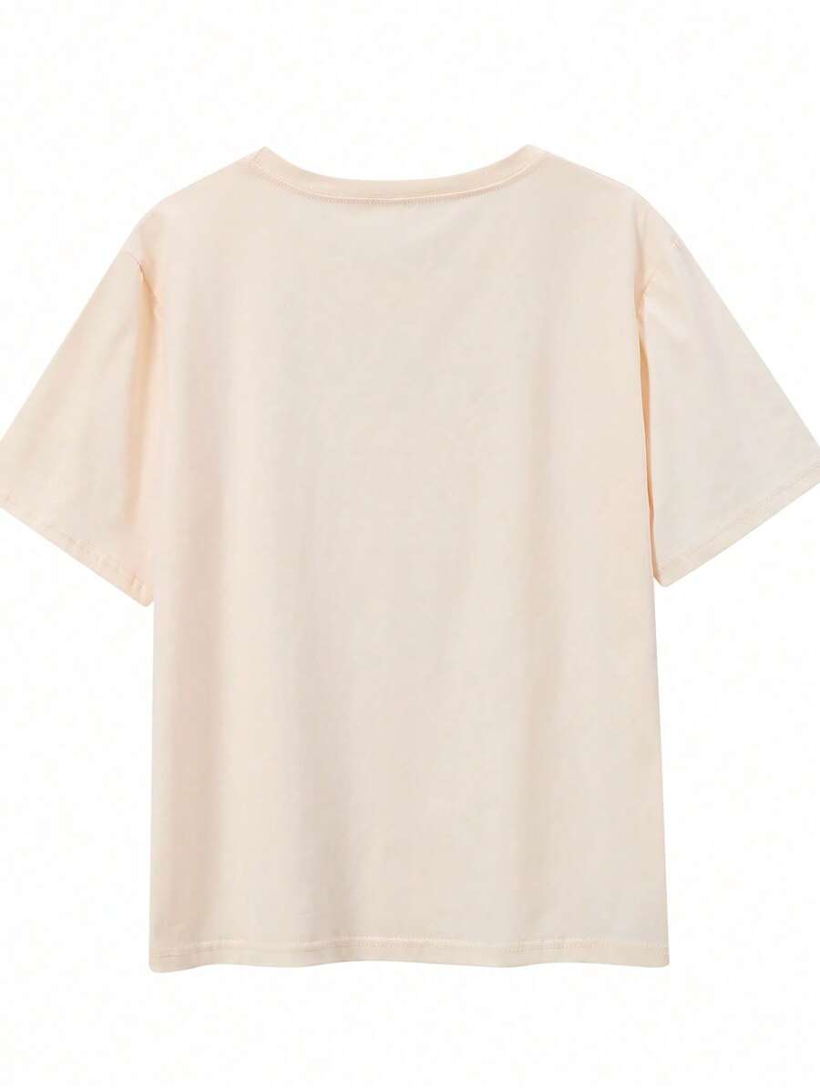 1 pieza camiseta de dormir ajustada de mujer de talla grande con estampado de taza de dibujos animados, informal