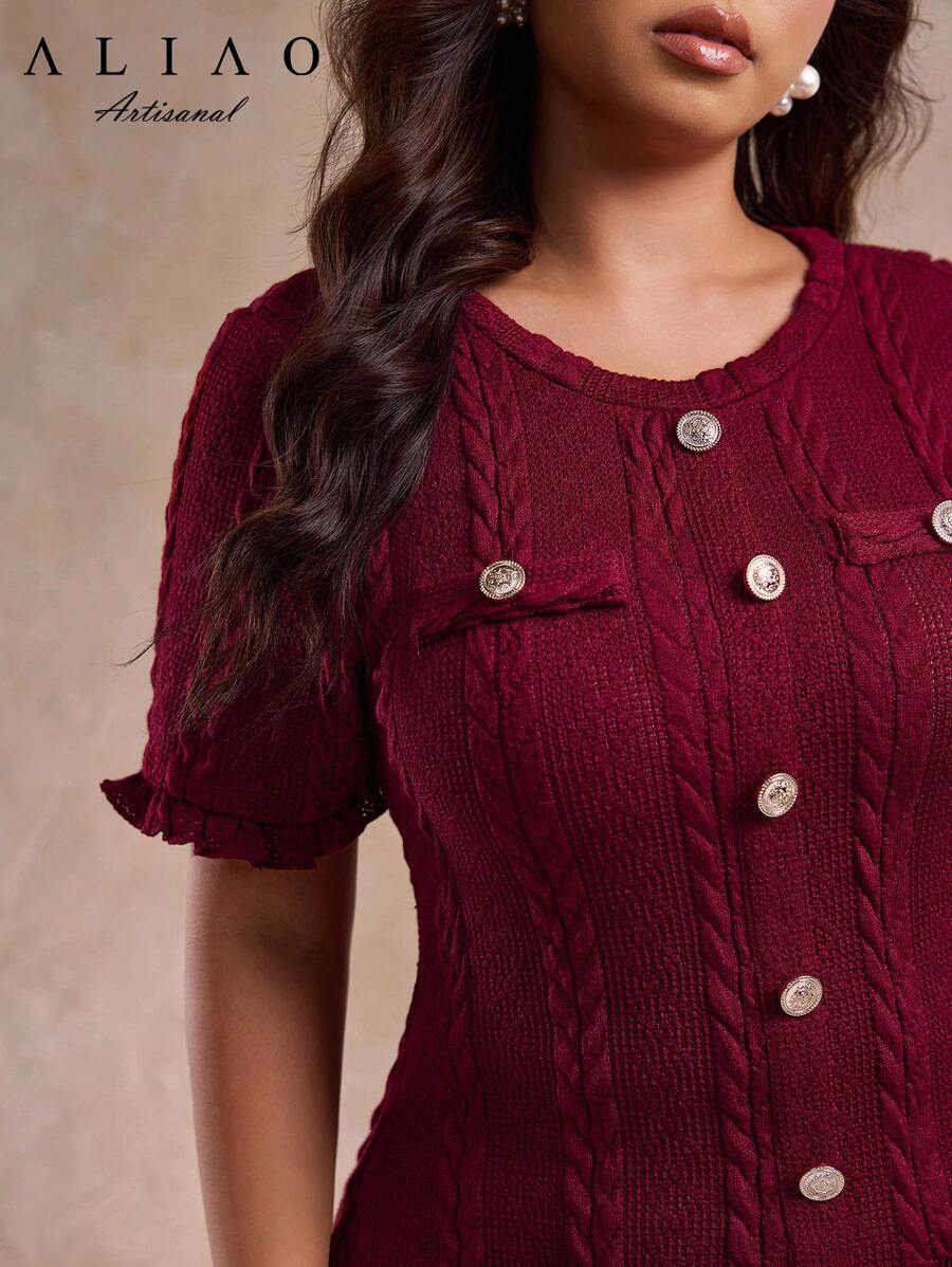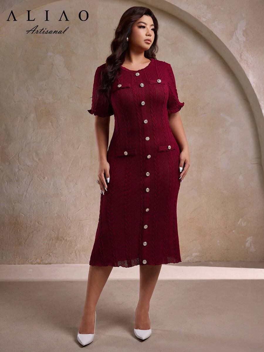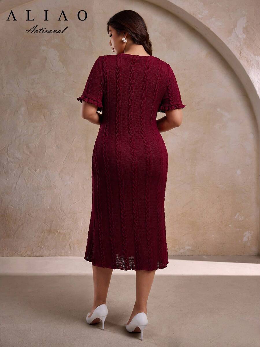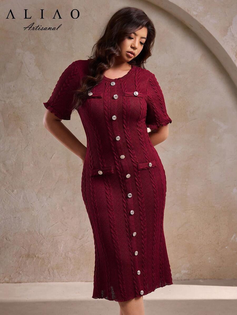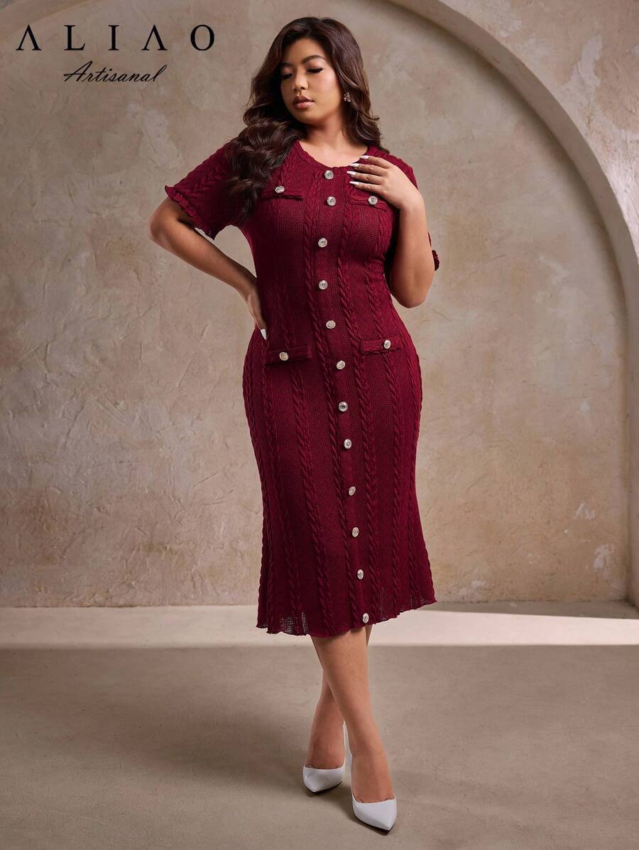 Vestido de sirena elegante de punto con recorte y cintura cenida de talla grande a&a, vestido de otono, regreso a la escuela, curvas modestas de mujer, dinero antiguo, vestido de invitada de boda