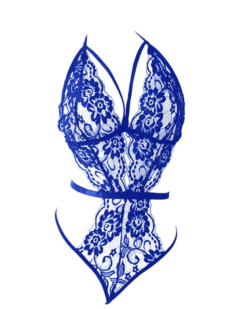 Body/body de encaje sexy de una sola pieza con escote de pico y cuello halter para mujer