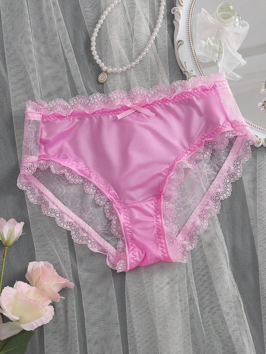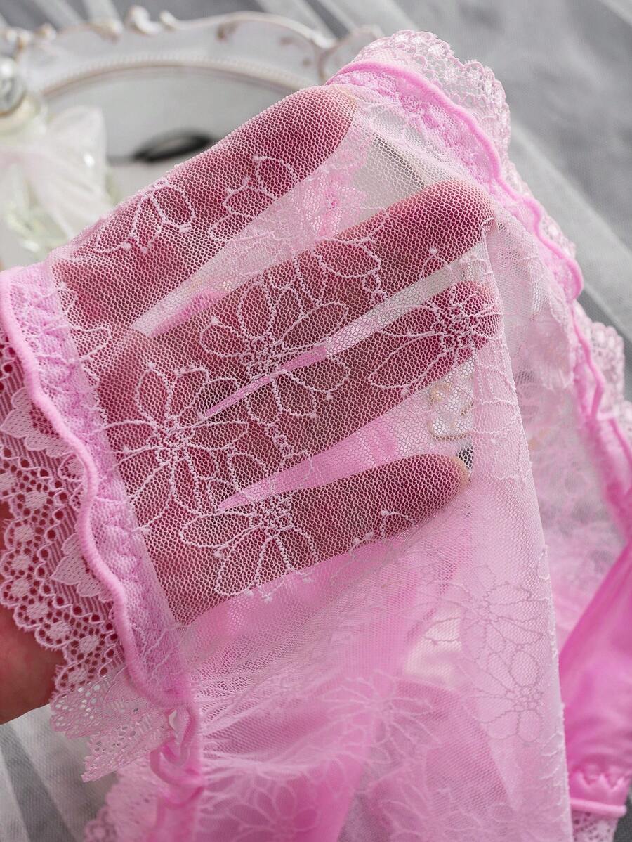 Florallove 1 pieza tanga elegante de encaje rosado con parches para mujer
