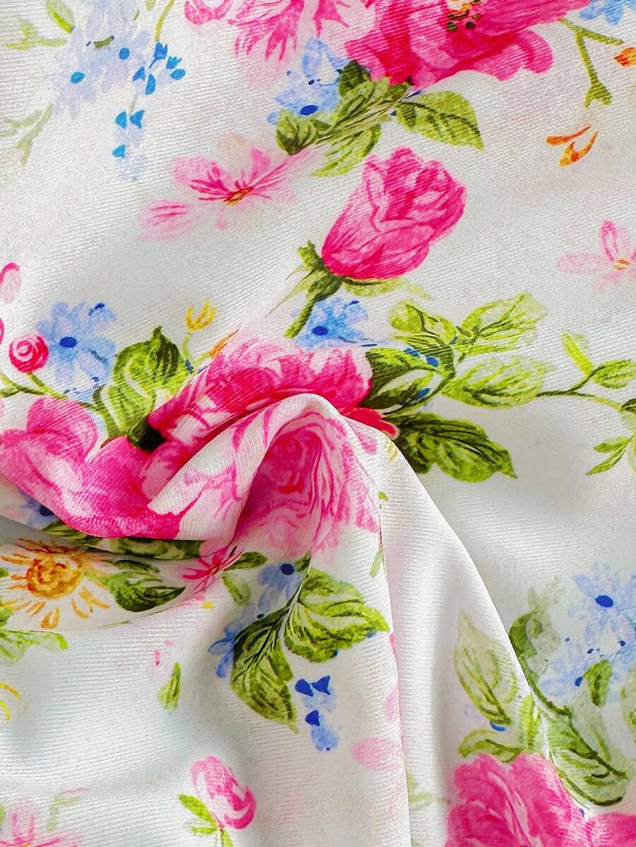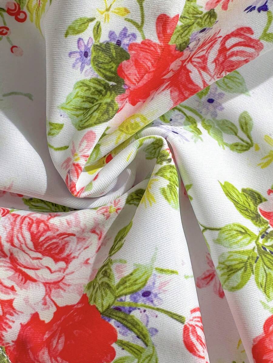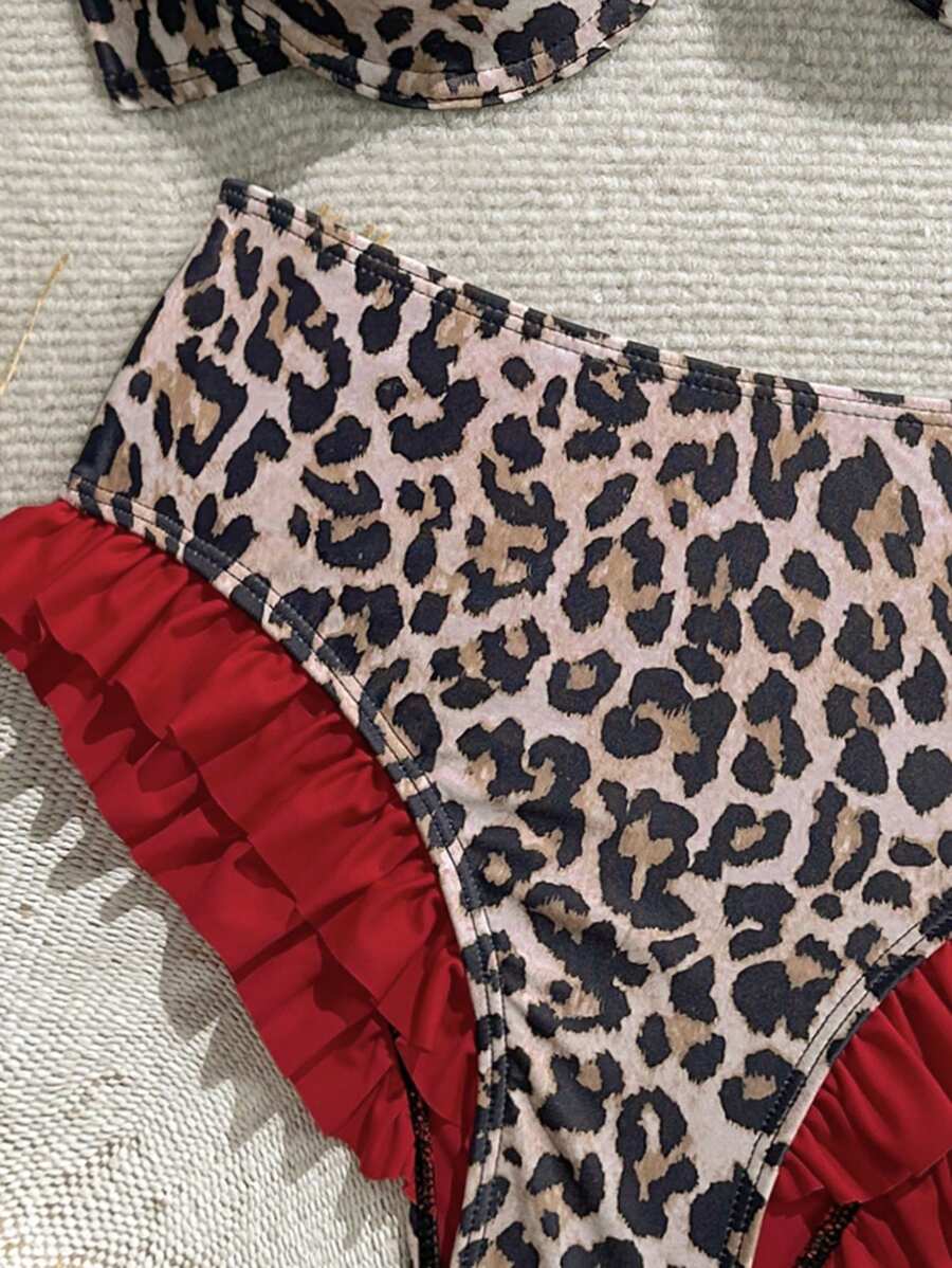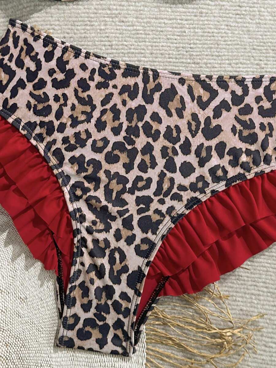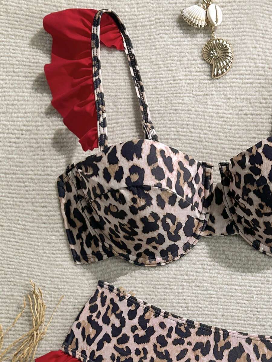 2 piezas conjunto de bikini con estampado floral y ribete de rizo para mujer, estilo romantico de vacaciones