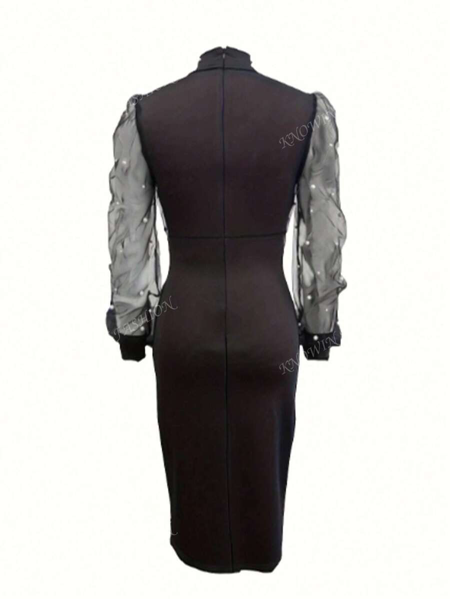Vestido de punto ajustado con parches de malla transparente, decoracion de lentejuelas, elegante y romantico para mujer. ideal para fiestas, cumpleanos, vacaciones, graduacion, estilo fairycore, bodas, conciertos y pascua.