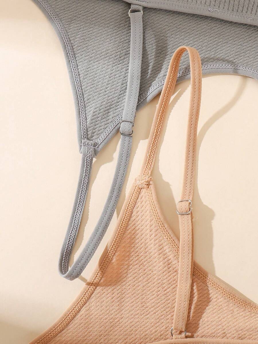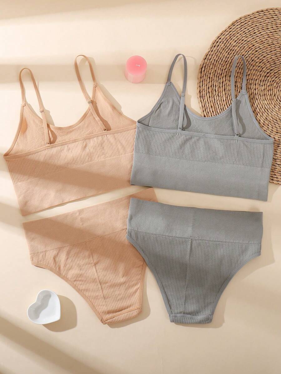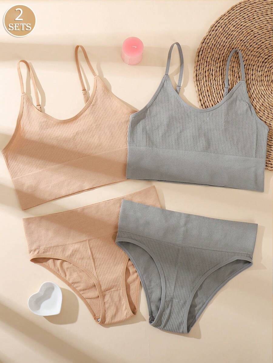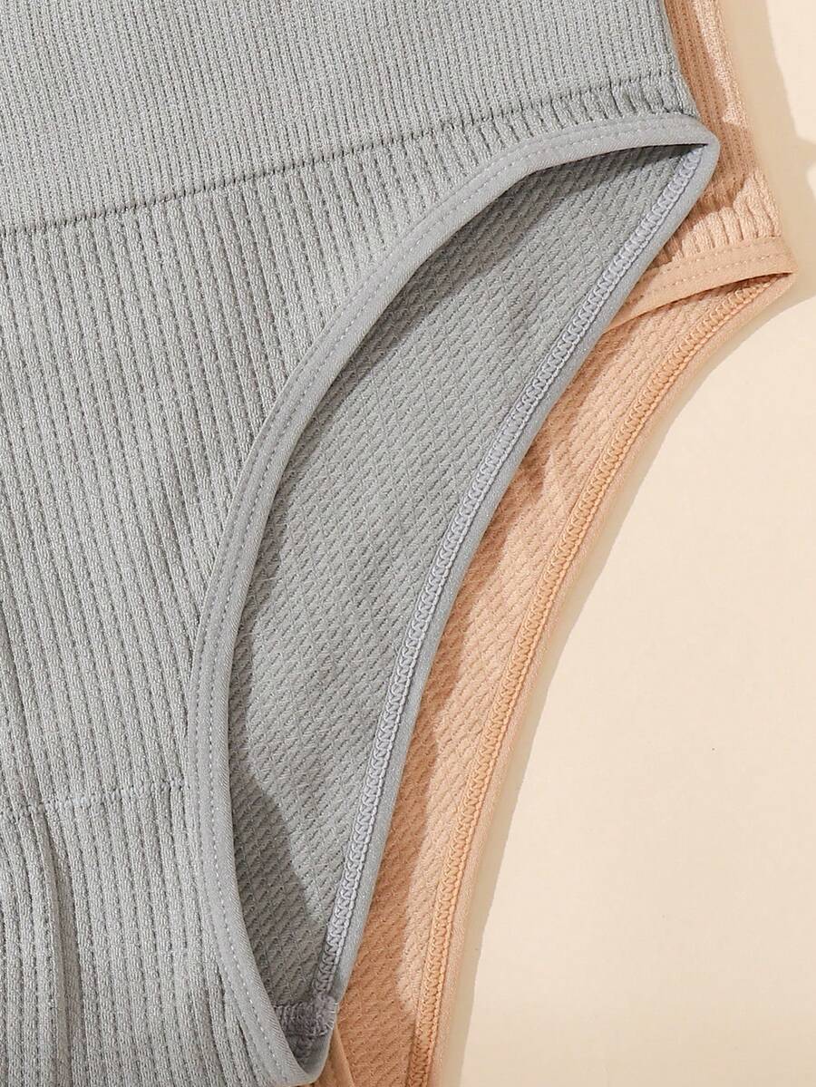 2 piezas conjunto de ropa interior sin costuras de unicolor acanalado para mujer, tela comoda, diseno simple y ajustado
