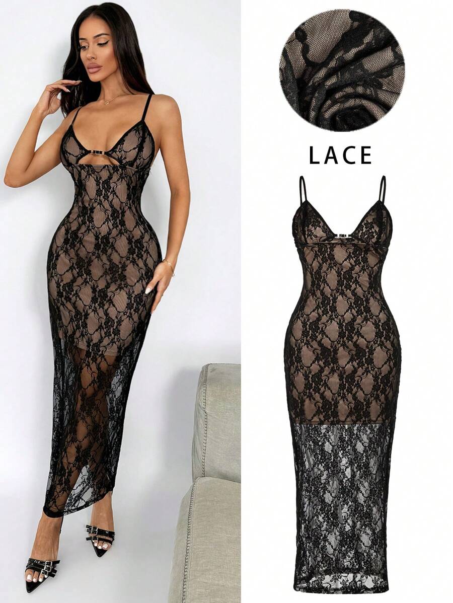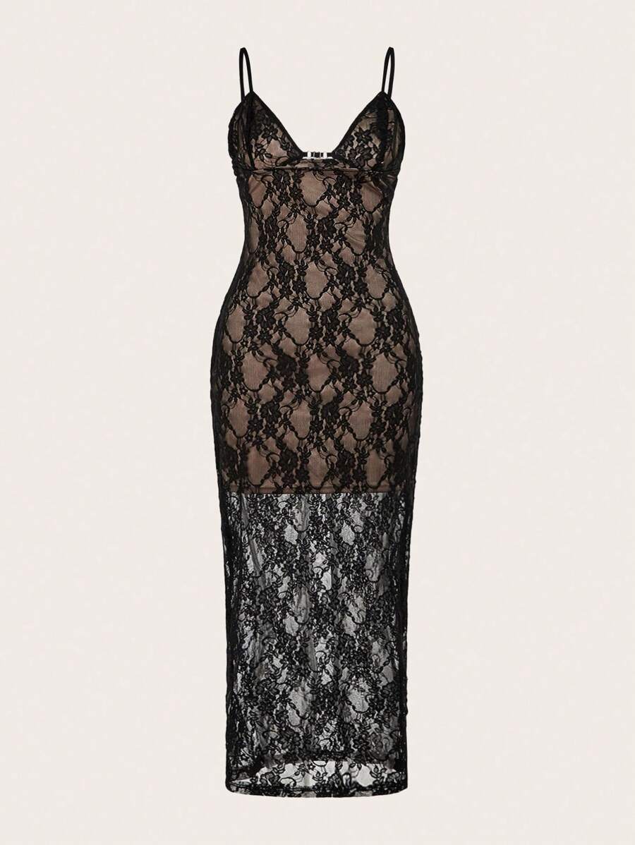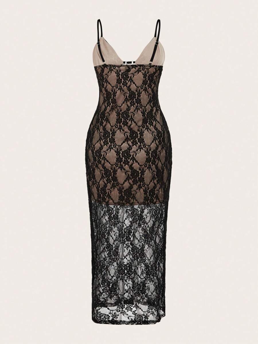 Vestido de tirantes de encaje negro elegante y sexy con contraste de color, adecuado para sirena de oficina seductora, baile de graduacion, san valentin, crucero, viaje de negocios, retro, fiesta, resort, salida, dinero antiguo, con capas