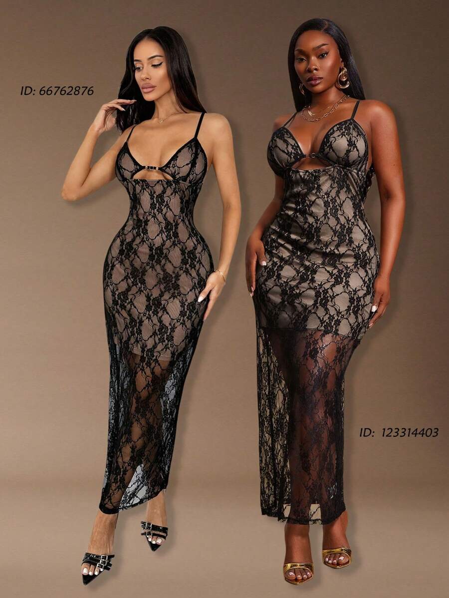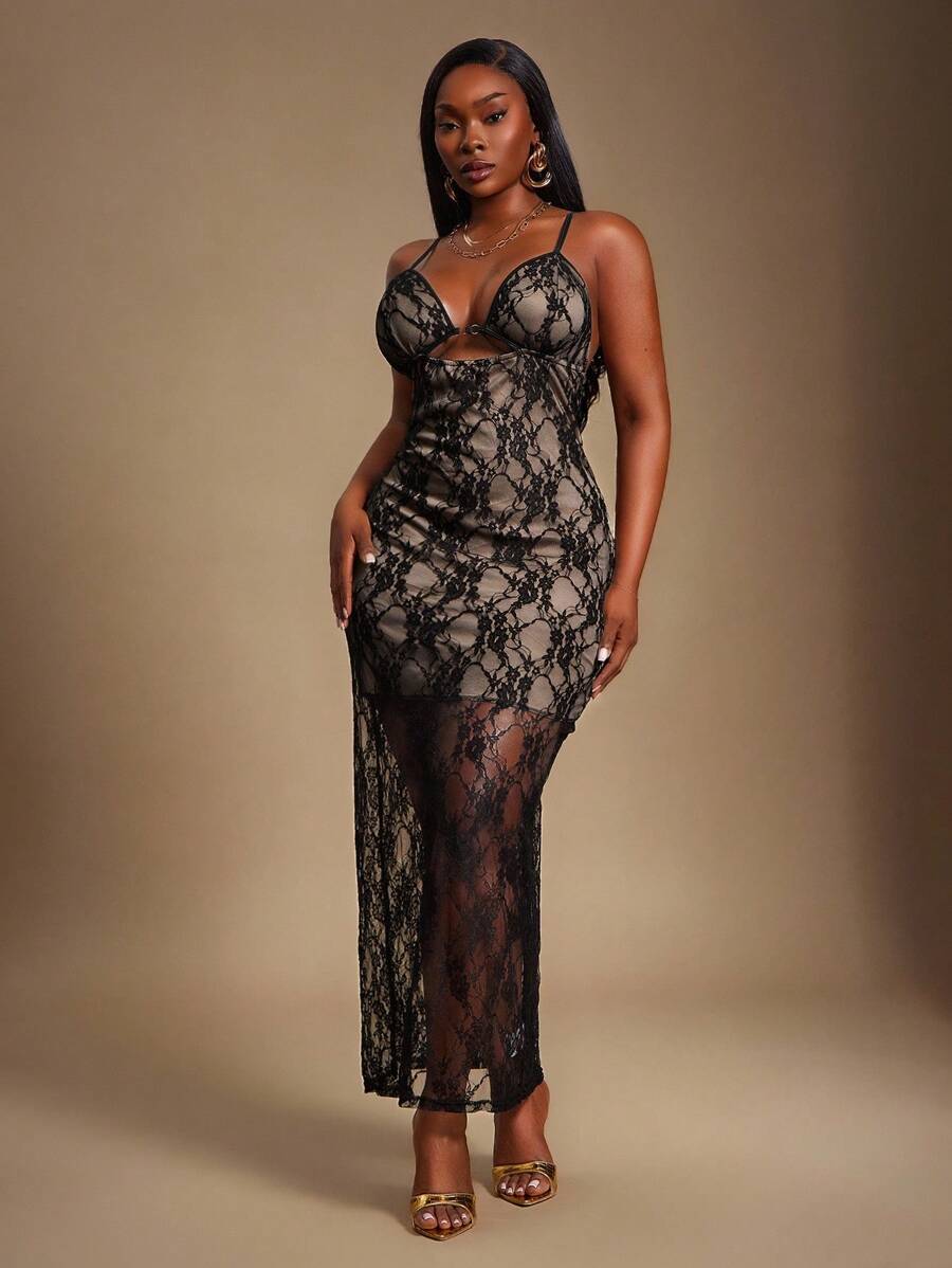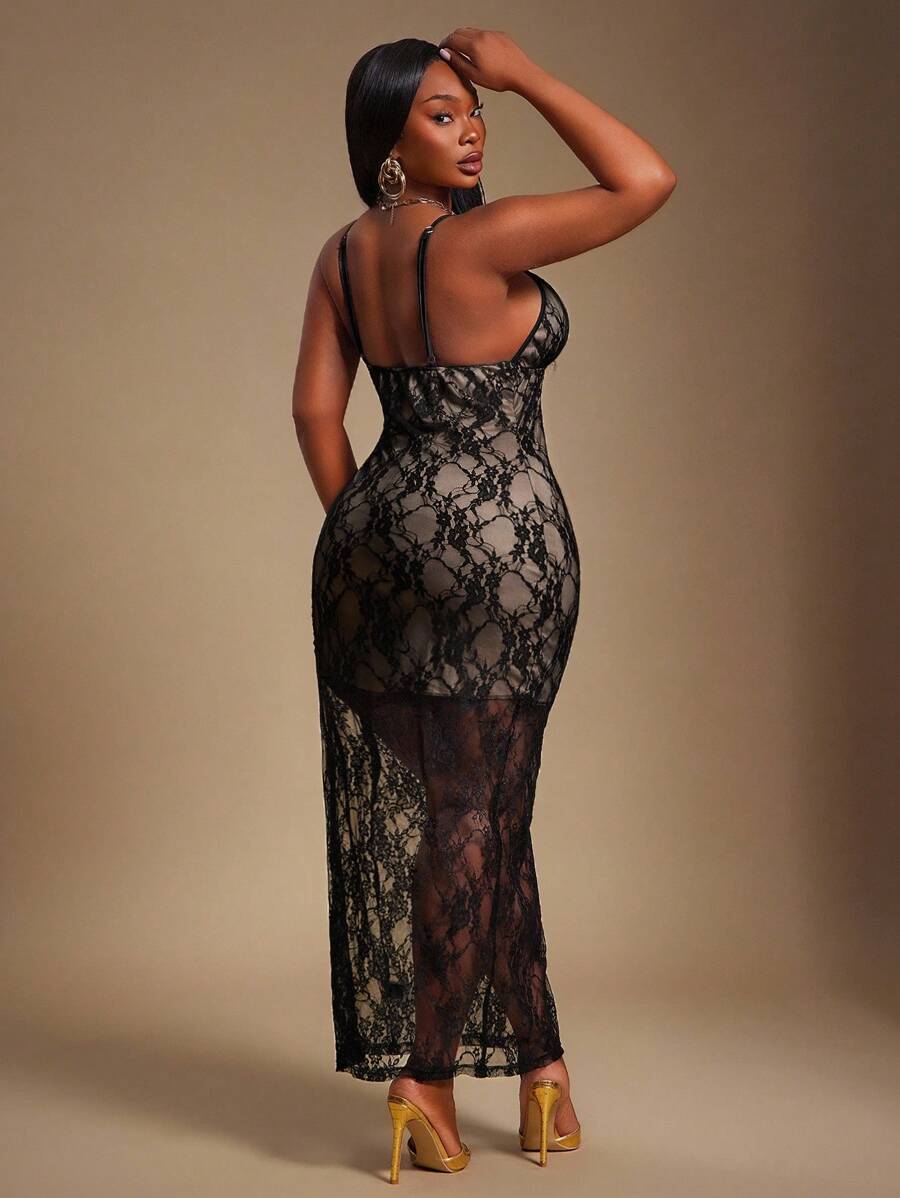 Vestido de tirantes de encaje negro elegante y sexy con contraste de color, adecuado para sirena de oficina seductora, baile de graduacion, san valentin, crucero, viaje de negocios, retro, fiesta, resort, salida, dinero antiguo, con capas