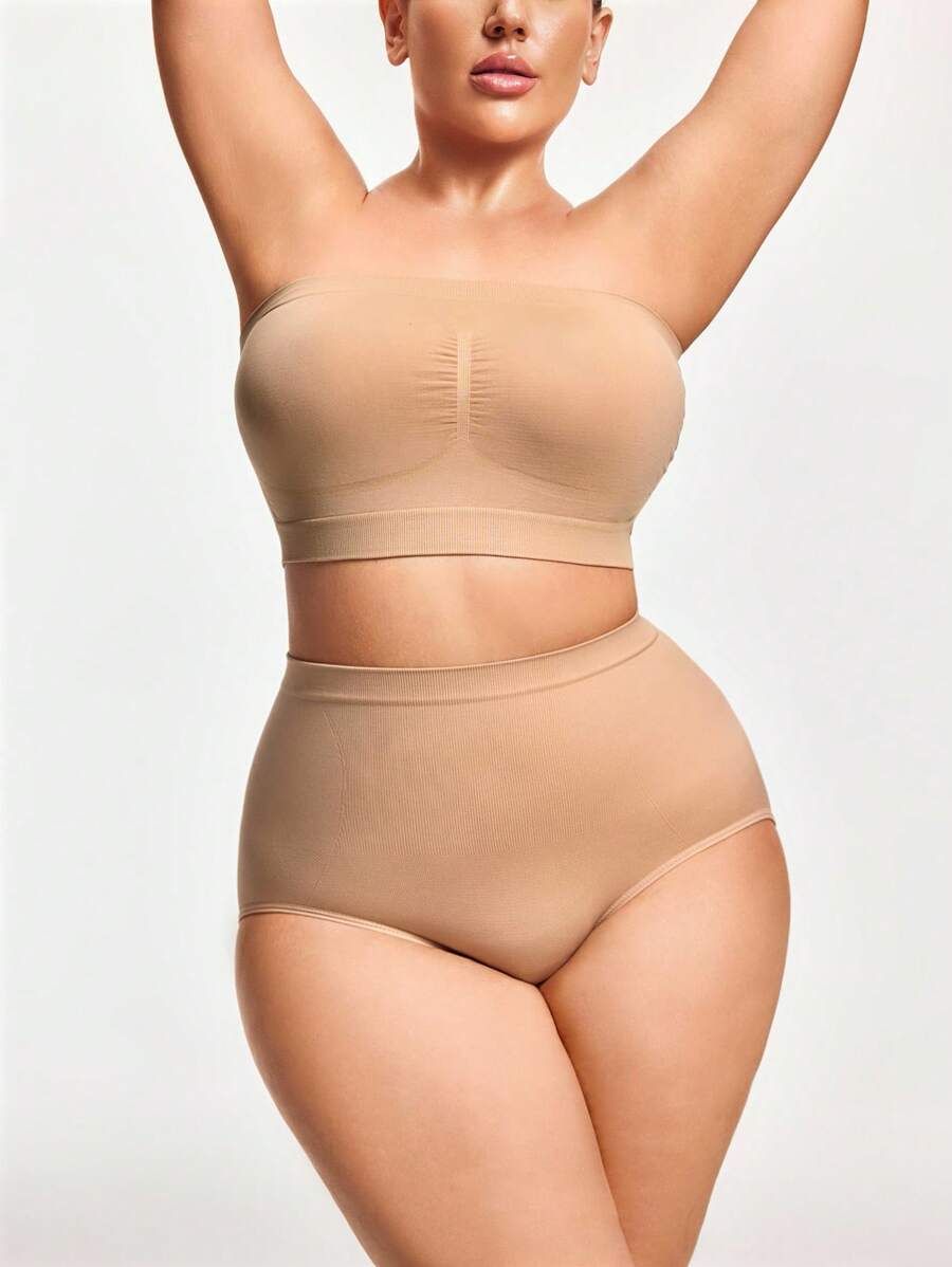 Forme bragas de unicolor acanaladas sin costuras para mujeres de talla grande