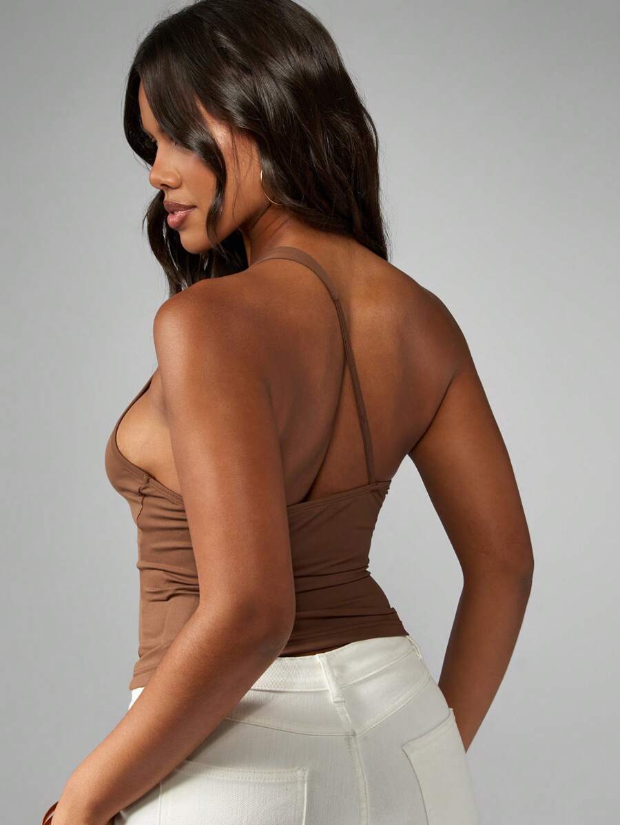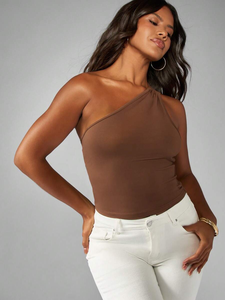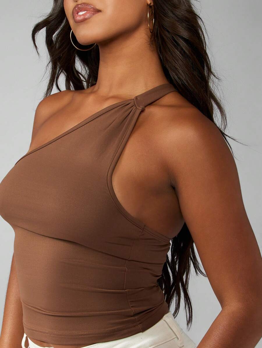 Top de un solo hombro, ajustado, de longitud corta, que realza la figura con pliegues laterales, para uso en verano, clubes, fiestas y como pieza basica y esencial del guardarropa