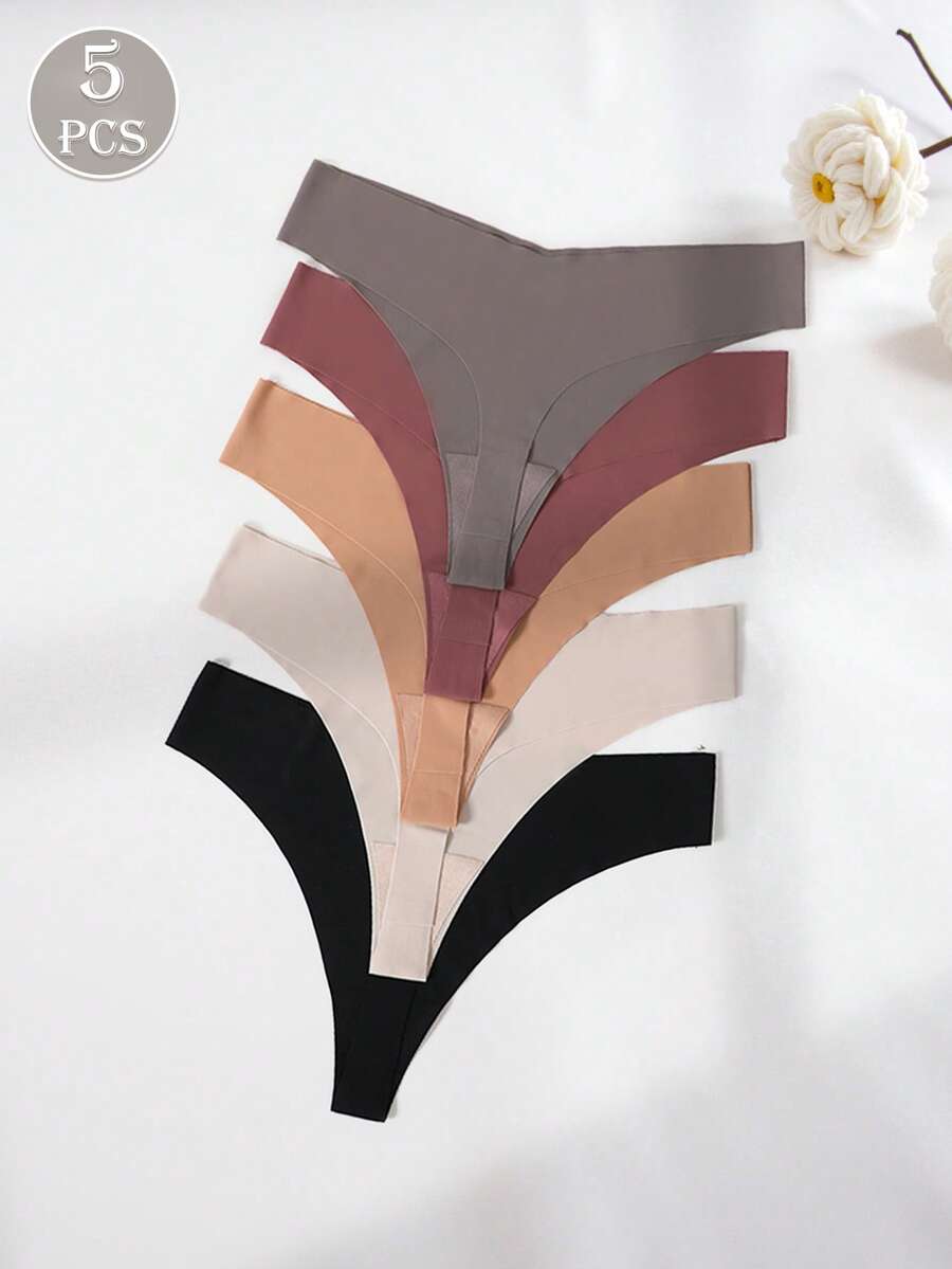 5 piezas conjunto de lenceria sexy de tangas sin costuras para mujer, bragas tipo braga, tanga de cuerda g para mujeres, bikini de espalda en t adecuado para festival de bodas