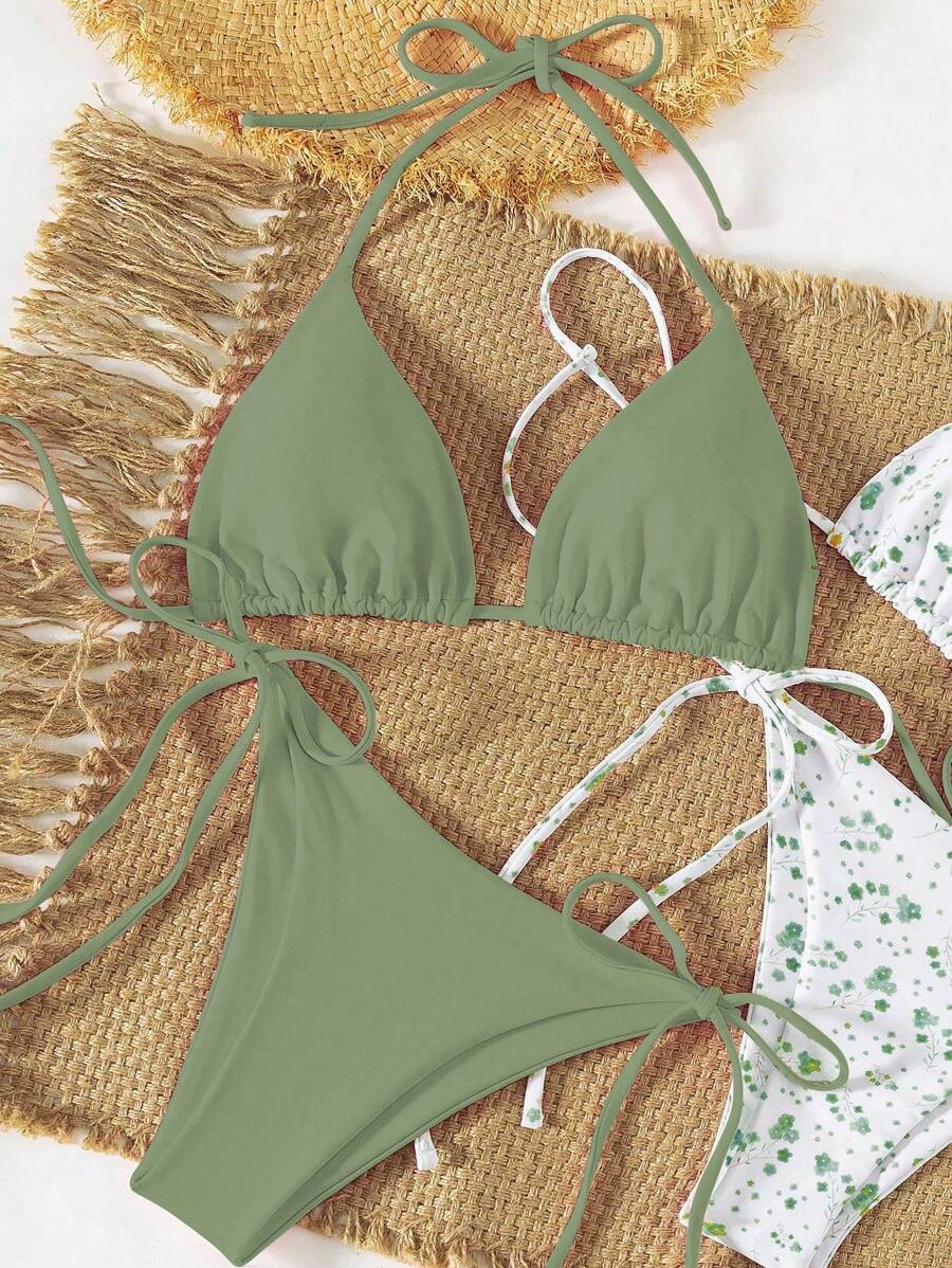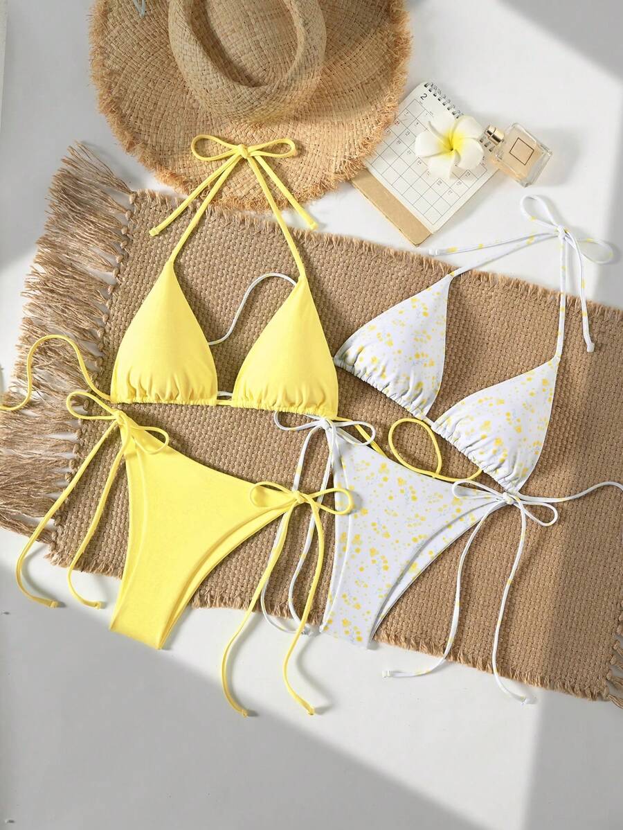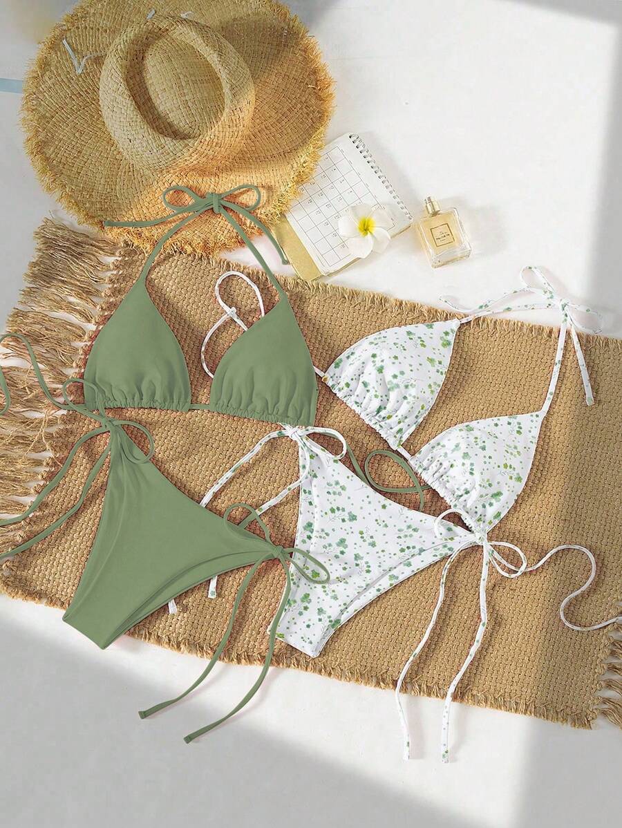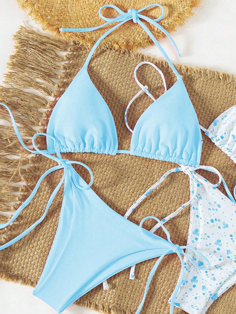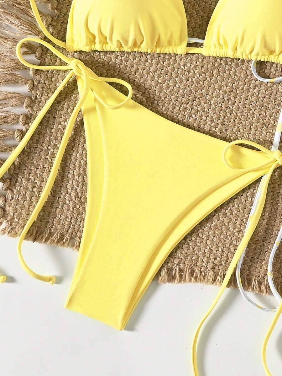 2 piezas/set bikini con tirantes de tirantes para mujer, diseno minimalista para vacaciones en la playa