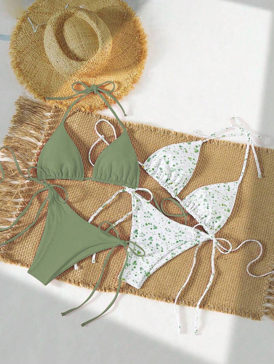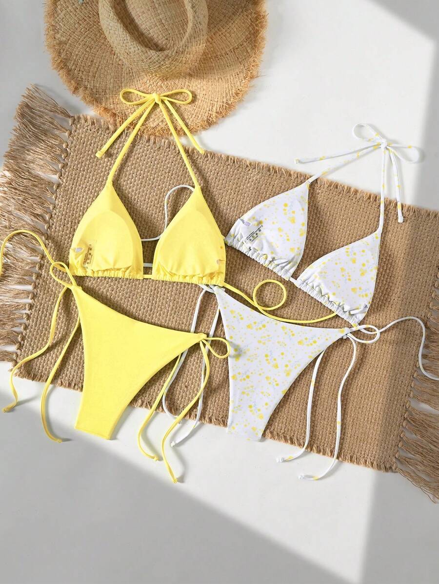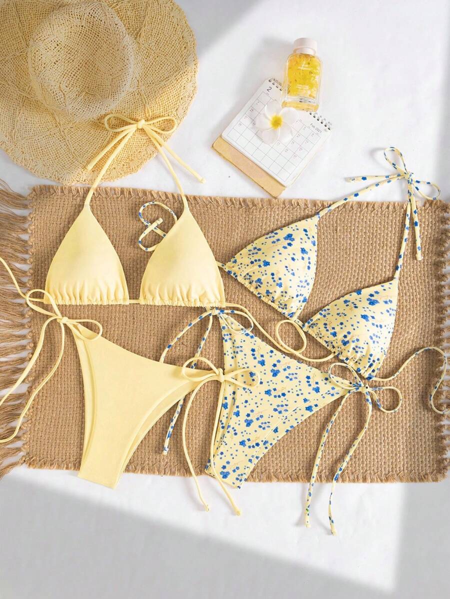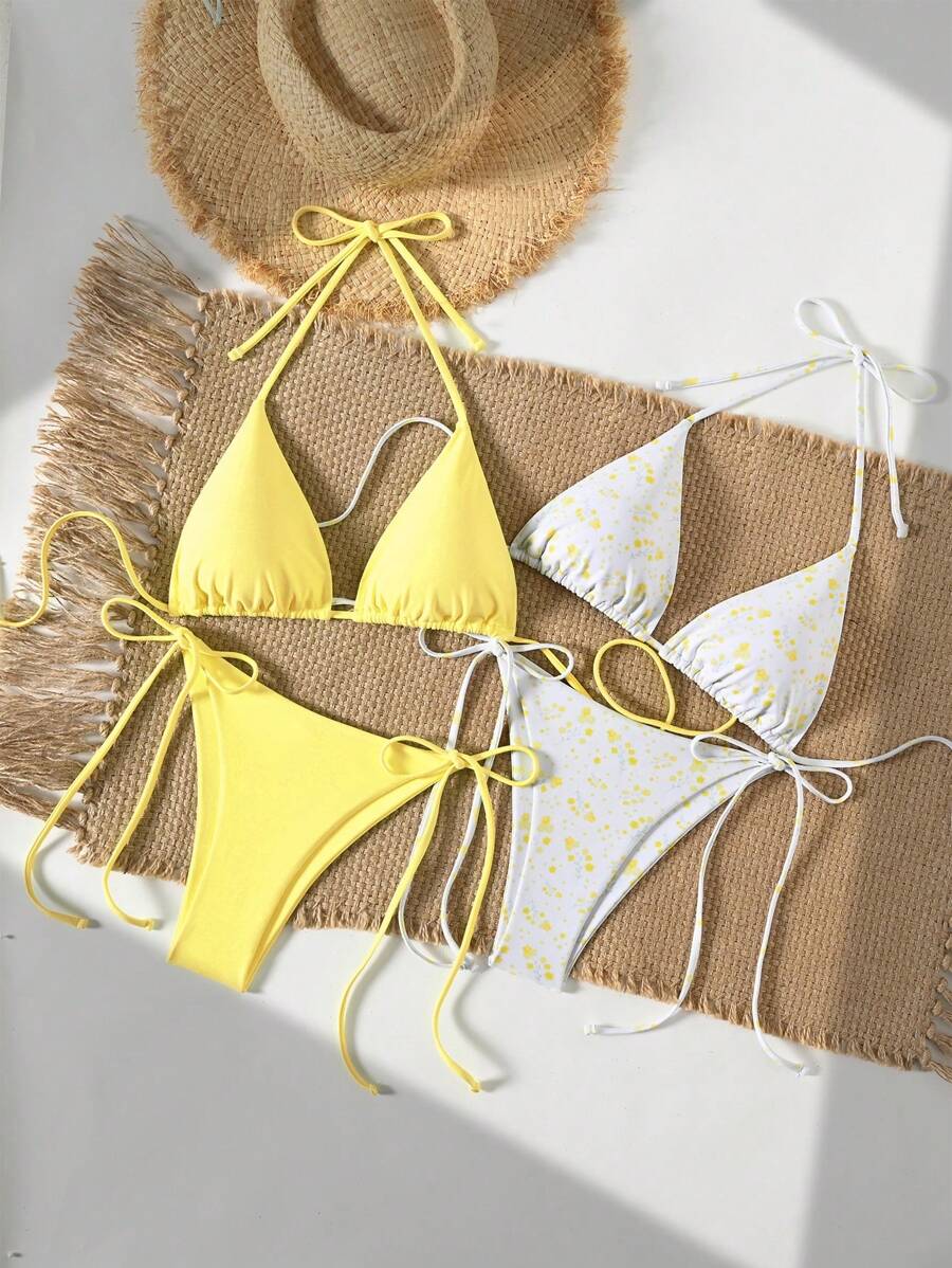 2 piezas/set bikini con tirantes de tirantes para mujer, diseno minimalista para vacaciones en la playa