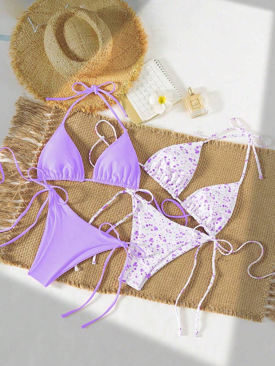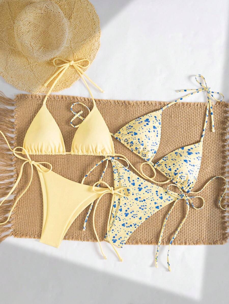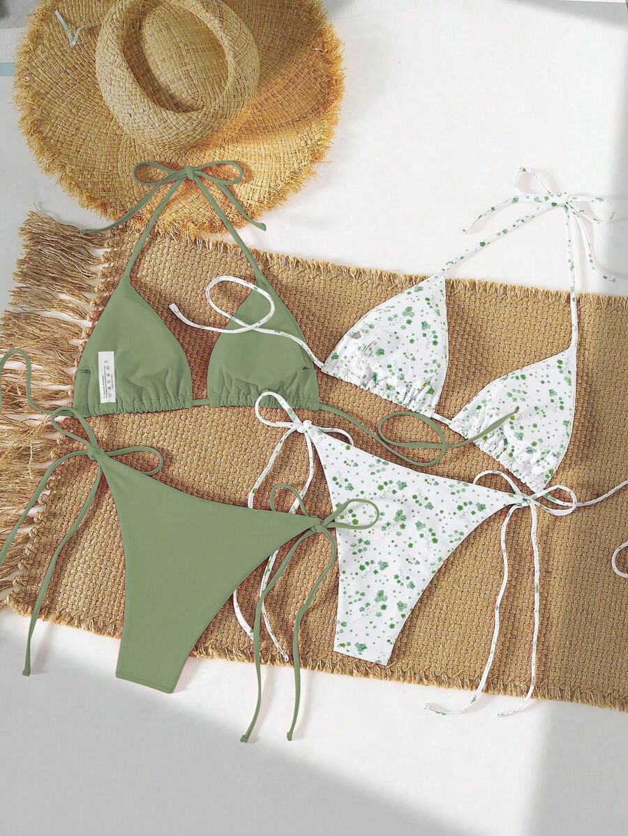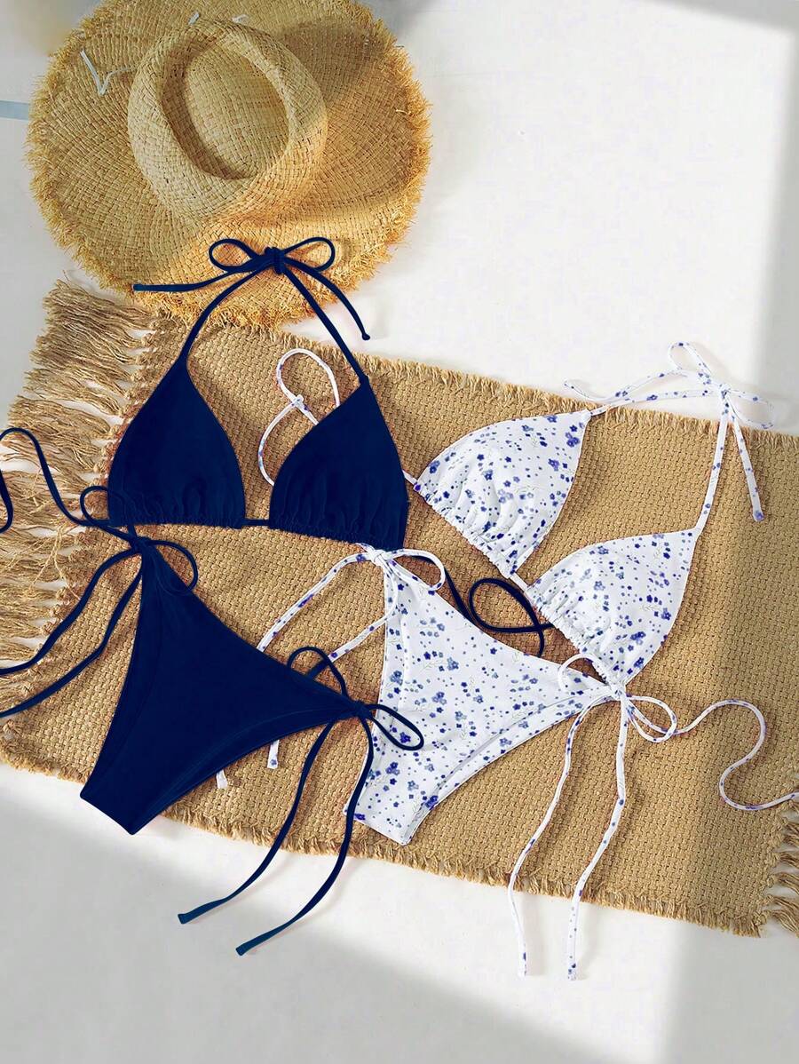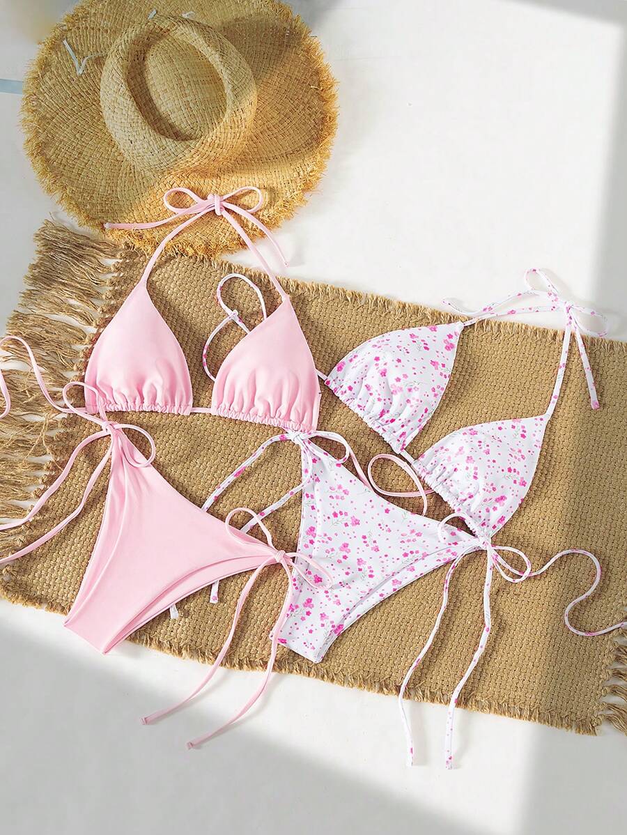 2 piezas/set bikini con tirantes de tirantes para mujer, diseno minimalista para vacaciones en la playa