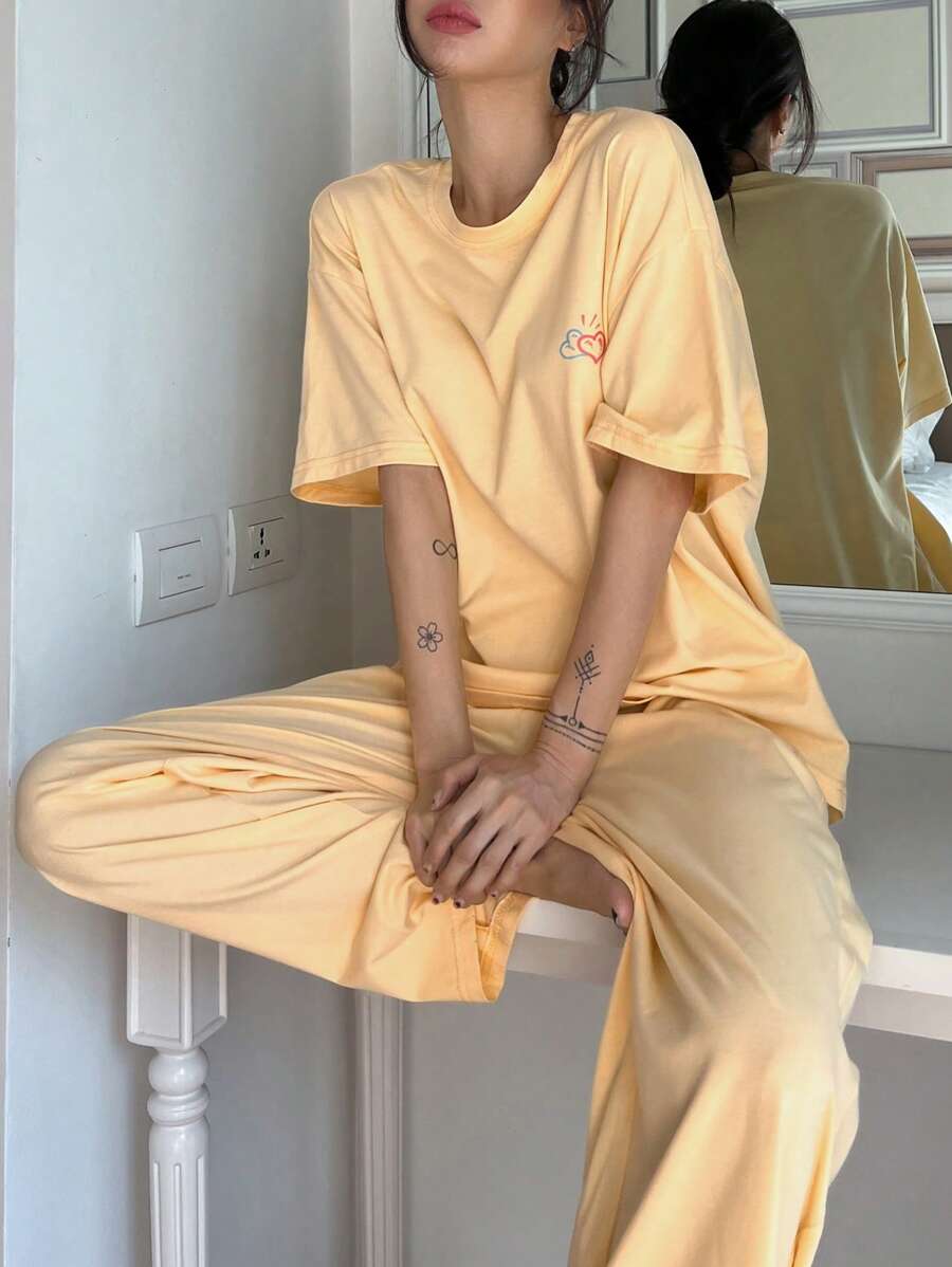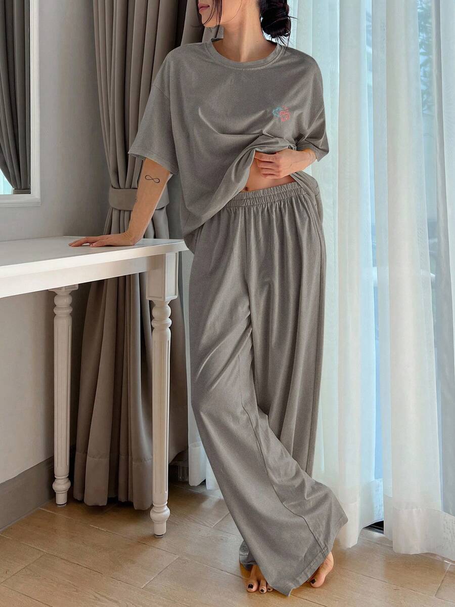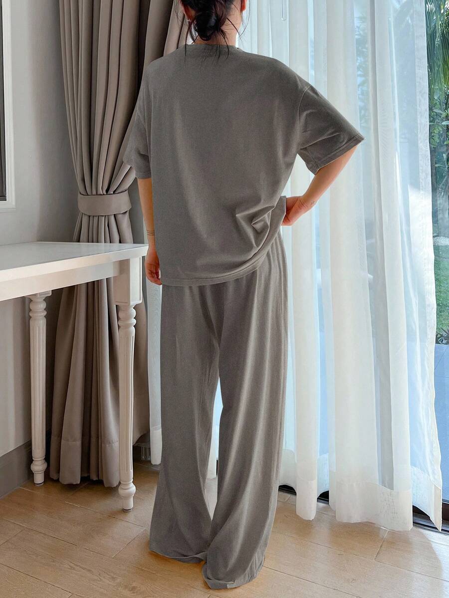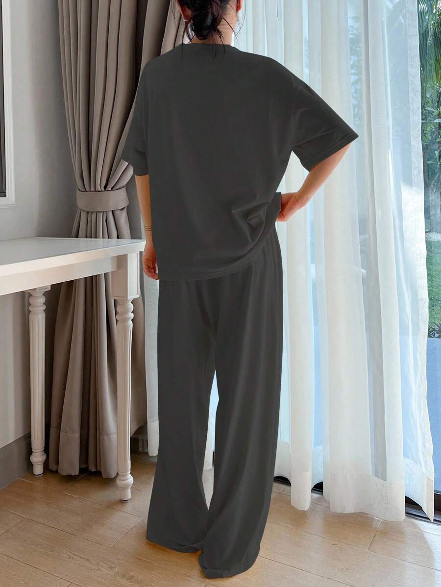 2 piezas conjunto de pijama de manga corta de ajuste holgado para mujer