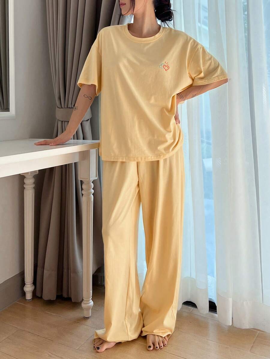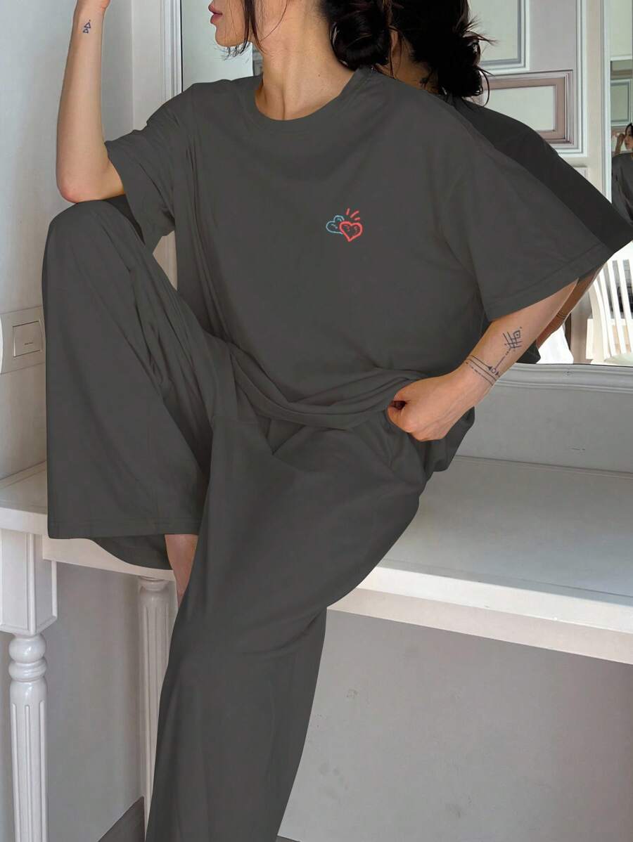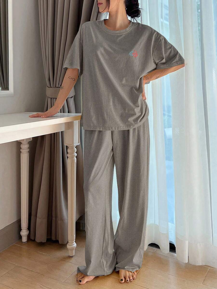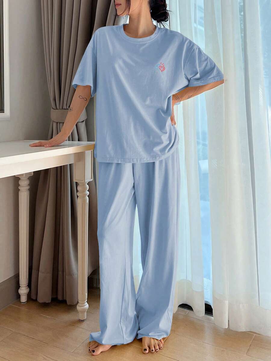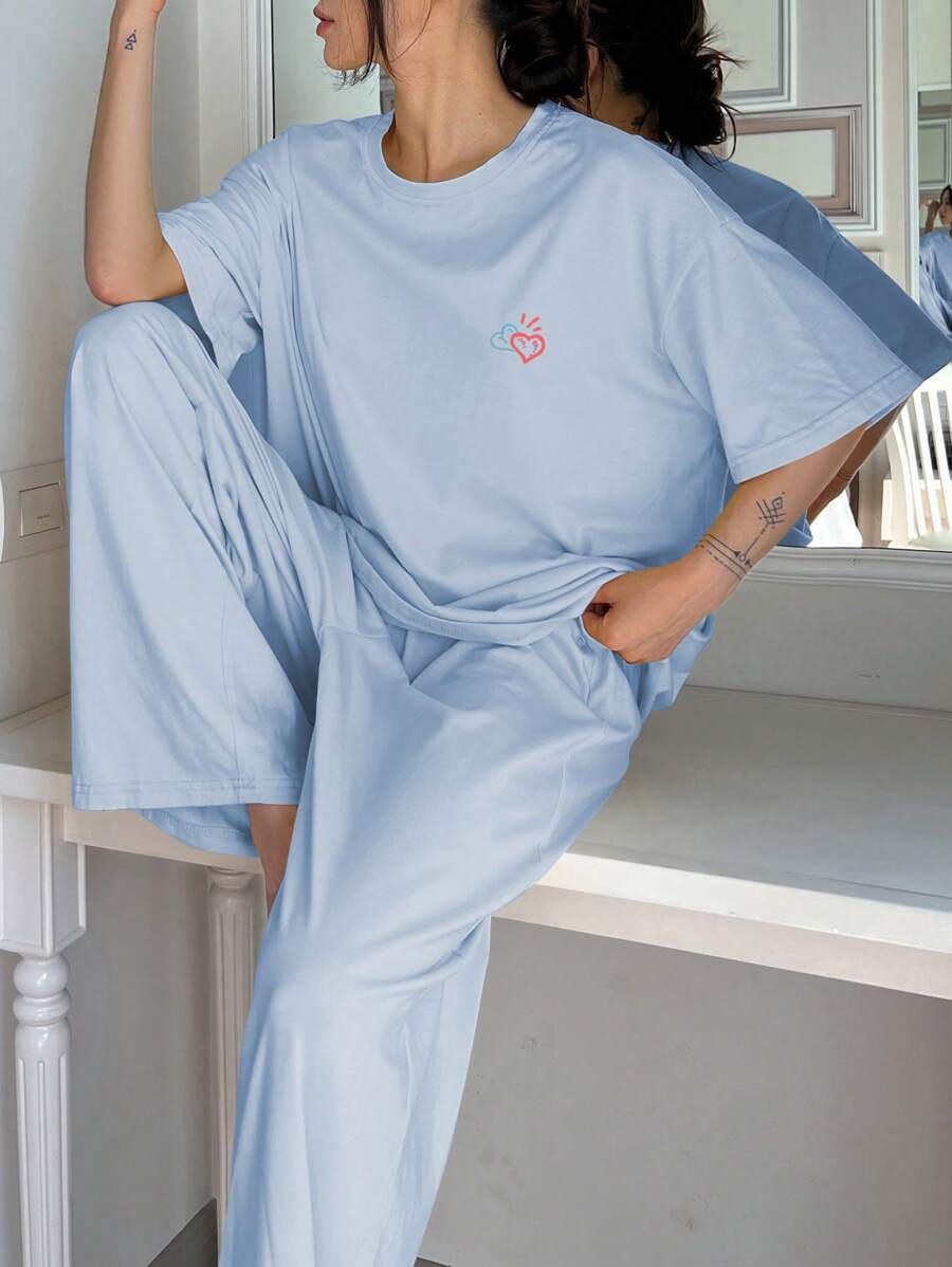 2 piezas conjunto de pijama de manga corta de ajuste holgado para mujer