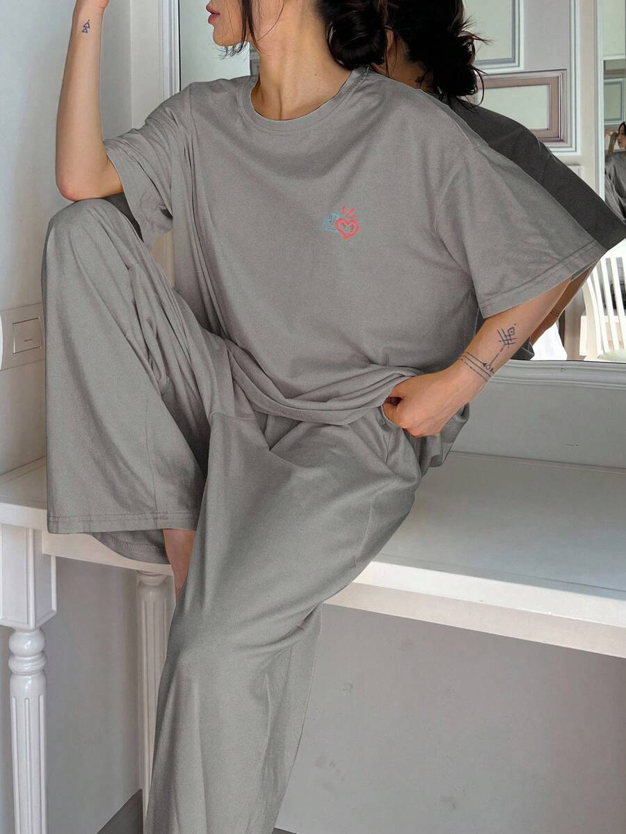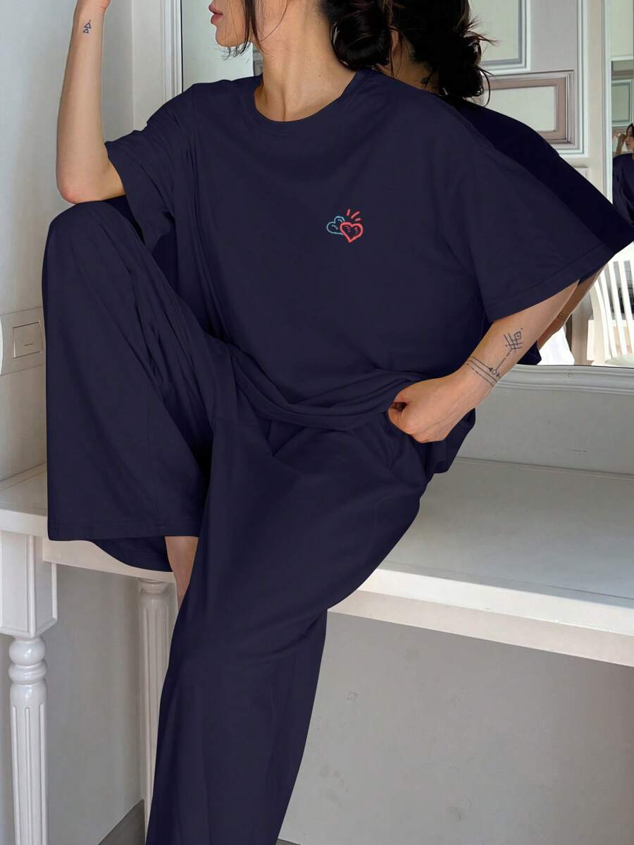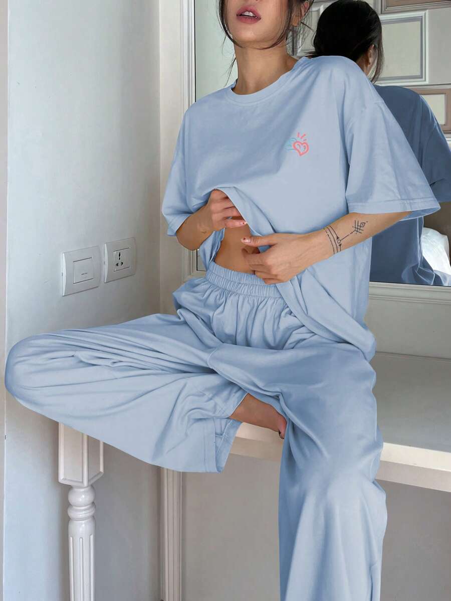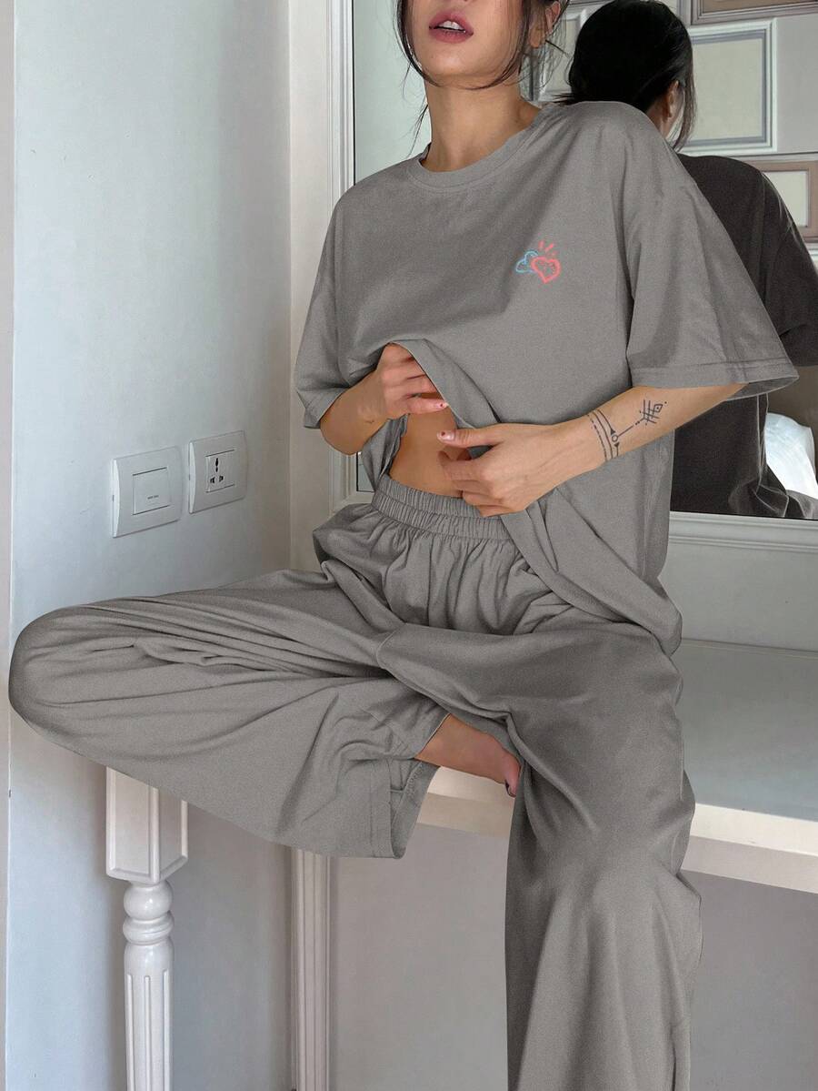 2 piezas conjunto de pijama de manga corta de ajuste holgado para mujer