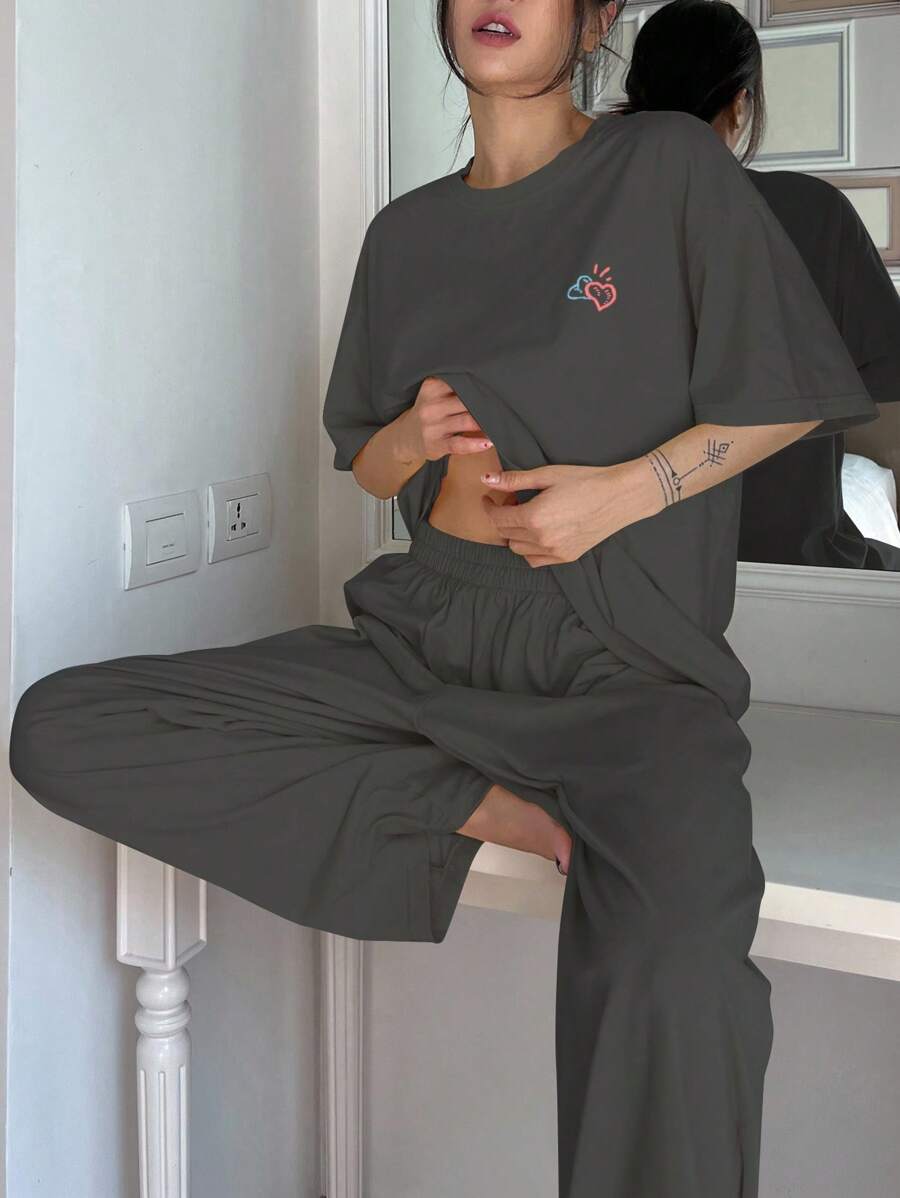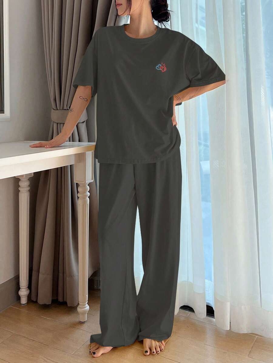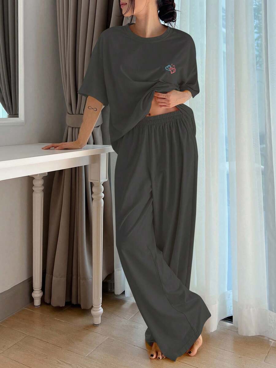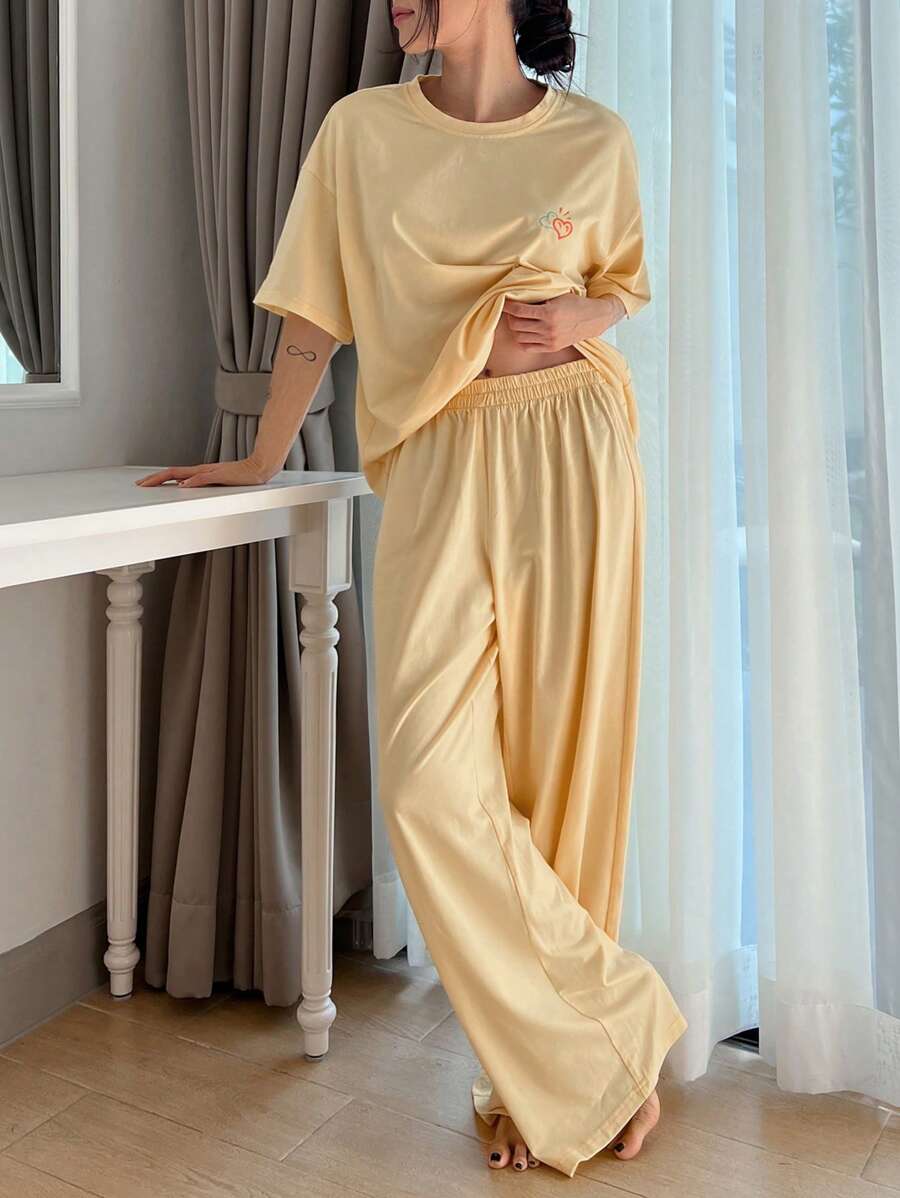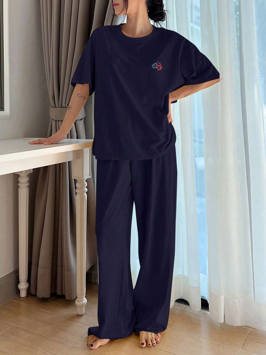2 piezas conjunto de pijama de manga corta de ajuste holgado para mujer