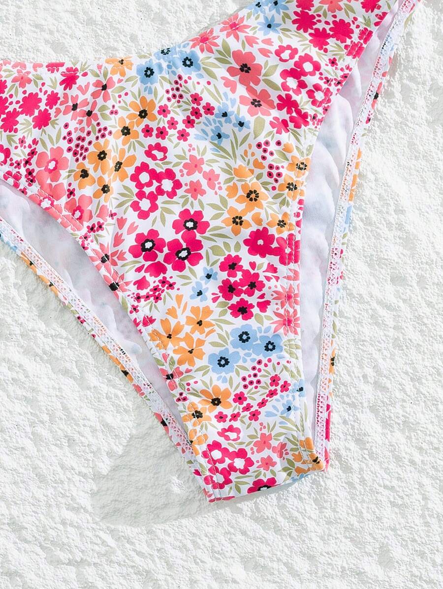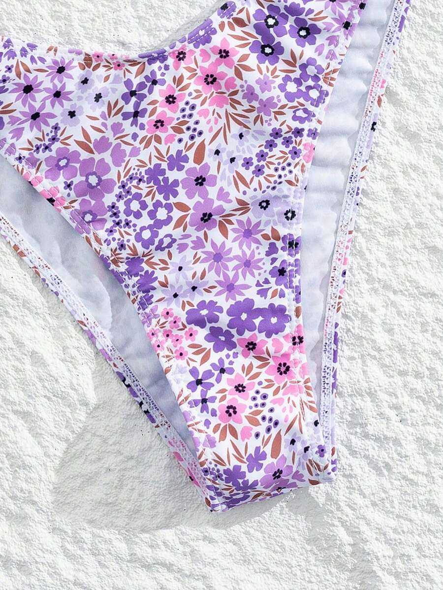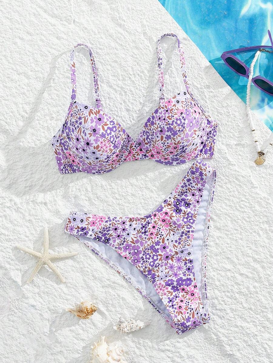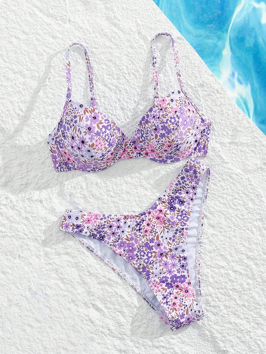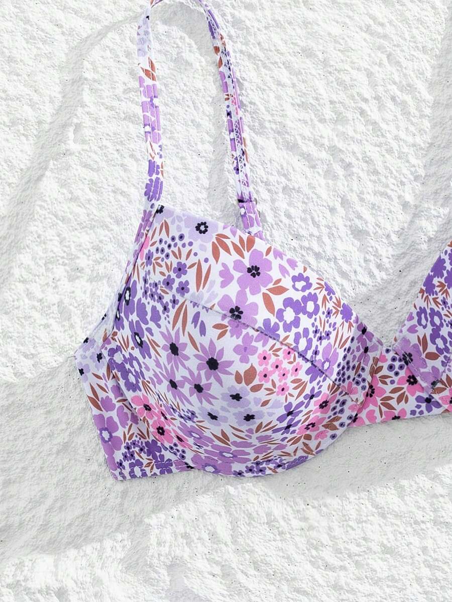 2 piezas/set bikini acolchado con estampado floral ditsy, conjunto de bikini, vacaciones de verano