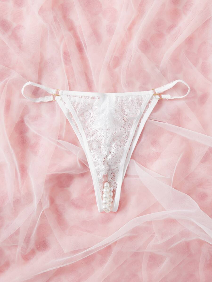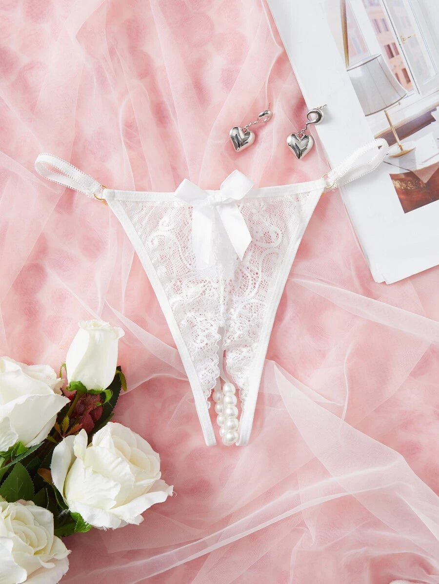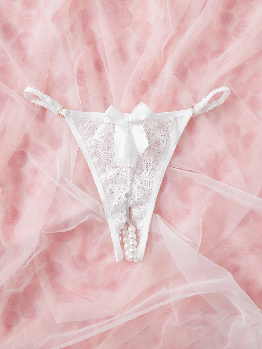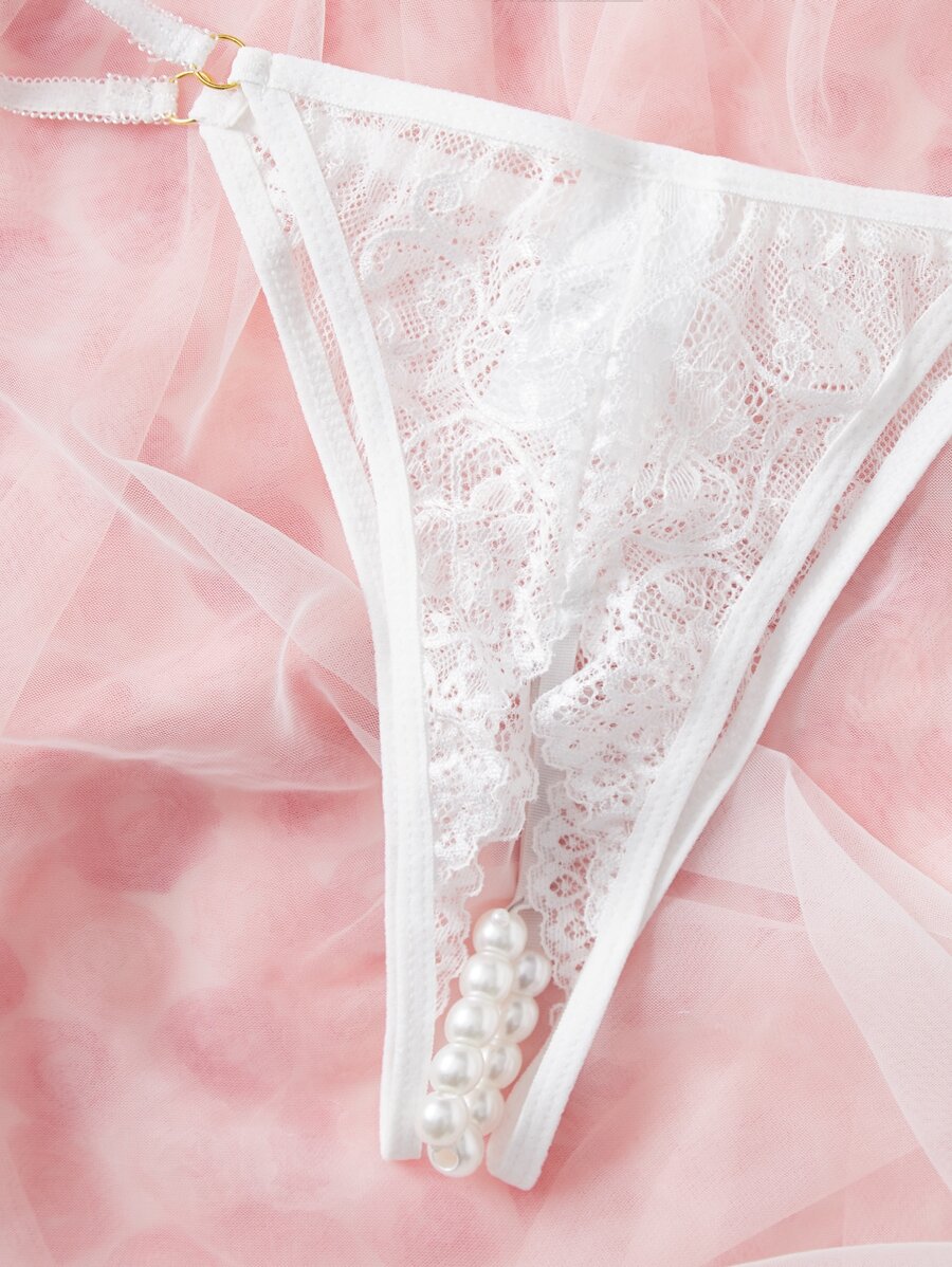Lenceria con detalle de lazo con perlas falsas delantero sin entrepierna