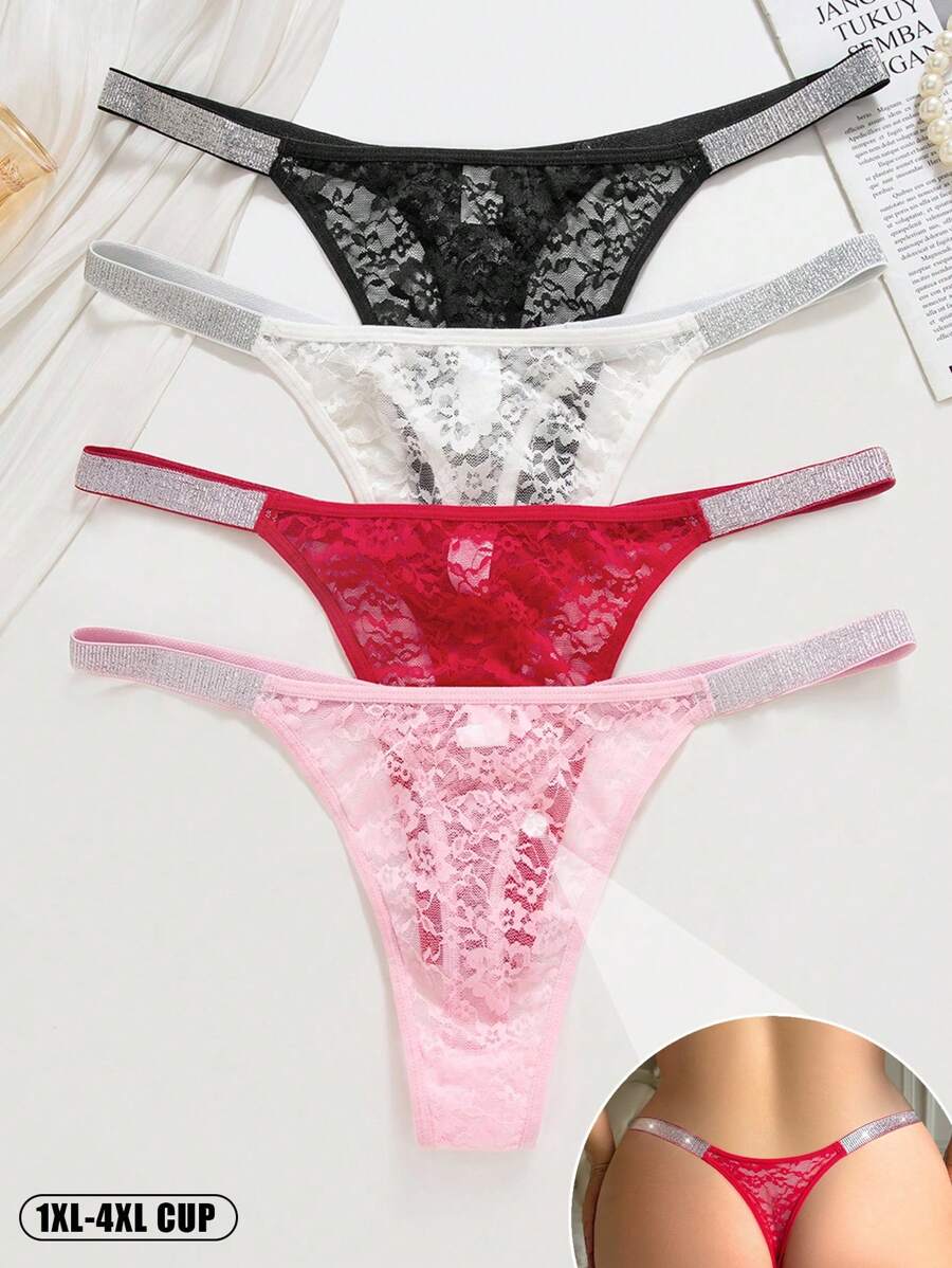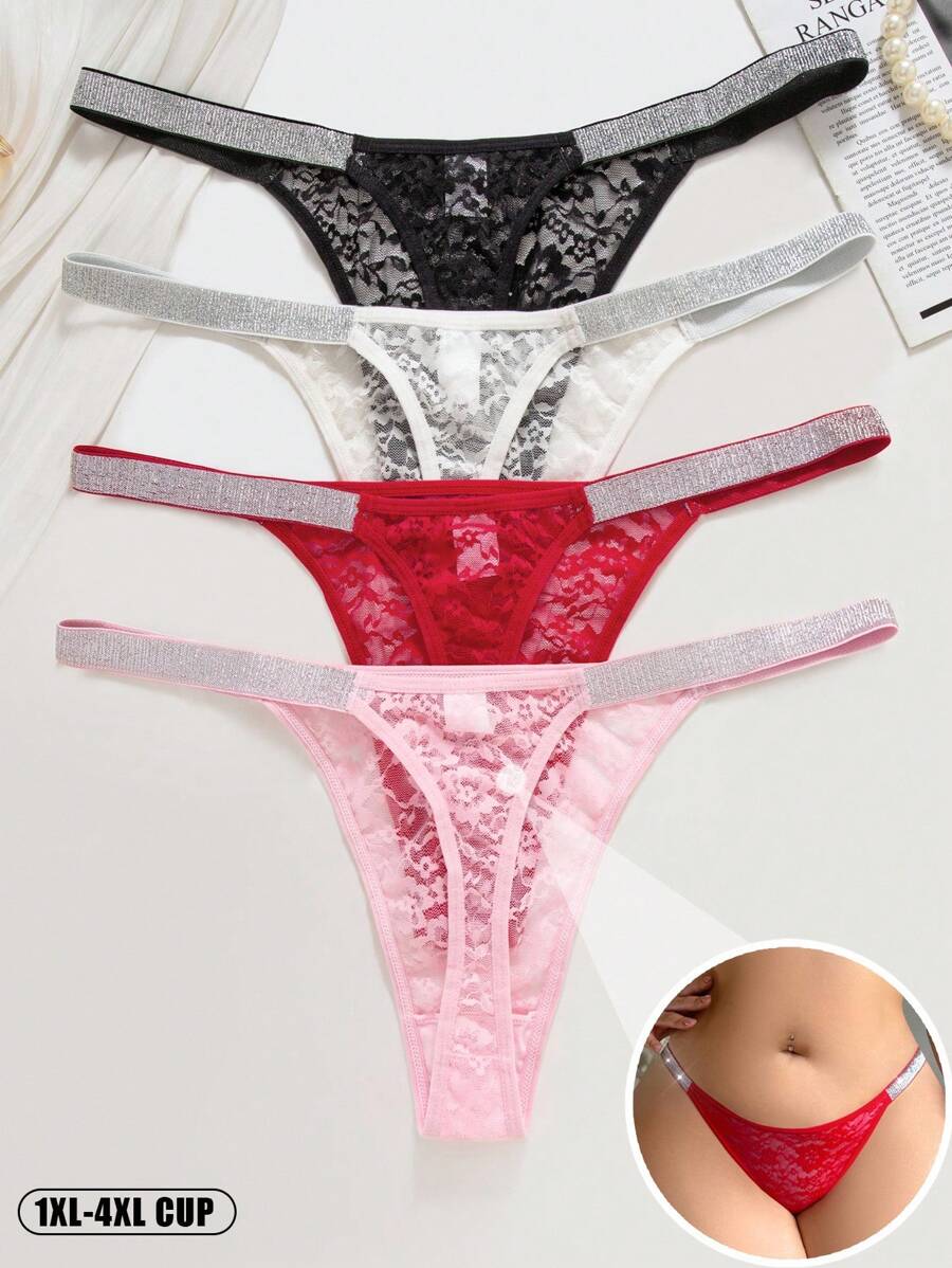 4 piezas/paquete tanga de encaje sexy para mujer de talla grande