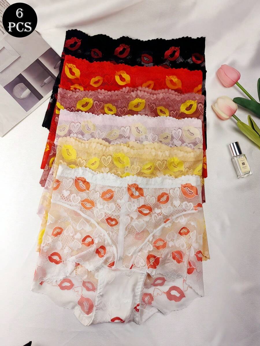 6 piezas de bragas de mujer de algodon con encaje de mariposa, livianas, comodas, de cintura alta, sin costuras, transparentes, caladas, tallas grandes