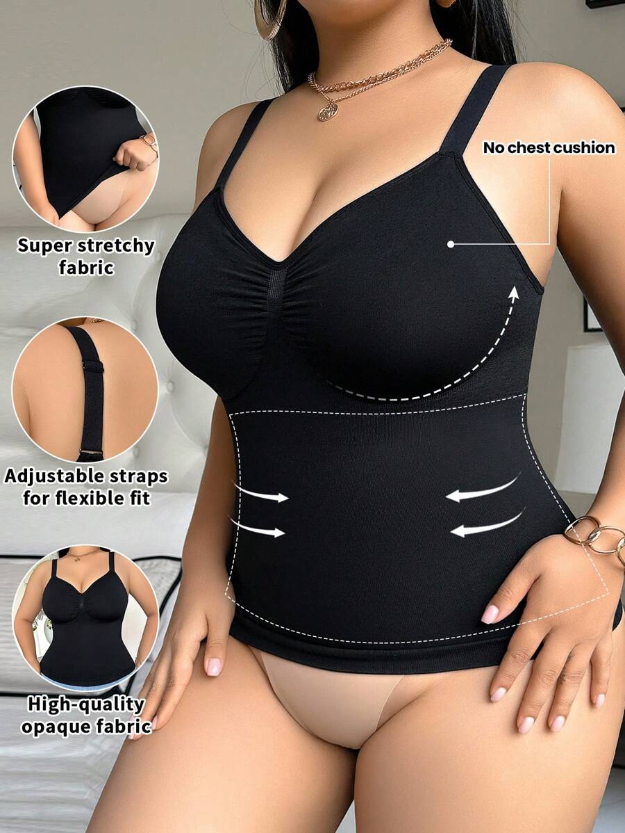 1 pieza camiseta moldeadora sin costuras para mujer, adelgazante de cintura y abdomen, simple y comoda, color negro