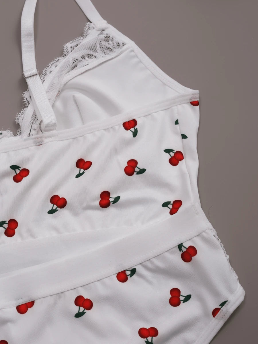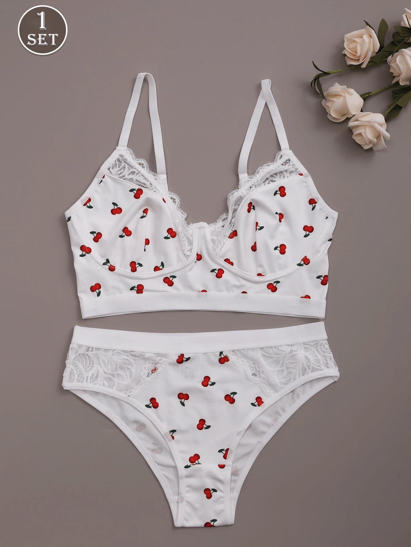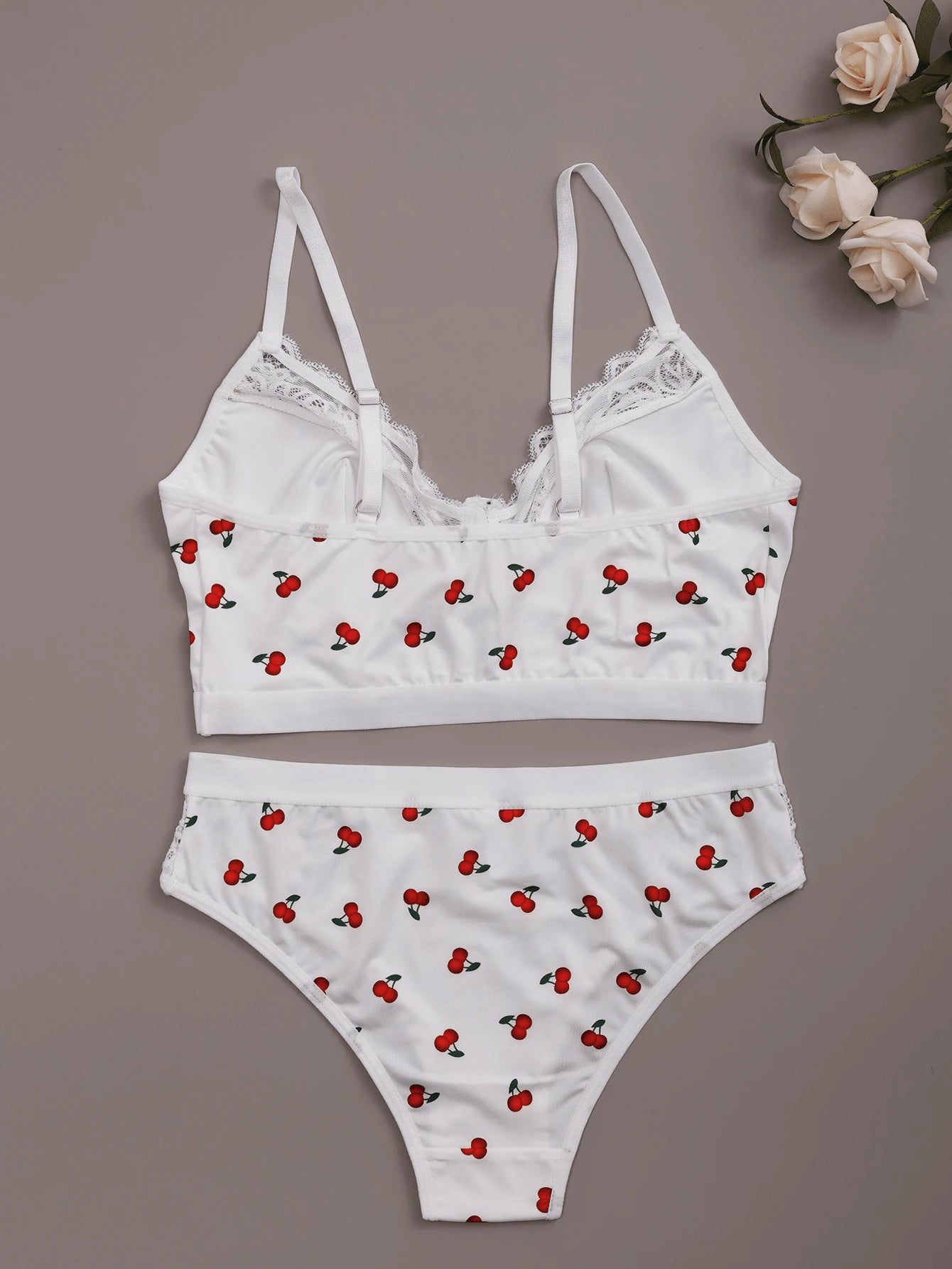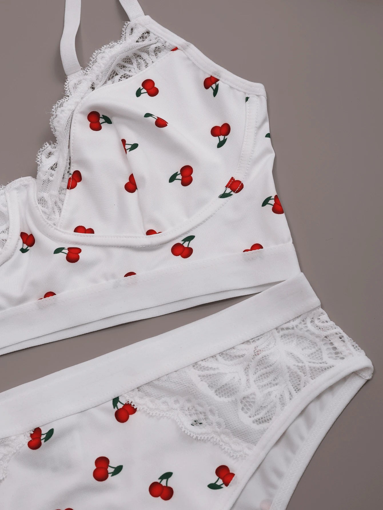 Conjunto de brasier y pantie de encaje de cereza comodo para mujer