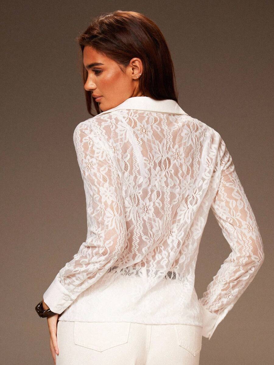 Athiral camisa de moda de manga larga con un solo botonadura y encaje floral para mujer
